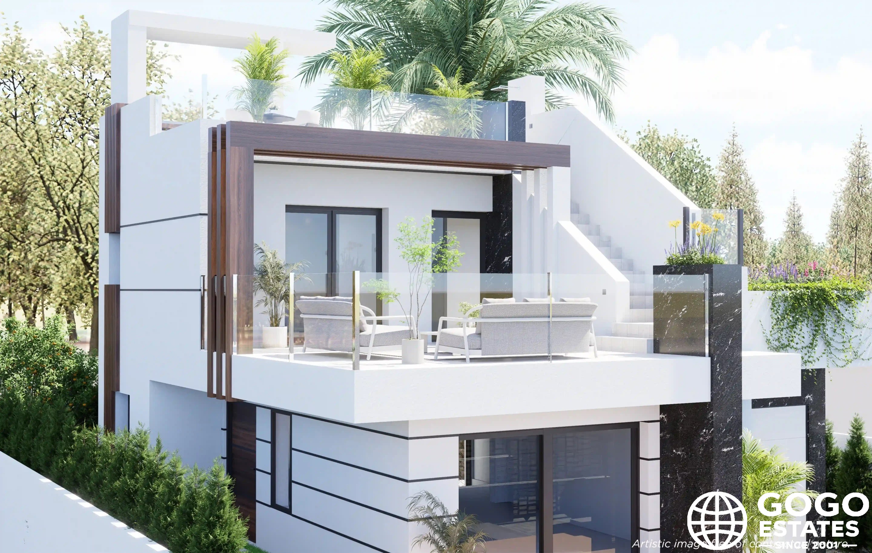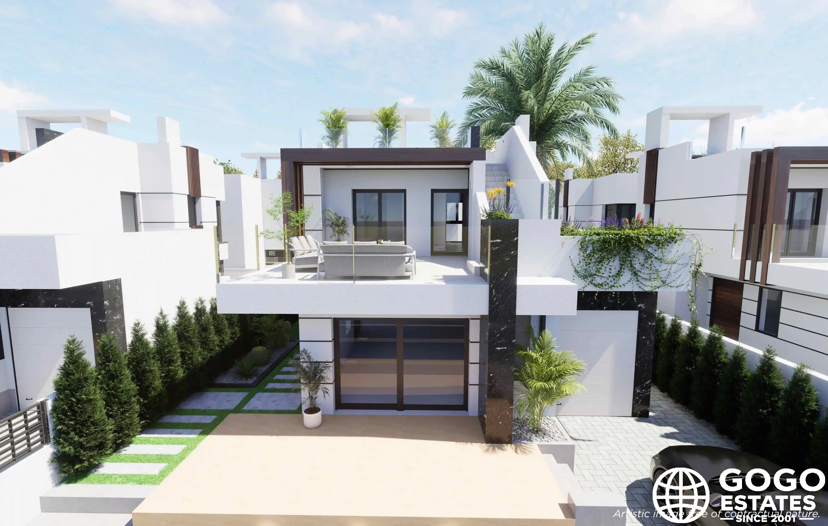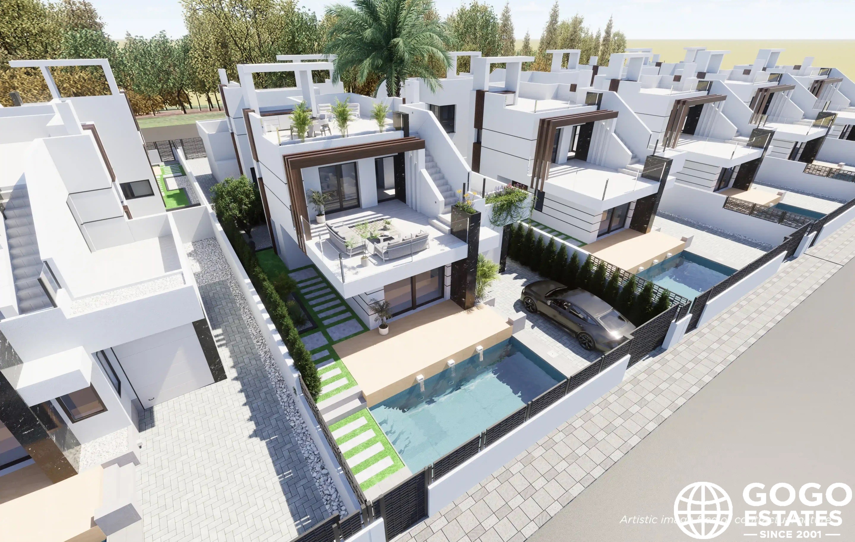 Los exteriores de estas casas unifamiliares están diseñados para maximizar el disfrute del clima mediterráneo. Cada propiedad cuenta con una piscina privada, ideal para refrescarse durante los cálidos días de verano. Además, el solárium ofrece un espacio perfecto para tomar el sol o disfrutar de vistas panorámicas. La presencia de un jacuzzi añade un toque de lujo, permitiendo momentos de relajación al aire libre. Las amplias terrazas son ideales para cenas al aire libre o simplemente para disfrutar de la tranquilidad del entorno.