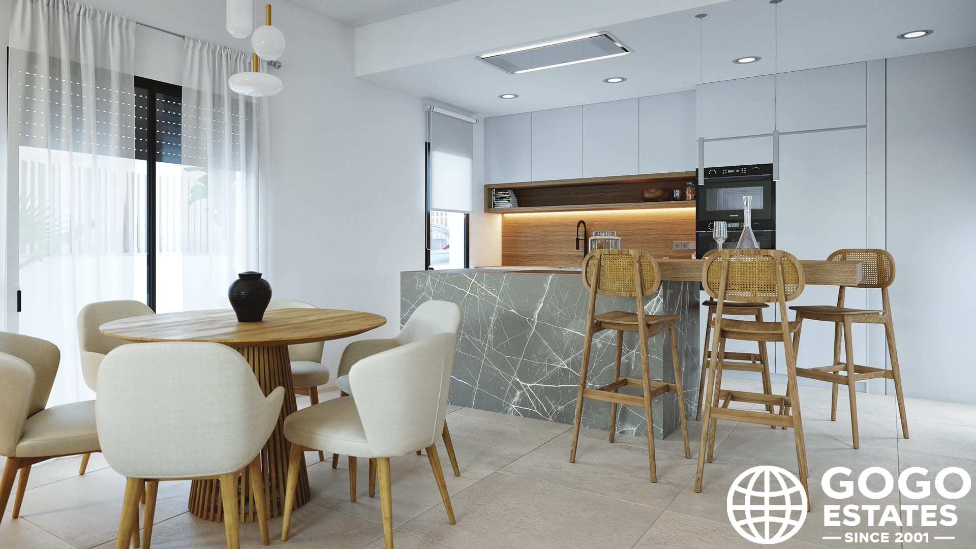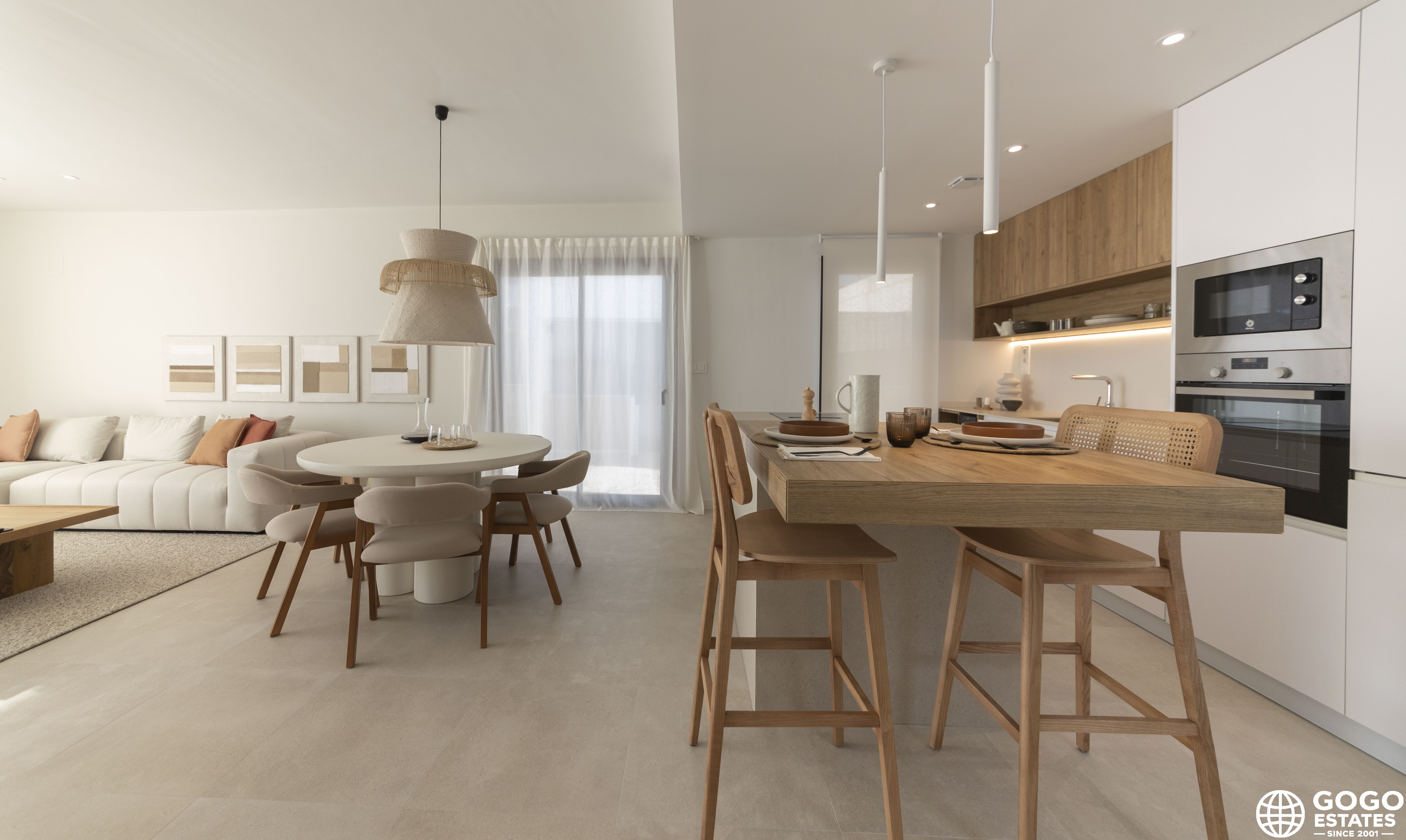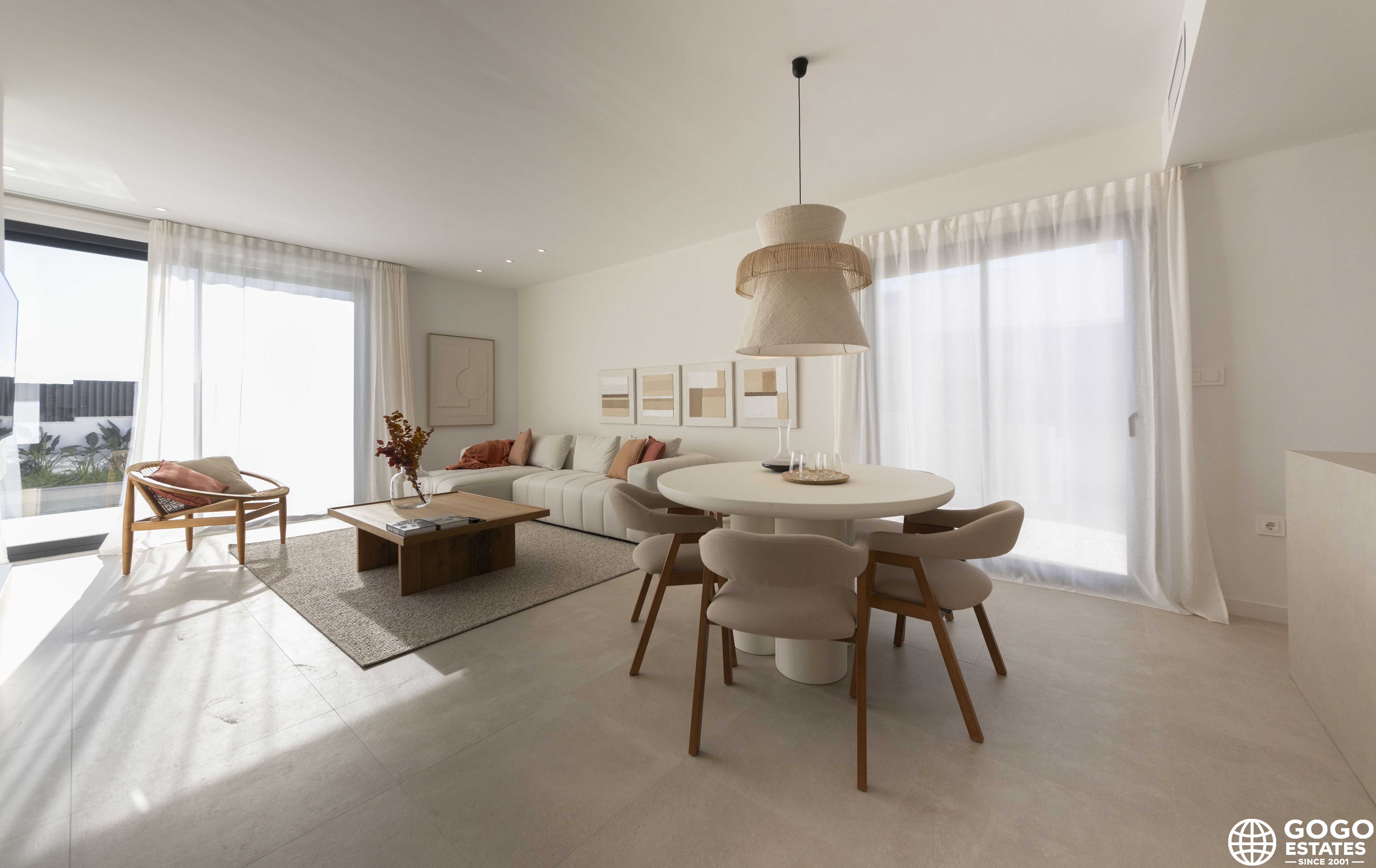 El interior está cuidadosamente diseñado para ofrecer comodidad y estilo. Los suelos de cerámica proporcionan un toque moderno y son fáciles de mantener. Las casas están equipadas con electrodomésticos, facilitando la vida diaria desde el primer día. Los armarios empotrados ofrecen amplio espacio de almacenamiento, manteniendo el orden y la organización.