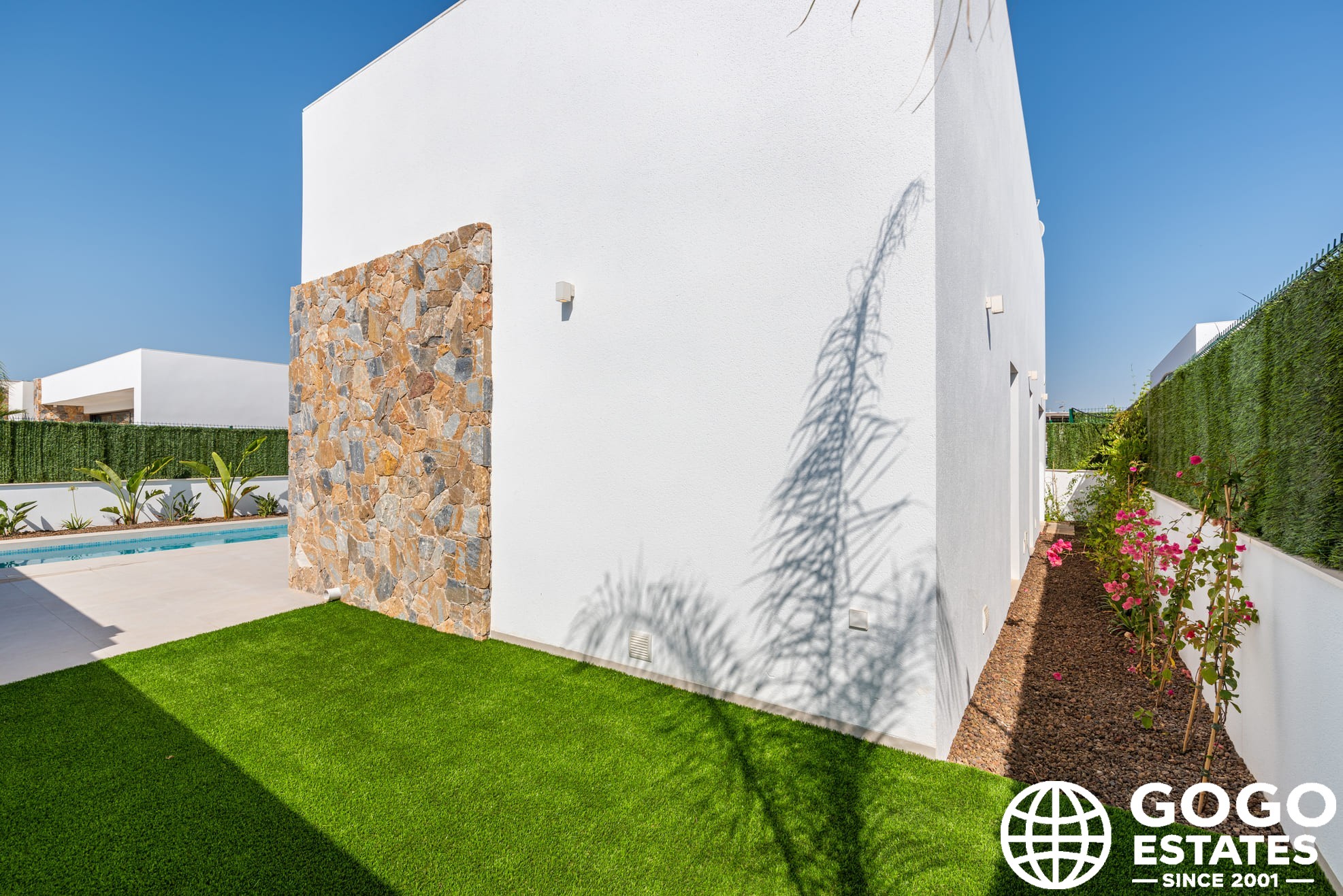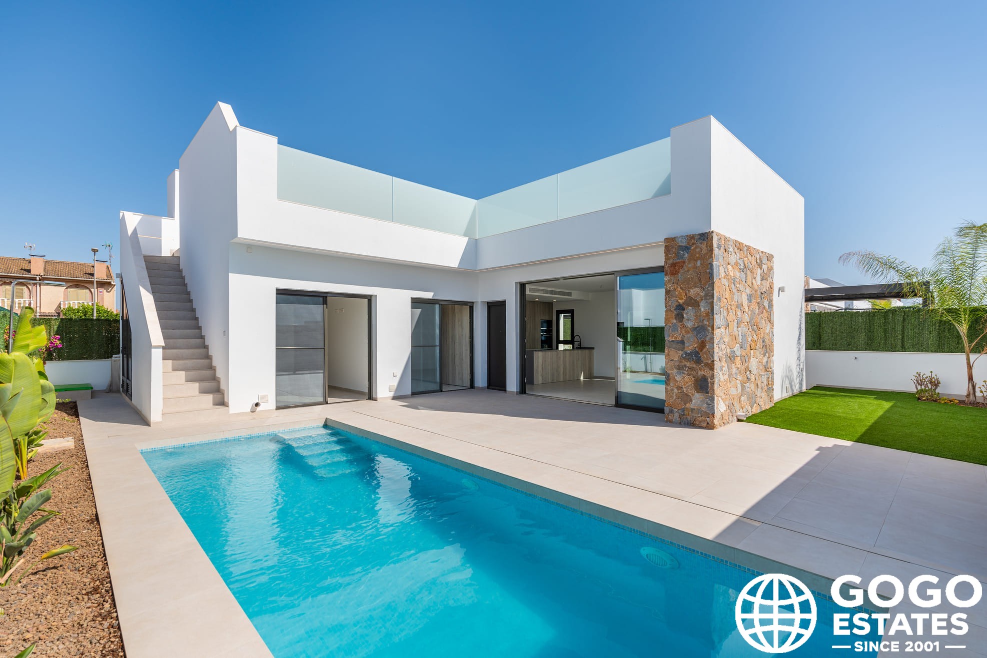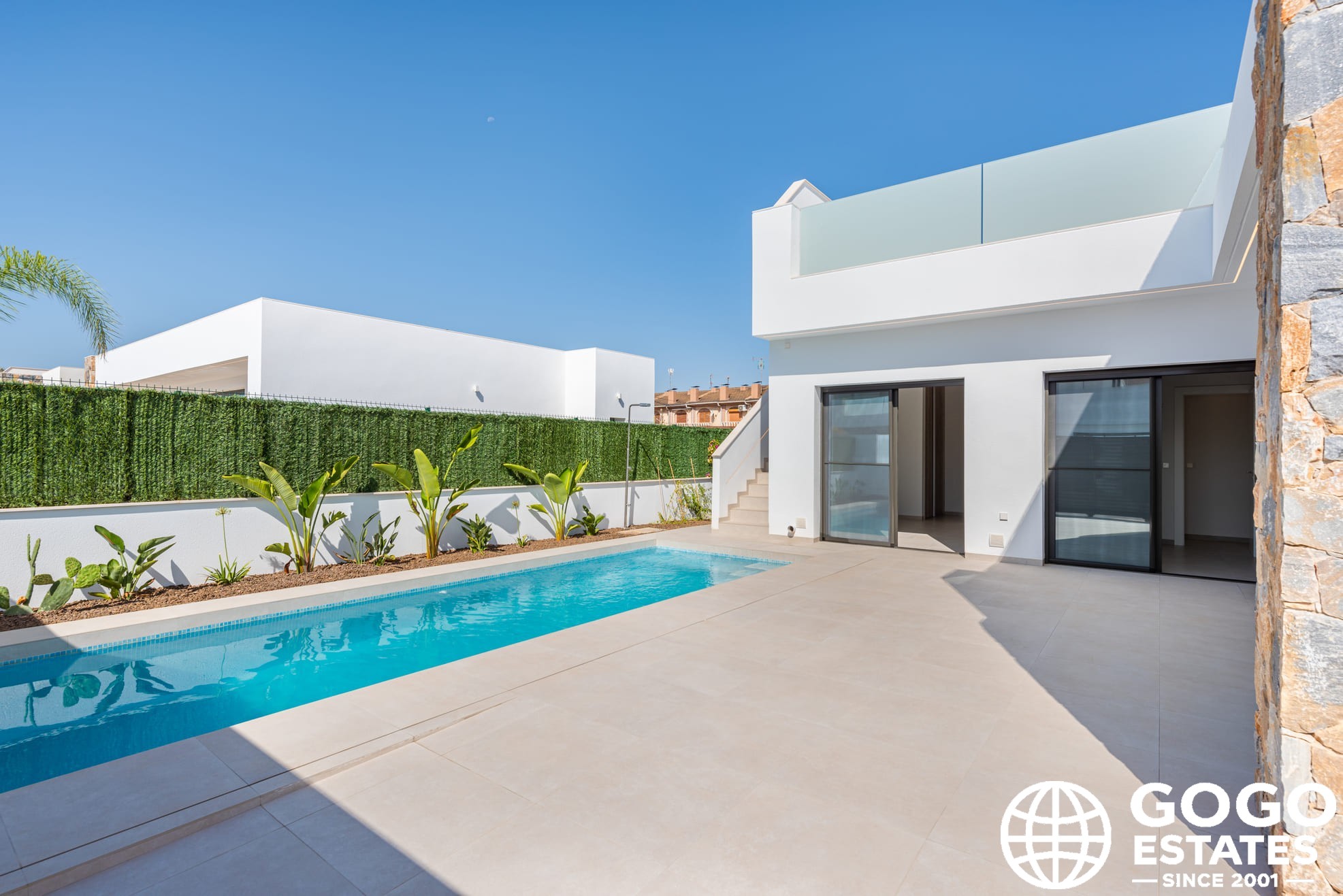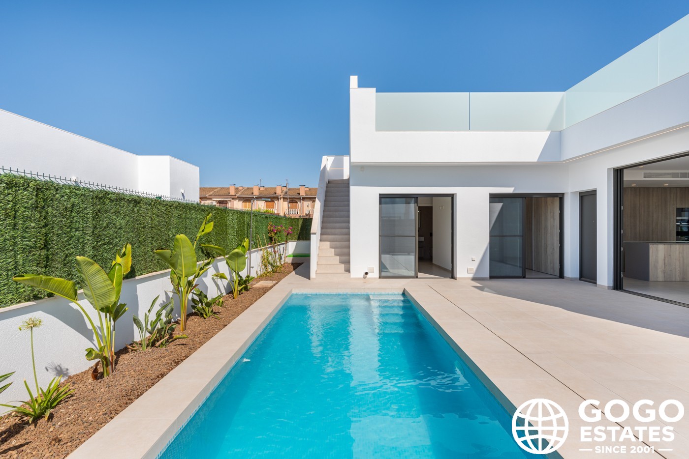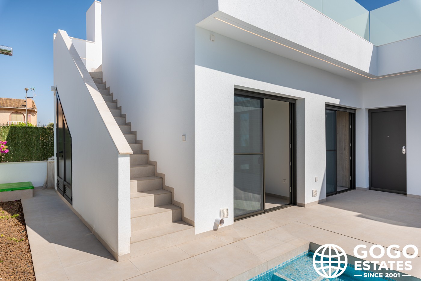 Los espacios exteriores incluyen un jardín privado, piscina y terraza, perfectos para disfrutar del clima mediterráneo. Un solárium ofrece un lugar privado para tomar el sol. En el interior, las viviendas están completamente amuebladas con suelos de porcelanato y armarios empotrados. El aire acondicionado garantiza comodidad durante todo el año.