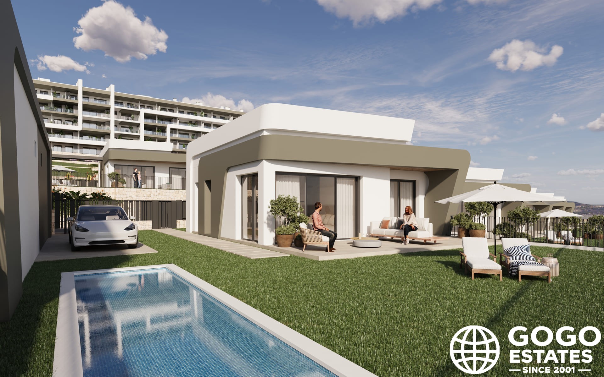 El diseño exterior destaca por su elegancia y funcionalidad. Cada casa incluye un jardín privado, terraza y piscina, perfectos para disfrutar del clima mediterráneo. La seguridad y la comodidad se mejoran con persianas eléctricas y un sistema de videoportero.