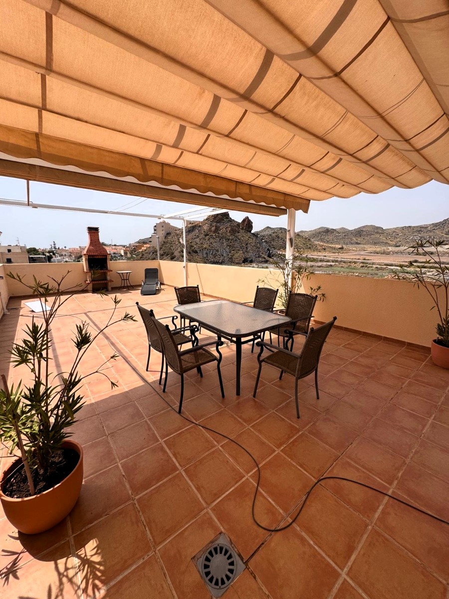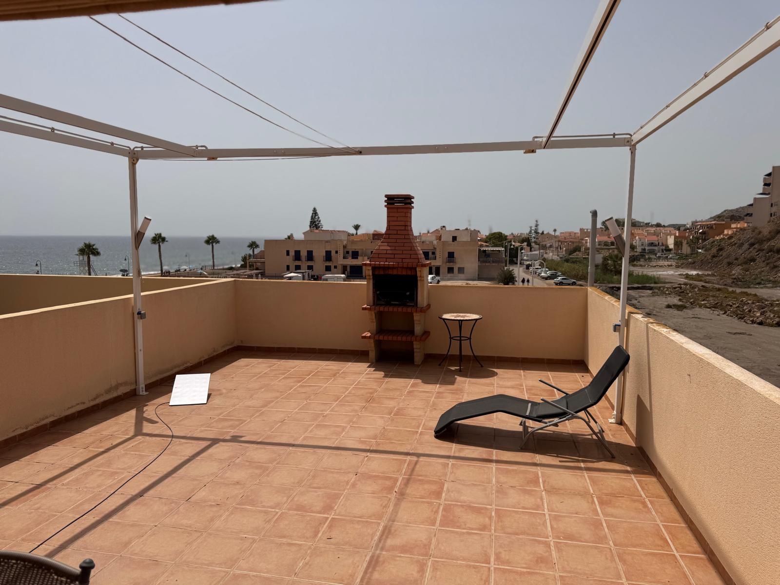Explora un impresionante ático en venta en Pozo del Esparto, ubicado a solo 200 metros de la playa y con vistas al mar impresionantes. Este espacioso apartamento cuenta con tres dormitorios y dos baños, incluyendo un conveniente baño en suite. La amplia terraza en la azotea es ideal para disfrutar de vistas panorámicas del mar y las montañas, mientras que la gran terraza delantera ofrece un lugar perfecto para relajarse o cenar al aire libre. Hay espacio de almacenamiento adicional disponible en la planta superior, y los dormitorios vienen equipados con armarios empotrados para mayor comodidad. Otras comodidades incluyen un lavadero y aire acondicionado. Situado a pocos pasos del Paseo Marítimo y de la hermosa playa de Pozo del Esparto en Cuevas del Almanzora, esta ubicación es perfecta para paseos tranquilos y disfrutar de la brisa marina. Experimenta la tranquilidad y el sol de esta joya mediterránea, convirtiéndola en una excelente opción para una segunda residencia, una vivienda permanente o una oportunidad de inversión con potencial de alquiler. Cerca de San Juan de los Terreros y de todas las comodidades que este encantador pueblo costero tiene para ofrecer. Programa tu visita hoy con GogoEstates, tu agente inmobiliario de confianza en Costa Cálida y Almería desde 2001.