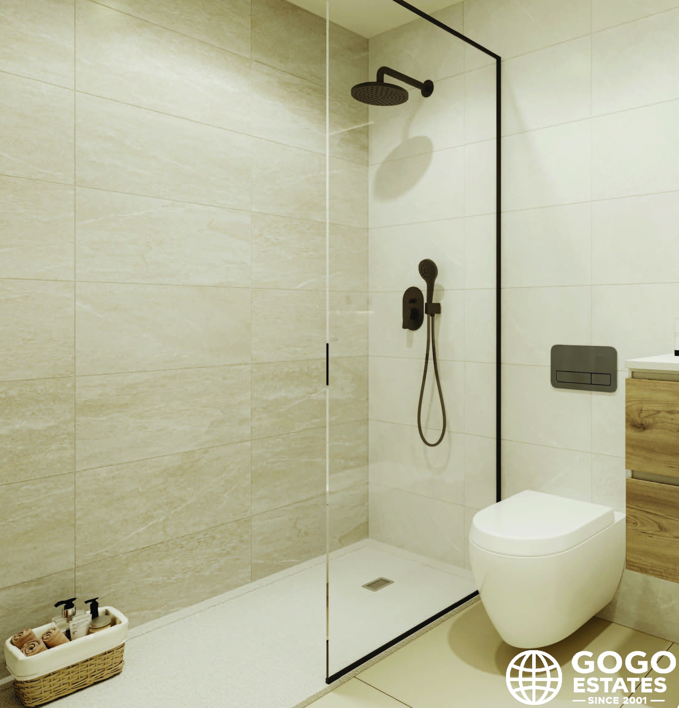 Las comodidades al aire libre incluyen un solárium y proximidad al mar, asegurando un estilo de vida enriquecido por actividades al aire libre. El complejo también cuenta con áreas ajardinadas, una piscina comunitaria y un gimnasio.