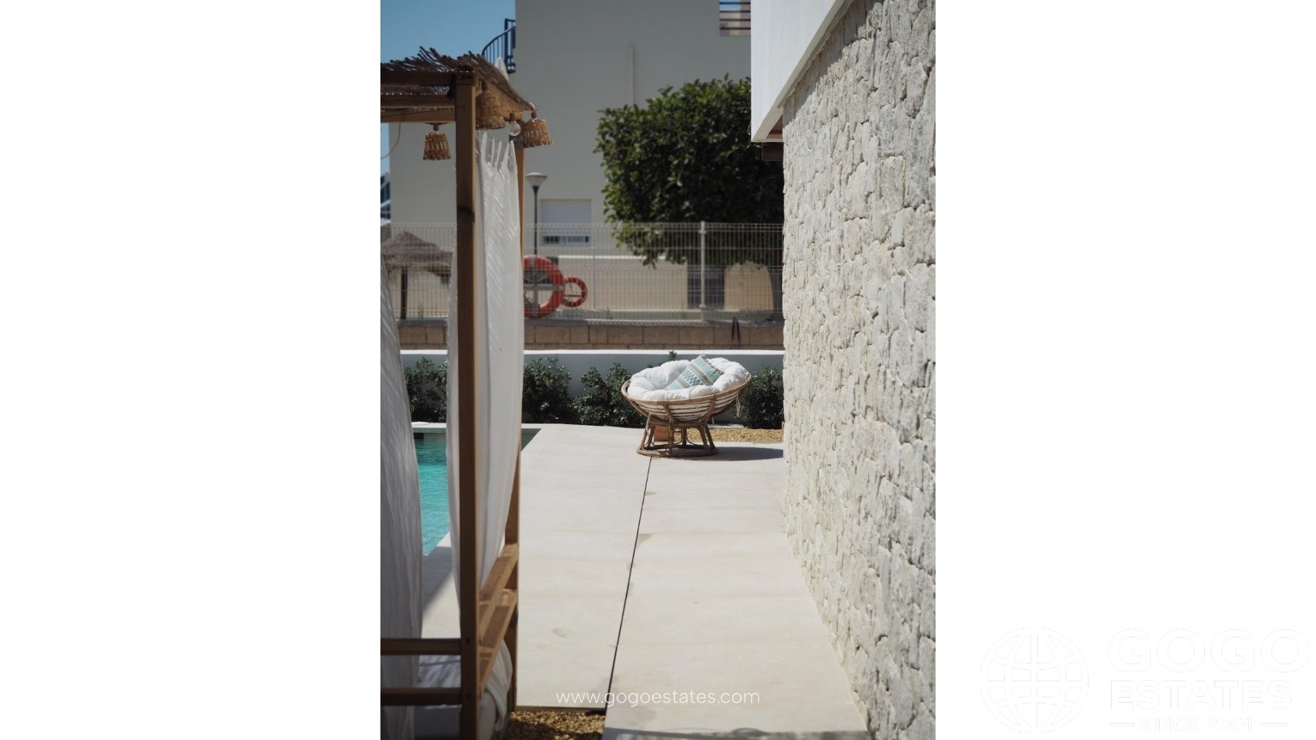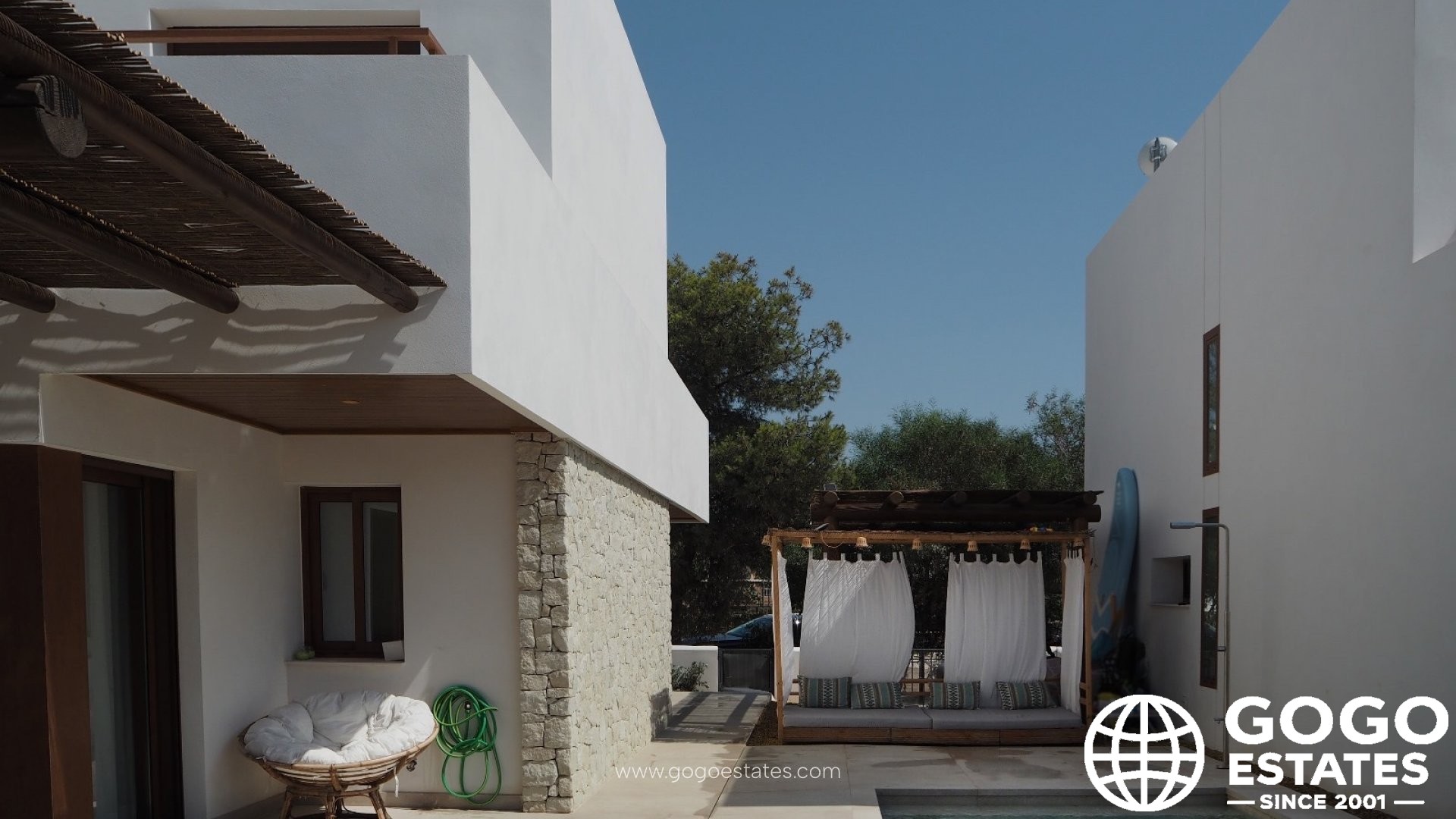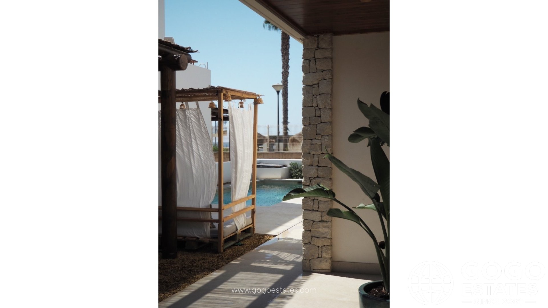 Explora esta exclusiva villa de estilo Ibiza ubicada en la segunda línea del mar en Pozo del Esparto. Esta moderna villa ofrece tres dormitorios y dos baños, proporcionando un amplio espacio para la comodidad.