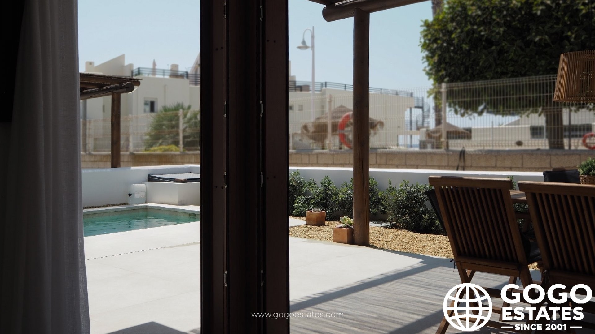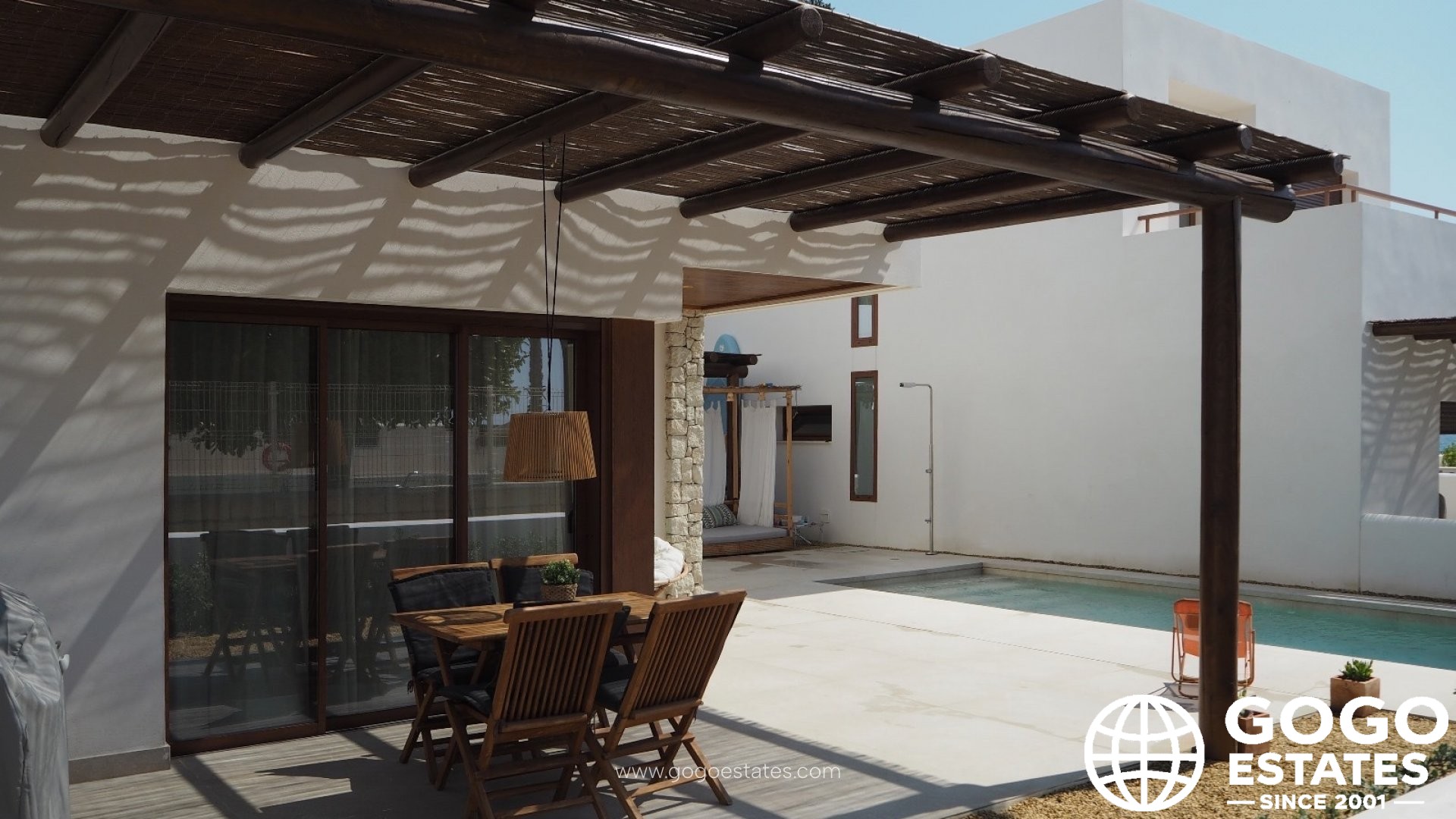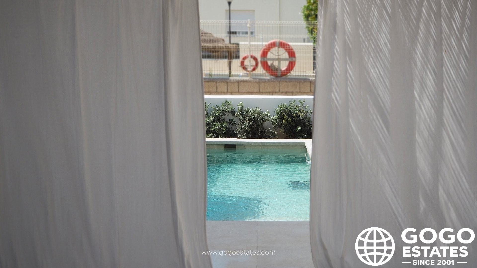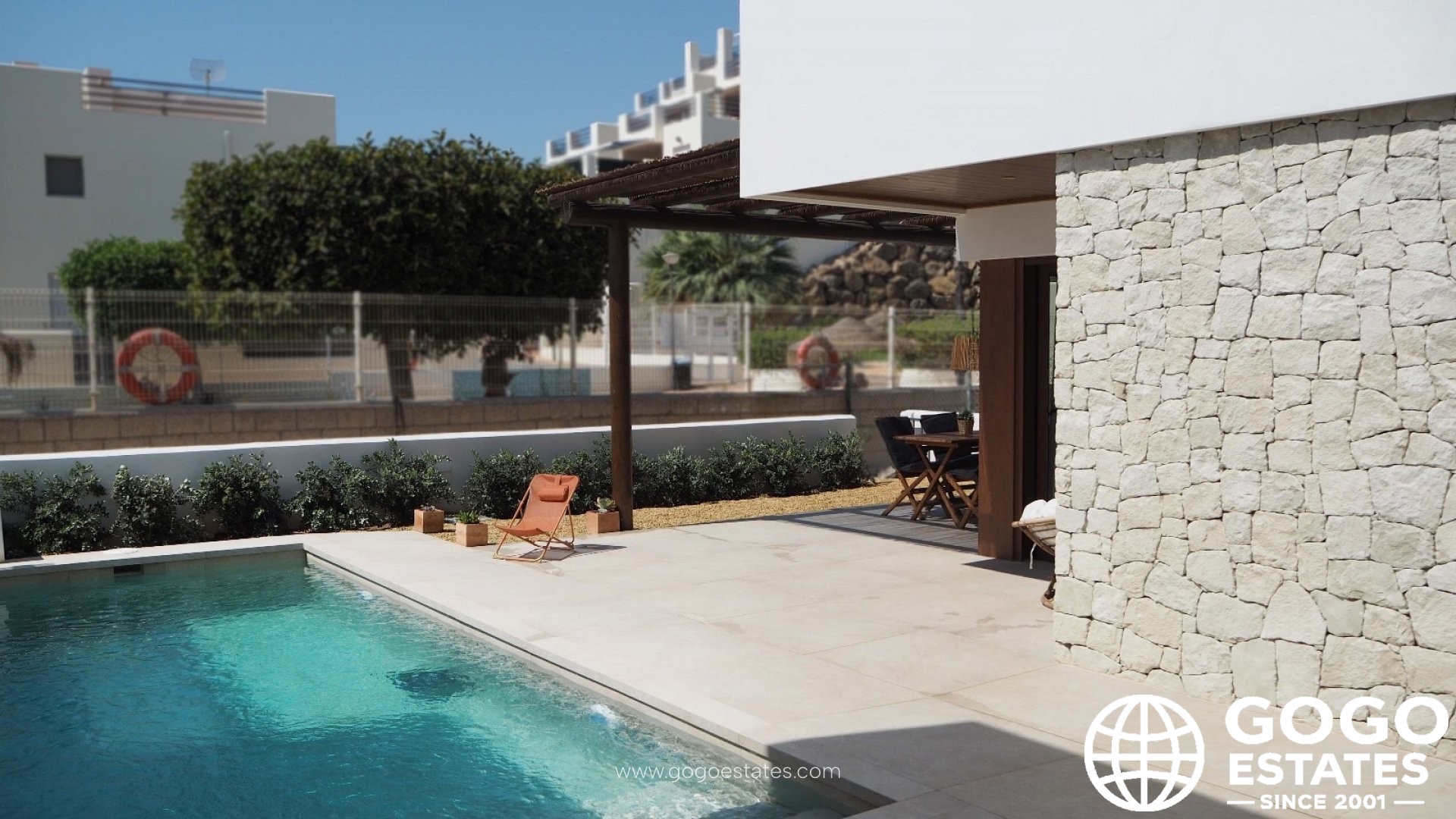 Explora esta exclusiva villa de estilo Ibiza ubicada en la segunda línea del mar en Pozo del Esparto. Esta moderna villa ofrece tres dormitorios y dos baños, proporcionando un amplio espacio para la comodidad.