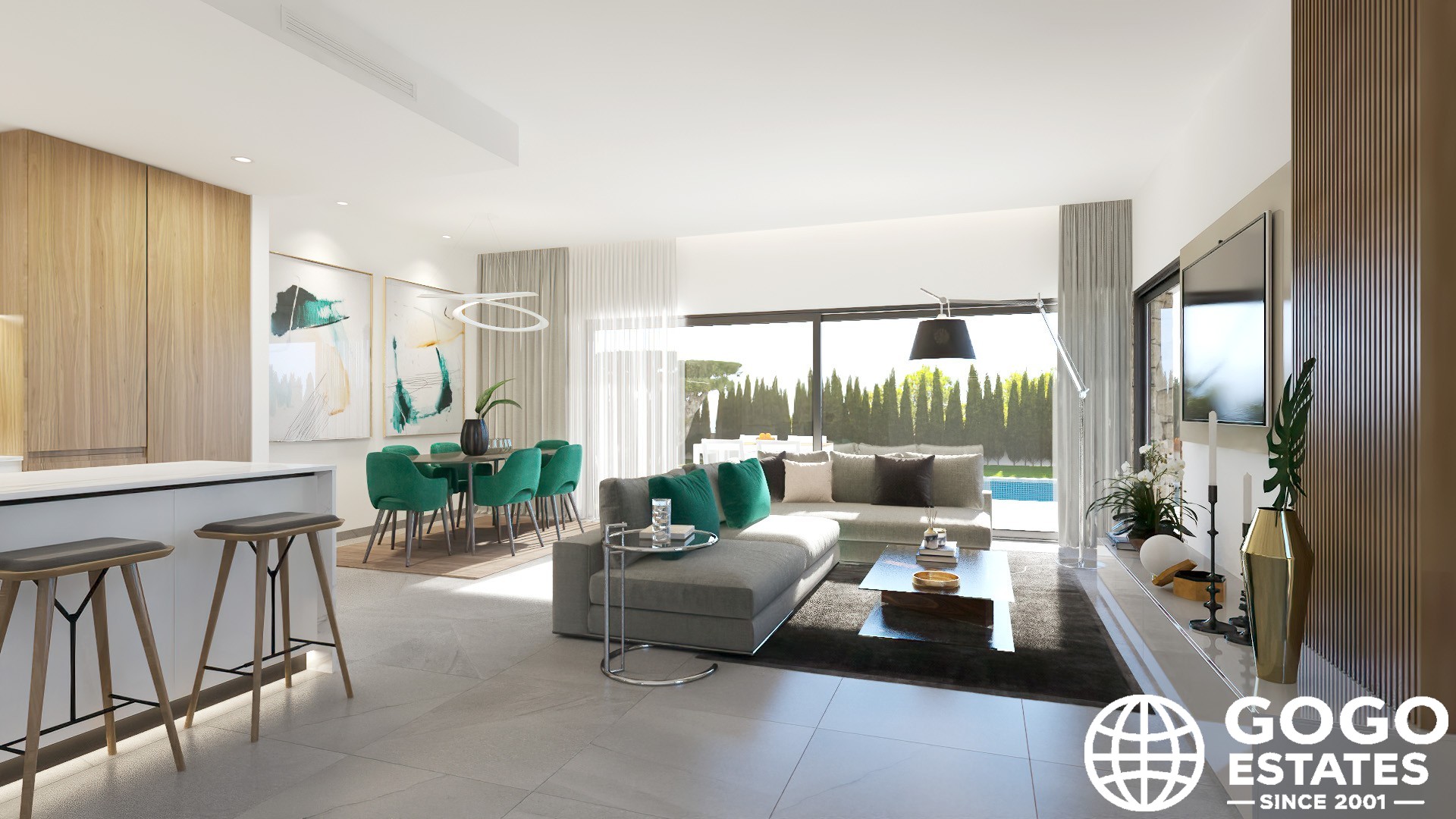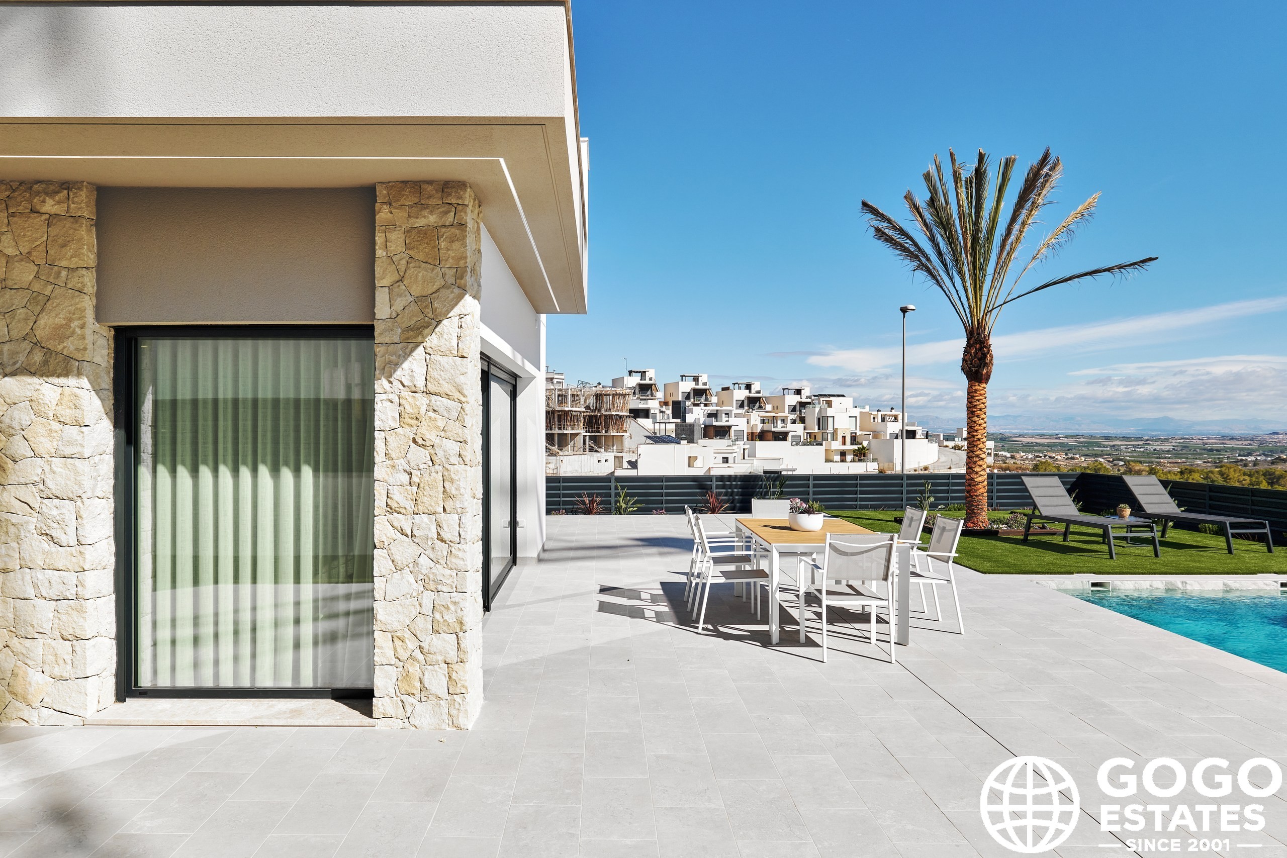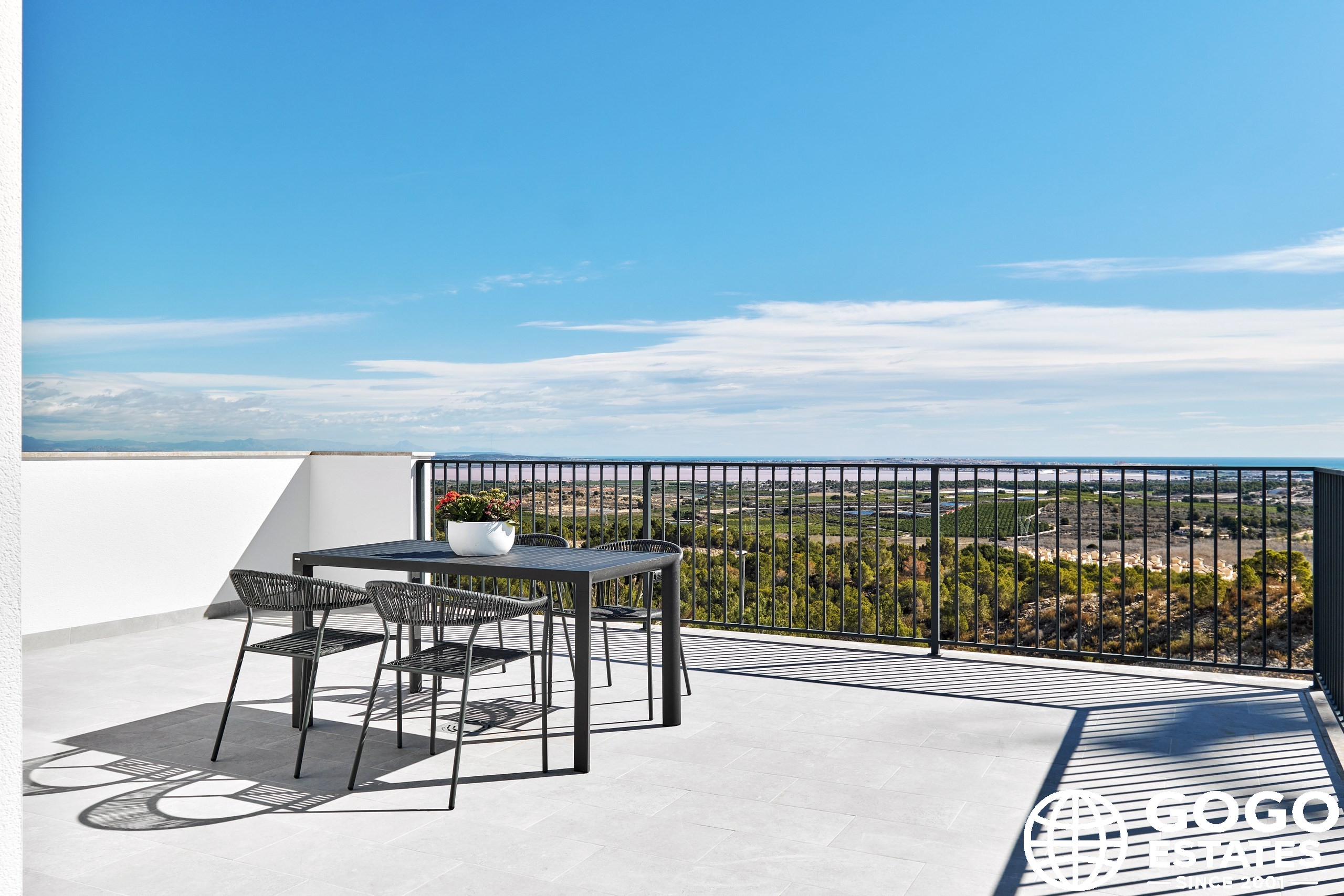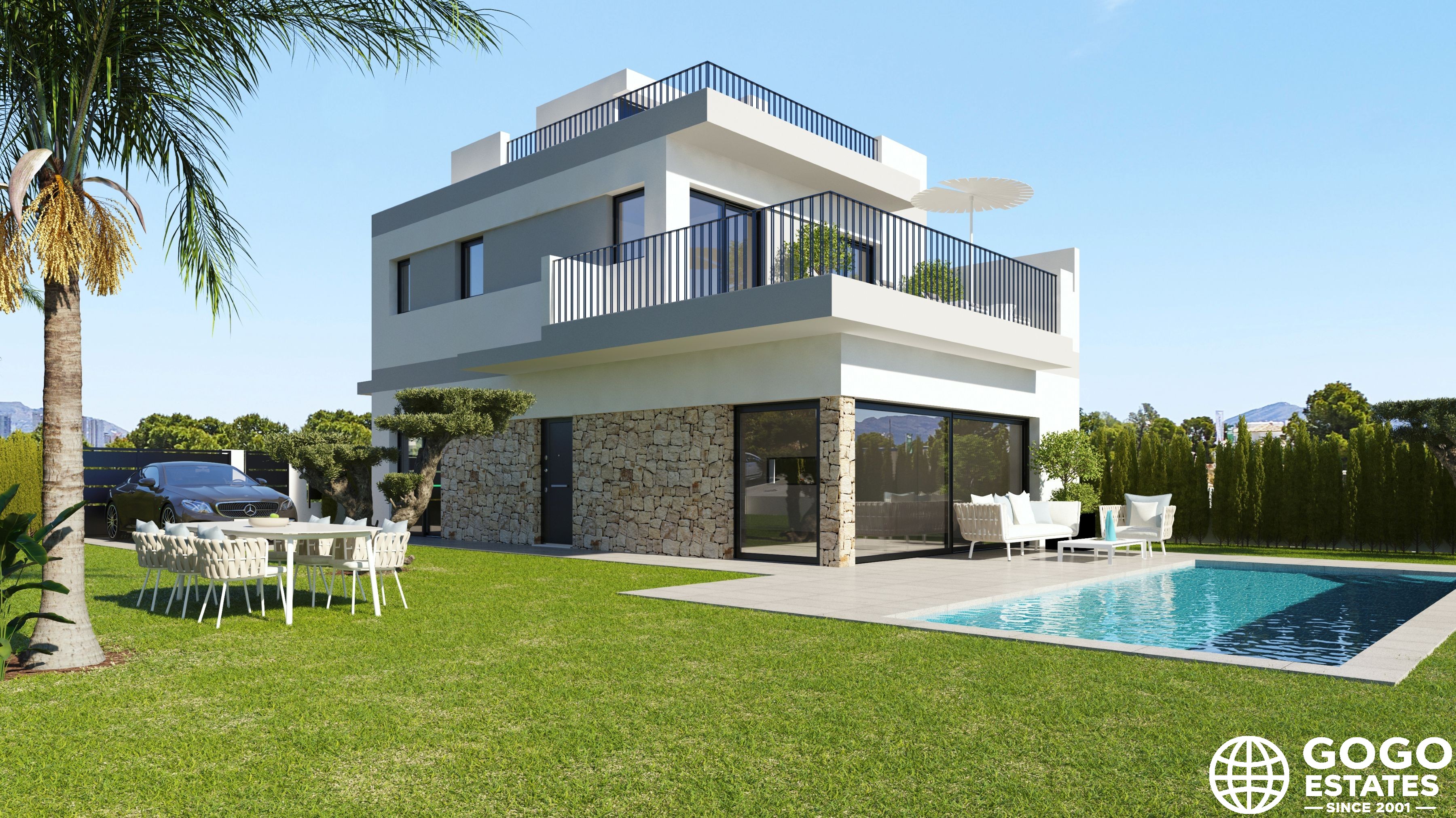 La villa incluye una terraza, perfecta para disfrutar del clima mediterráneo, y hay una opción para un solárium para espacio exterior adicional. Los interiores están diseñados para la comodidad y funcionalidad, equipados con aire acondicionado, persianas eléctricas y armarios empotrados.