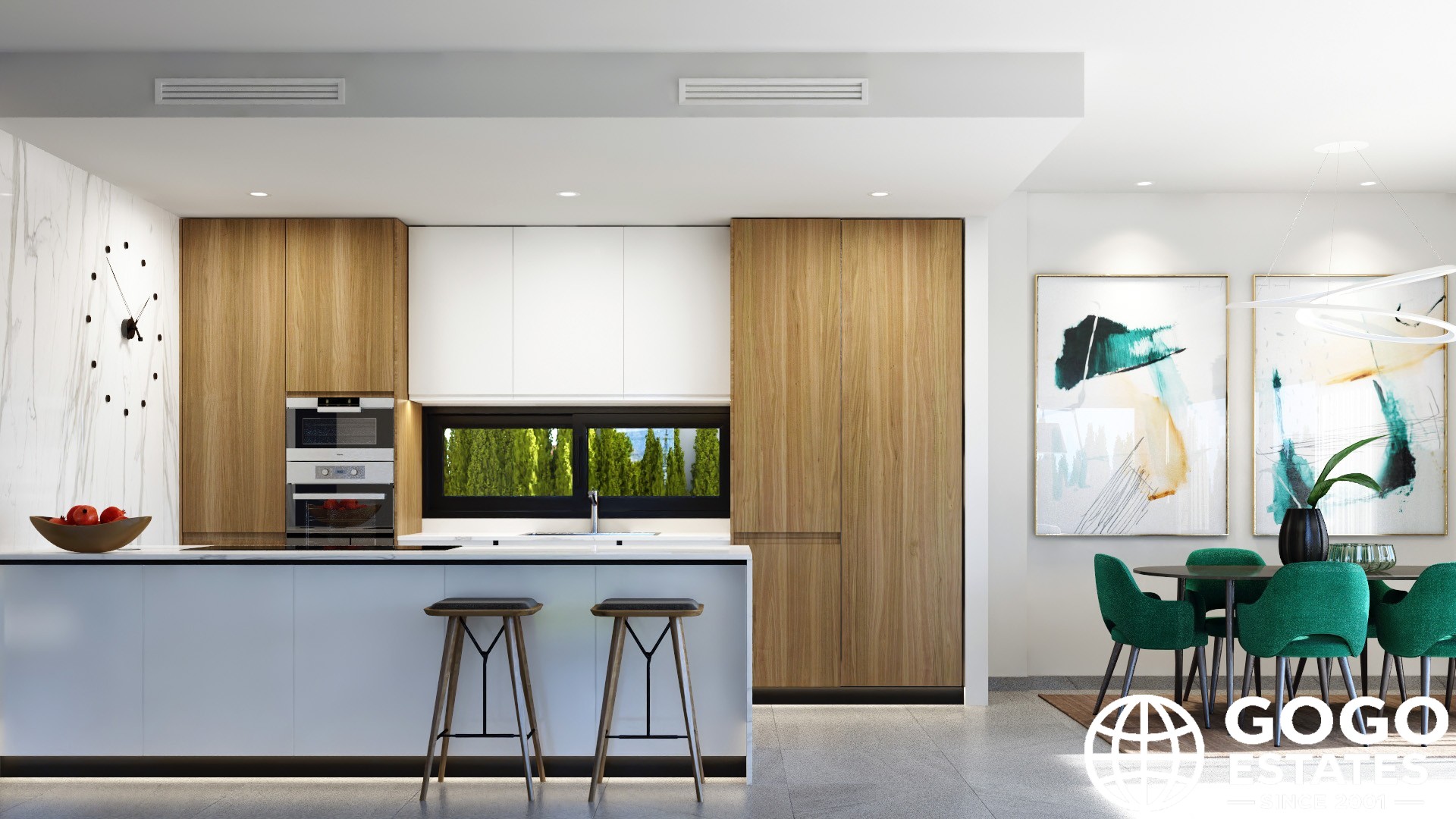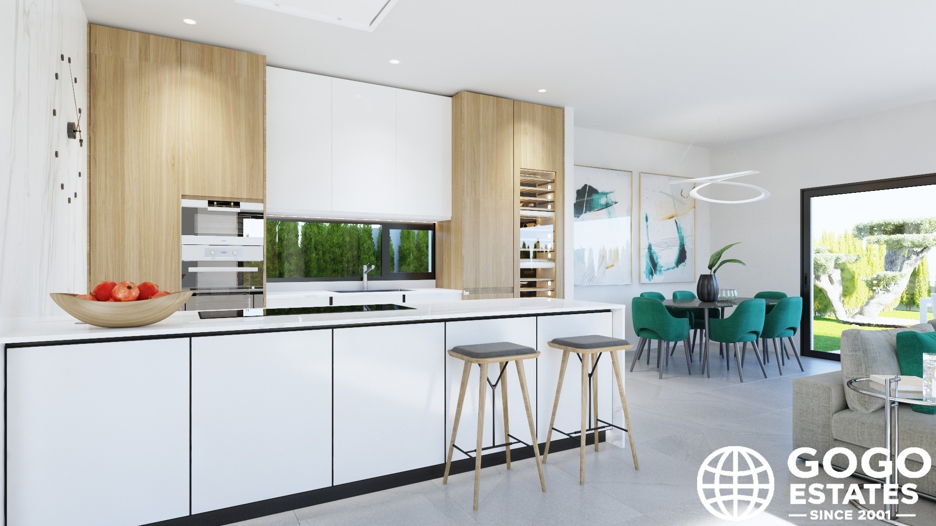 La cocina está completamente equipada con electrodomésticos modernos, y la casa se entrega amueblada, lista para mudarse. El suelo de cerámica añade un toque elegante a los interiores.