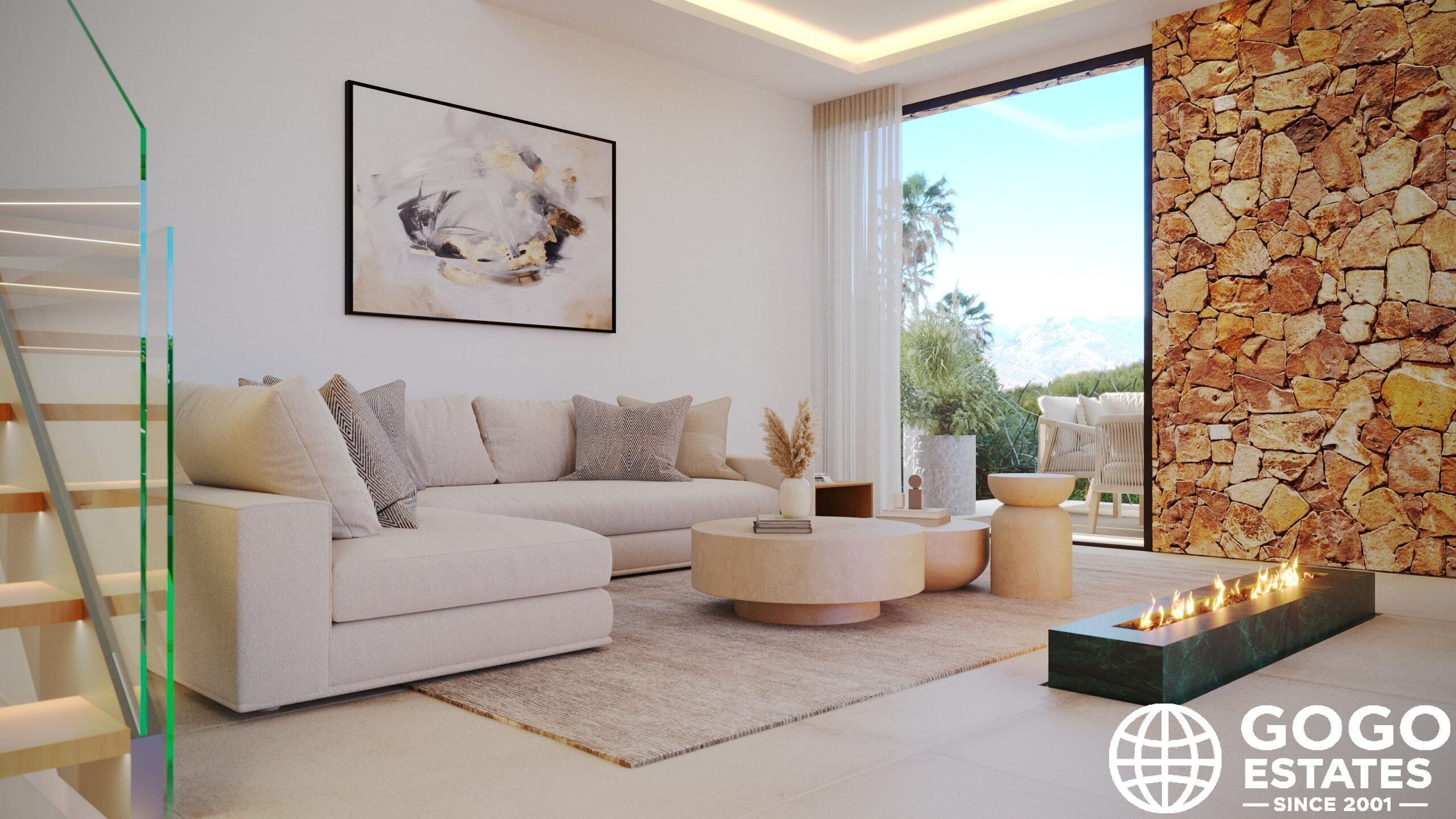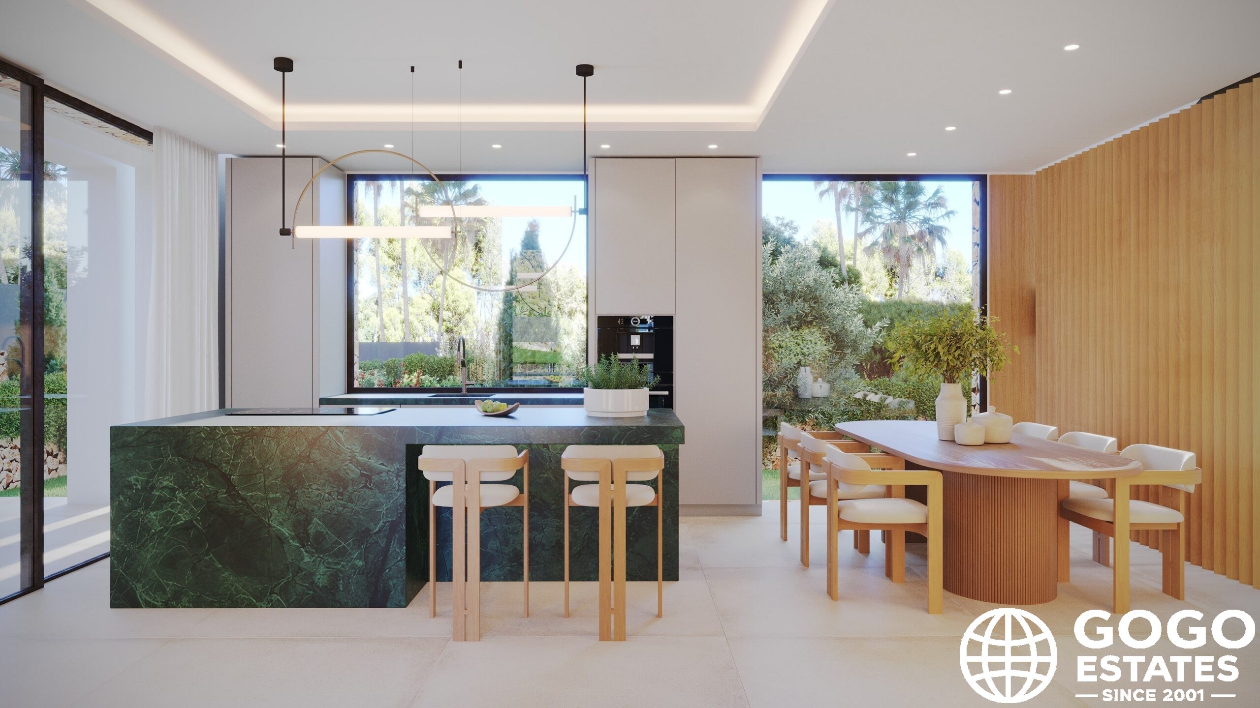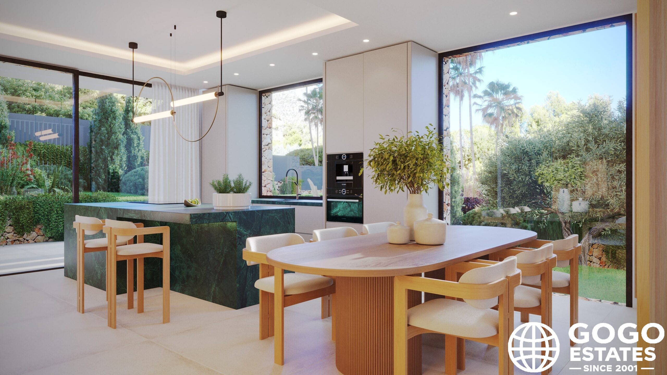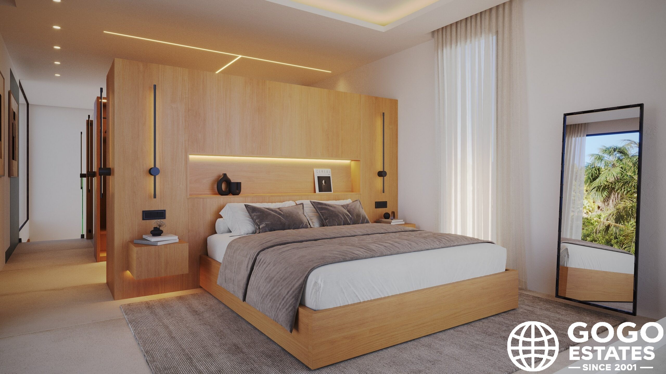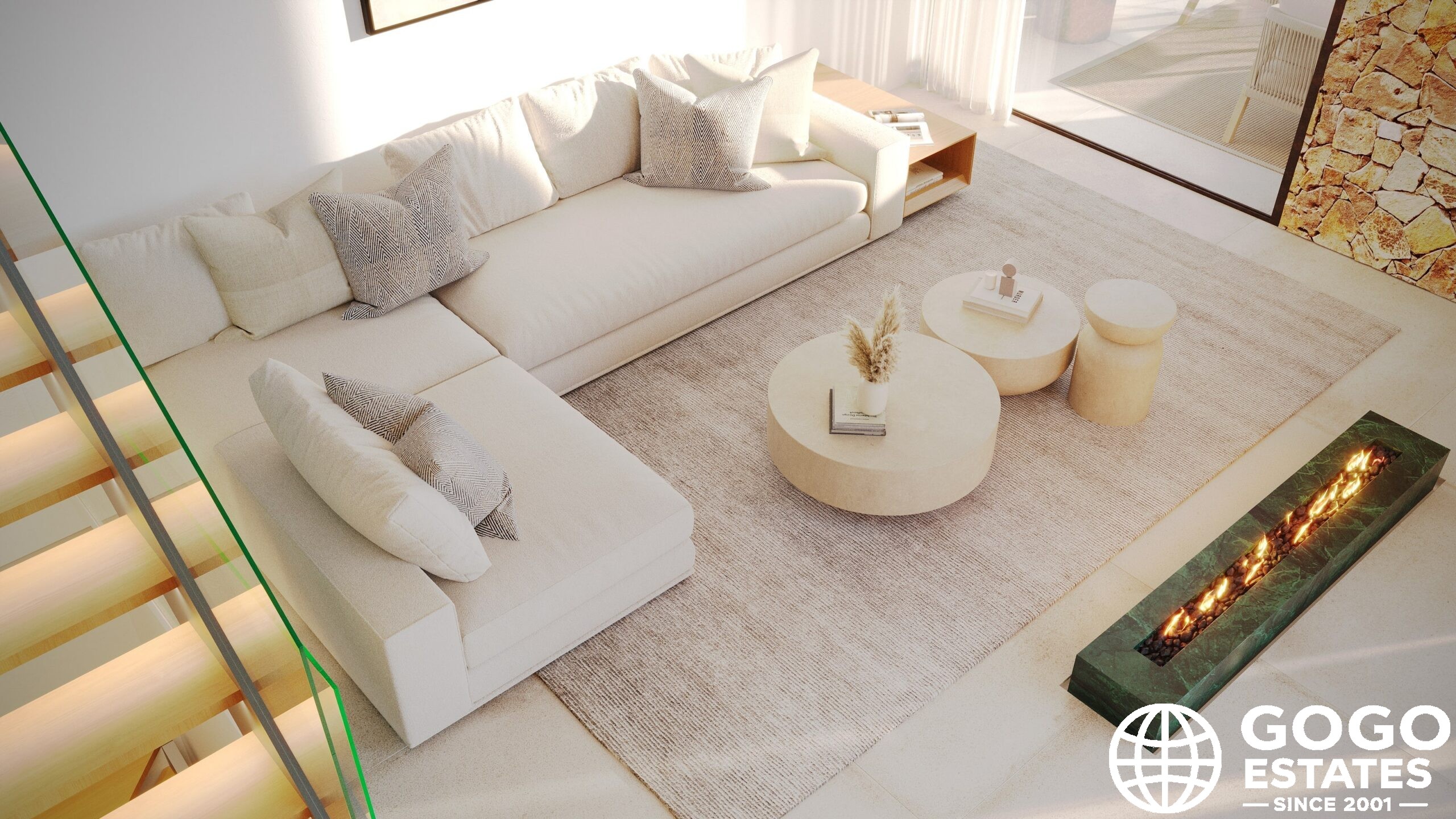 En el interior, la villa ofrece comodidad y funcionalidad con cuatro dormitorios y cuatro baños. Los acabados de alta calidad y una cocina bien equipada garantizan conveniencia y elegancia. Los armarios empotrados proporcionan almacenamiento práctico, y un garaje añade seguridad para el estacionamiento.