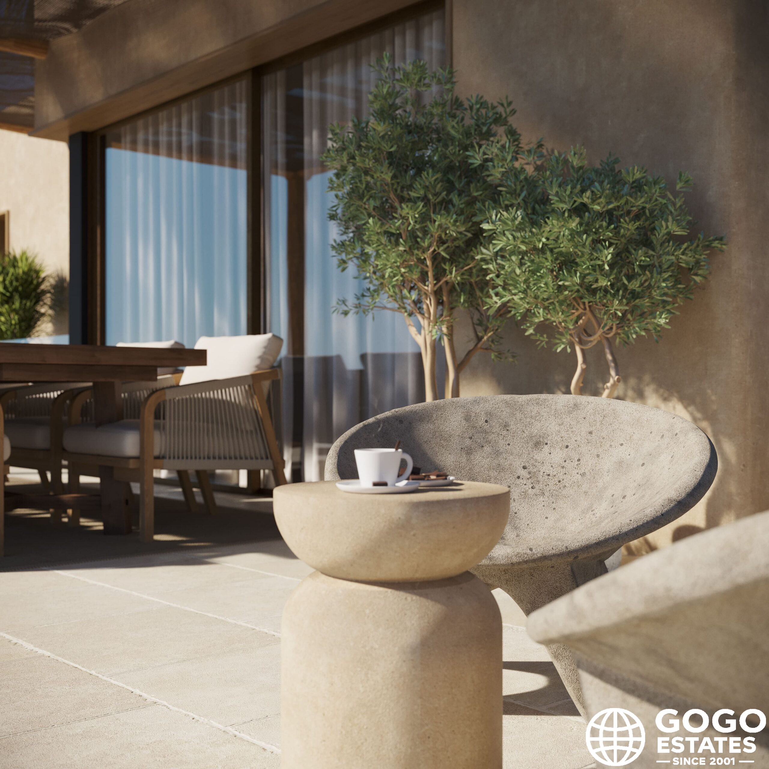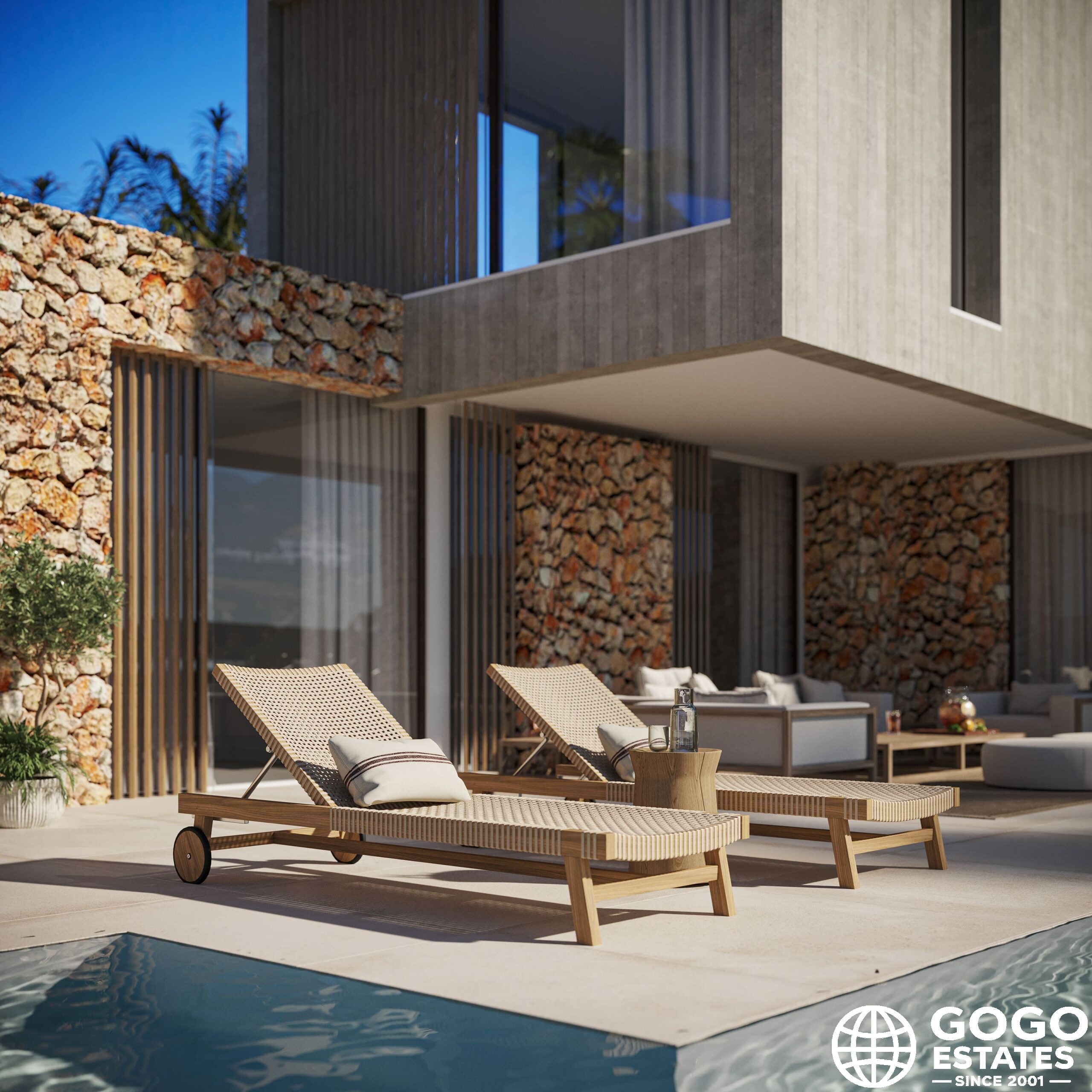 El exterior de la villa está diseñado para el disfrute mediterráneo, con un amplio jardín y piscina privada. Dos terrazas cubiertas y dos descubiertas realzan el ocio al aire libre, perfectas para reuniones y relajación.
