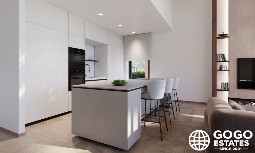 En el interior, las villas están diseñadas para el confort y el estilo. Los suelos de baldosas de porcelana añaden un toque moderno y son fáciles de mantener. Las cocinas están equipadas con electrodomésticos de alta calidad, y los armarios empotrados en los dormitorios ofrecen un amplio espacio de almacenamiento. La distribución permite personalización con opciones de 3 o 4 dormitorios y de 3 a 5 baños.