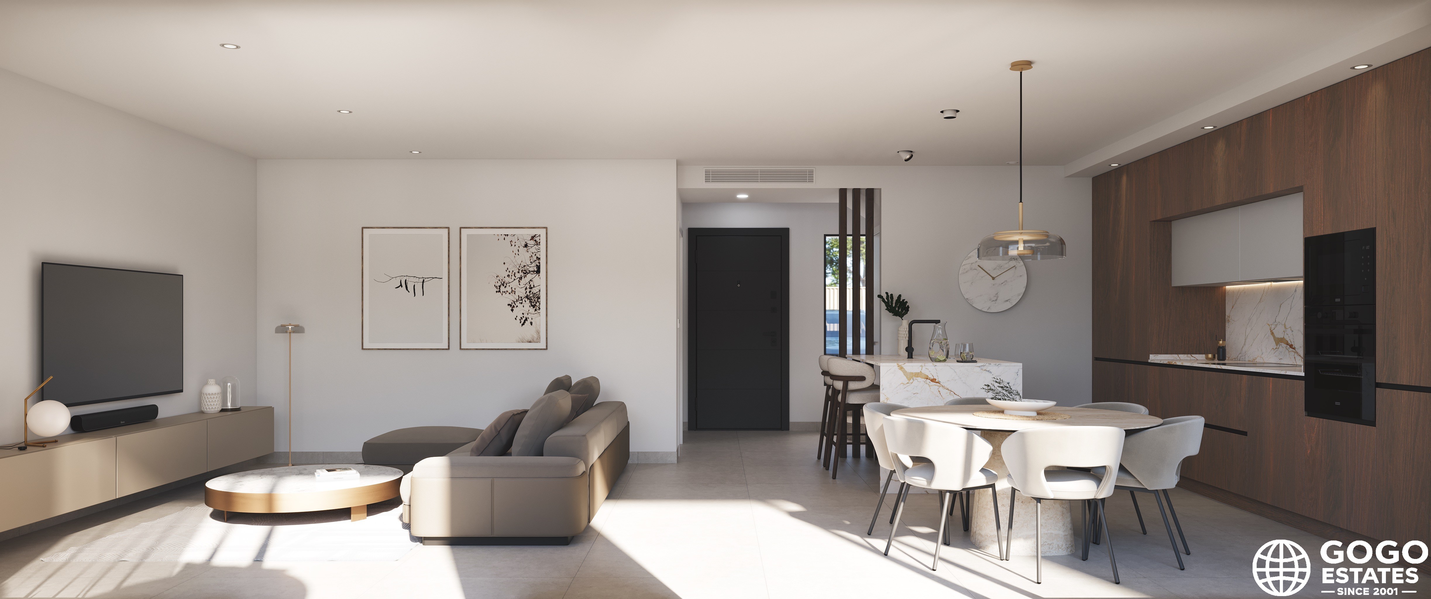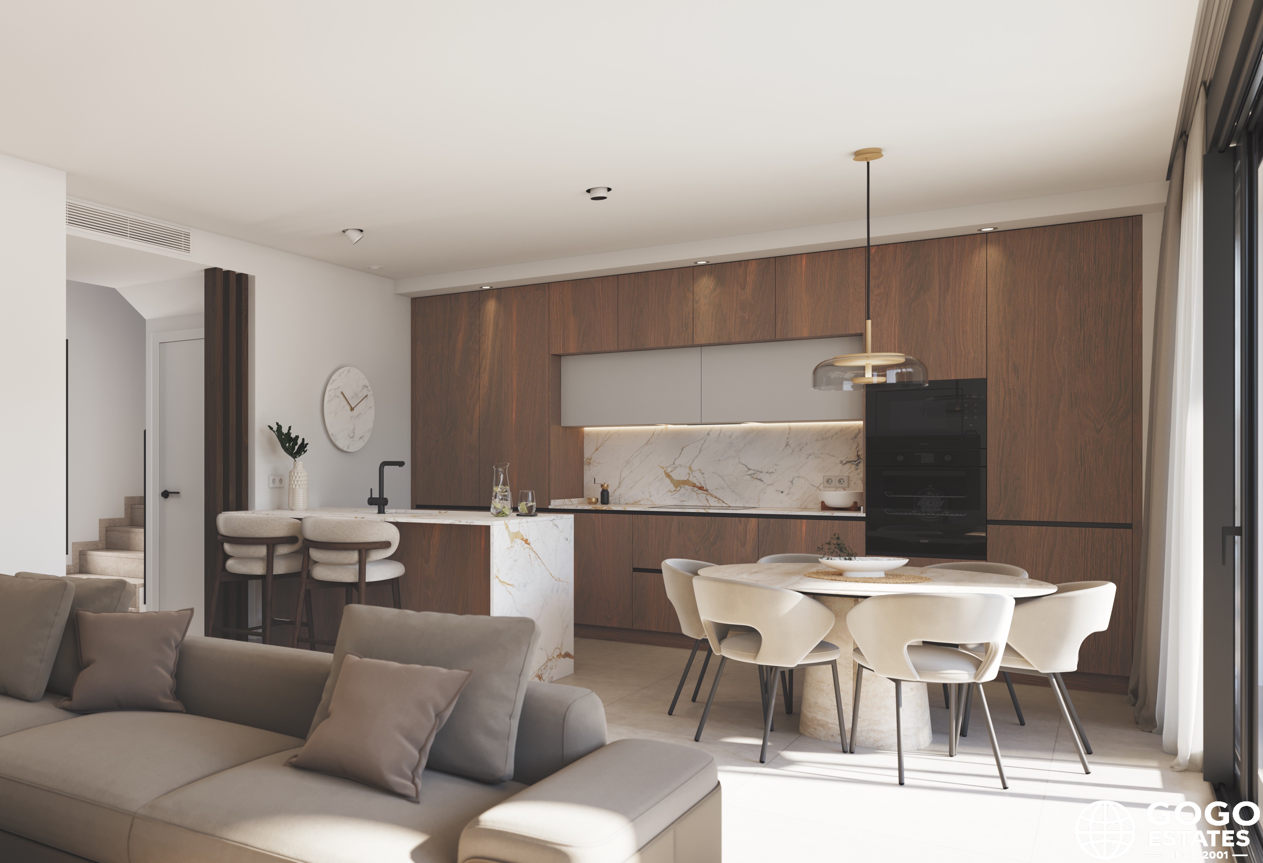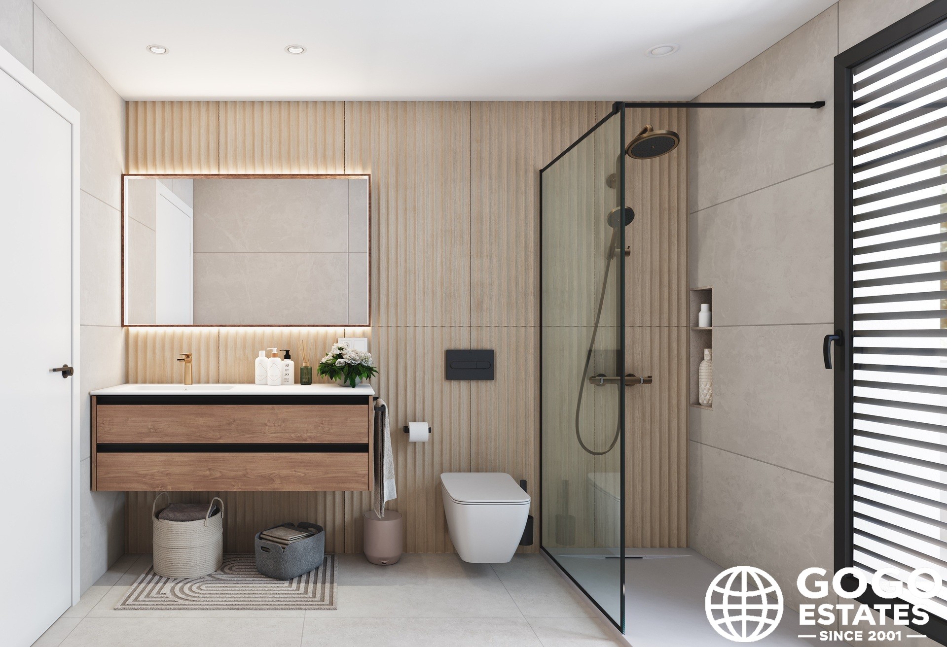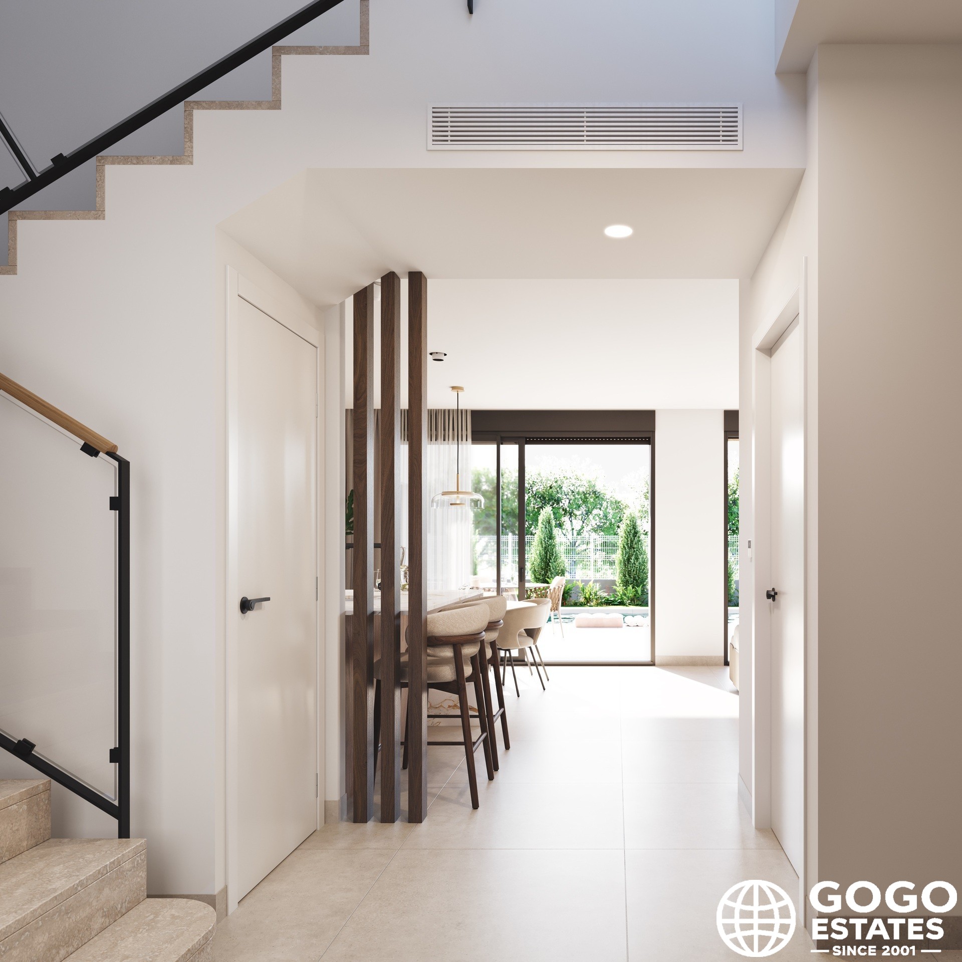 En el interior, las villas reflejan un diseño moderno y funcional. Con tres dormitorios y tres baños, los espacios están optimizados para el confort y el estilo. Los electrodomésticos de alta calidad, los armarios empotrados y las persianas eléctricas mejoran la vida diaria. El aire acondicionado preinstalado garantiza un ambiente agradable durante todo el año.