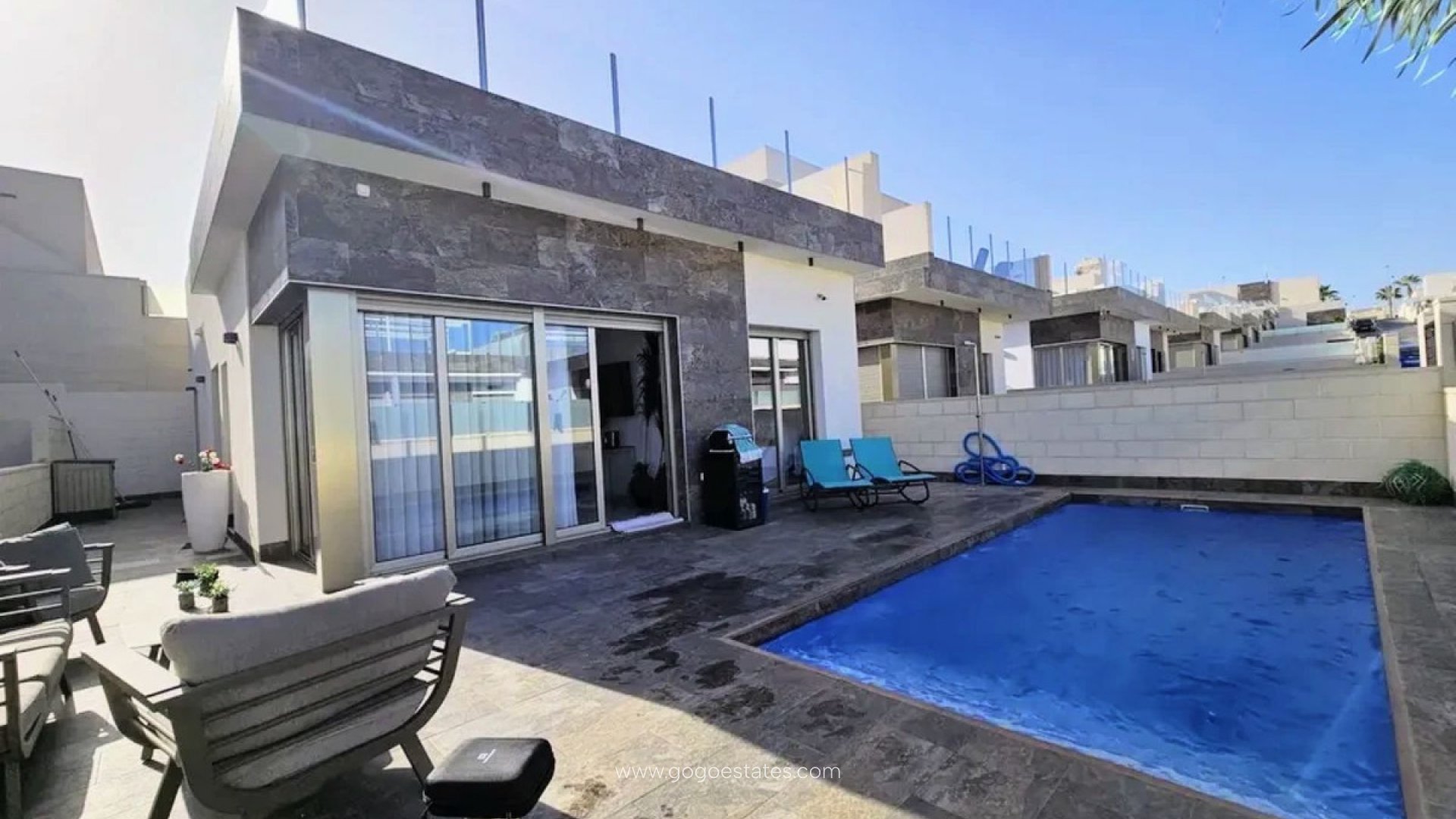 Nous sommes fiers de vous présenter cette superbe villa neuve située dans le quartier résidentiel Pink Paradise, à Villamartin, à quelques minutes seulement de la célèbre Villamartin Plaza et de la grande variété de restaurants internationaux, de supermarchés et de bars. La propriété se compose de 3 chambres spacieuses avec placards, 2 salles de bains, un salon/salle à manger et une cuisine ouverte entièrement équipée avec un espace utilitaire. La villa bénéficie de terrasses, d'une piscine privée et d'un grand solarium sur le toit avec des vues à couper le souffle sur le lac salé rose et la forêt de pins. Villamartin est situé à l'intérieur des terres, à proximité des plages de Dehesa de Campoamor, Cabo Roig, La Zenia, Playa Flamenca et Punta Prima, bien qu'il fasse partie de la région d'Orihuela Costa. Il y a un certain nombre de centres commerciaux, dont le plus grand est Villamartin Plaza, où vous trouverez un large éventail de cuisine et de divertissements pour toute la famille. Elle est pleine de charme espagnol avec ses carreaux de céramique, ses balcons et ses lampes en fer et est une destination de restauration très populaire. À cela s'ajoute le parcours de golf 18 trous de Villamartin, bien établi.