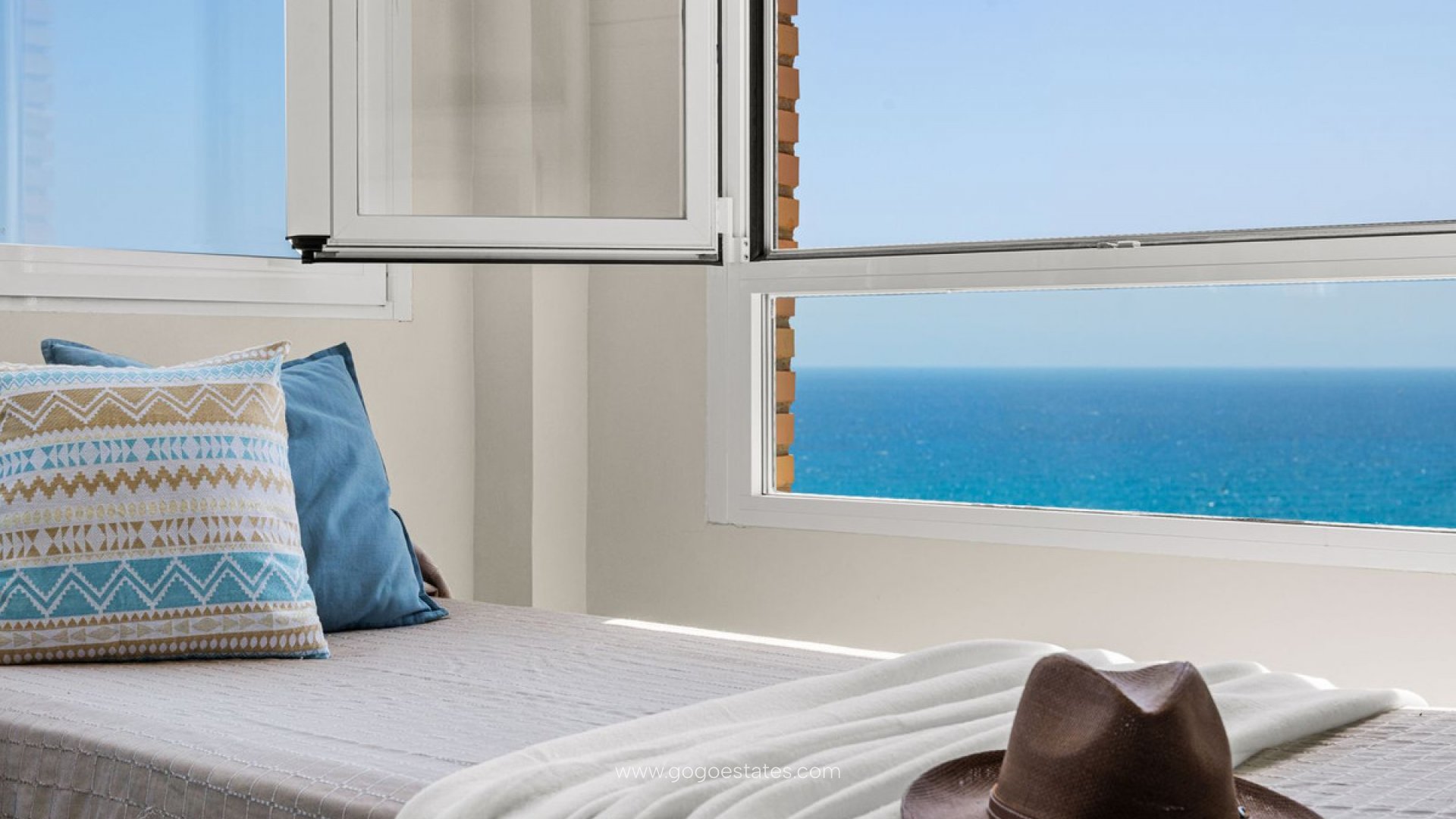 Appartement spectaculaire en bord de mer à Playa Muchavista Idéalement situé sur la spectaculaire plage de Muchavista, à seulement 20 minutes de la ville d'Alicante et à 5 minutes du centre d'El Campello, ce magnifique appartement de 3 chambres, entièrement rénové et situé à un étage intermédiaire, offre un style de vie côtier exceptionnel. À distance de marche des services de tramway et de bus, et proche des écoles, commerces et accès autoroutiers, son emplacement combine confort et tranquillité. Orienté plein sud et fini avec un haut niveau de qualité, l'appartement bénéficie de vues imprenables sur la mer et la côte. Le salon et deux des chambres, dont la suite principale, jouissent de superbes vues sur la mer. La chambre principale dispose d'un aménagement rare à double orientation, avec des fenêtres sur deux façades, permettant une lumière naturelle abondante et des vues sous différents angles. La résidence dispose de trois piscines pour adultes et enfants, de courts de tennis et de padel, d'une aire de jeux pour enfants, d'un terrain de pétanque, de jardins paysagers soignés et d'un accès direct à la promenade maritime. L'accès à la propriété se fait depuis la route de Playa Muchavista, qui mène à une rue résidentielle calme. Cette rue se termine en impasse, garantissant ainsi la tranquillité et un trafic réduit. Le stationnement est communautaire et l'immeuble dispose d'un accès piéton et véhicule. À l'intérieur, le hall d'entrée mène à un lumineux salon-salle à manger, relié harmonieusement à une terrasse vitrée orientée plein sud. La cuisine blanche élégante est équipée d'appareils électroménagers haut de gamme. L'appartement comprend également une salle de bain familiale, un WC séparé et trois chambres doubles. Caractéristiques principales :Climatisation par conduits dans tout l'appartement, fenêtres oscillo-battantes à double vitrage, volets électriques, électroménagers haut de gamme, deux ascenseurs et service de conciergerie. Une occasion unique d'acquérir une propriété exclusive en bord de mer, avec une rénovation de haute qualité, de vastes espaces communs avec installations sportives et un environnement calme mais bien desservi. Ne manquez pas l'opportunité de visiter ce bien unique à Playa Muchavista.