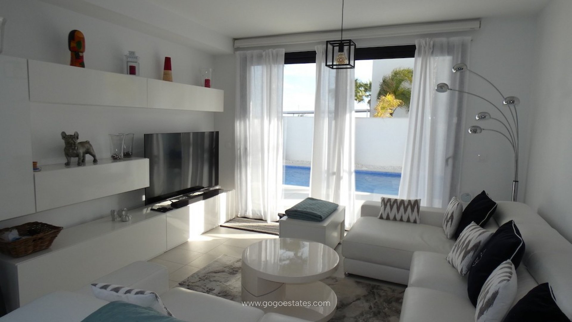Située dans la ville populaire de Ciudad Quesada, nous sommes ravis de vous présenter cette villa individuelle moderne de trois chambres avec piscine privée. Vendue entièrement meublée, la propriété est en excellent état et dispose à la fois d'un bon espace intérieur et extérieur. Le jardin a été principalement carrelé avec quelques zones ayant du gazon artificiel et des plantes. En entrant dans la maison, il y a un espace pour la machine à laver et le sèche-linge et une salle de bain. Le rez-de-chaussée comprend également un salon/salle à manger ouvert et une cuisine avec une petite table et des chaises. La salle à manger peut accueillir six personnes et le canapé en L offre beaucoup d'espace pour regarder la piscine ou se détendre en regardant la télévision. Toutes les fenêtres ont des rideaux en filet ainsi que des stores intérieurs. C'est une propriété qui a beaucoup de lumière entrant à l'intérieur. A l'étage, il y a trois chambres doubles et deux autres salles de bains, encore une fois joliment présentées et un autre escalier intérieur mène au solarium sur le toit, qui offre une vue magnifique sur le lac de La Mata et la campagne environnante. La villa bénéficie également de la climatisation canalisée partout et à l'extérieur, d'un grand espace autour de la piscine ainsi que d'un autre coin salon sur le côté de la propriété, avec un auvent. Les propriétaires actuels ont également une voiture, qu'ils aimeraient vendre. Il est à distance de marche d'un supermarché et d'une sélection de restaurants et de bars. À quelques minutes en voiture de la rue principale de la ville et également du quartier Doña Pepa de Ciudad Quesada, qui dispose de nombreuses commodités, notamment des banques, une pharmacie, des restaurants, des bars et bien plus encore. Le terrain de golf est à cinq minutes en voiture, tandis que les plages de Guardamar del Segura sont à dix minutes et l'aéroport d'Alicante à trente-cinq minutes en voiture. Il s'agit d'une superbe propriété qui a été très bien entretenue par les propriétaires actuels. Veuillez nous contacter pour plus d'informations.