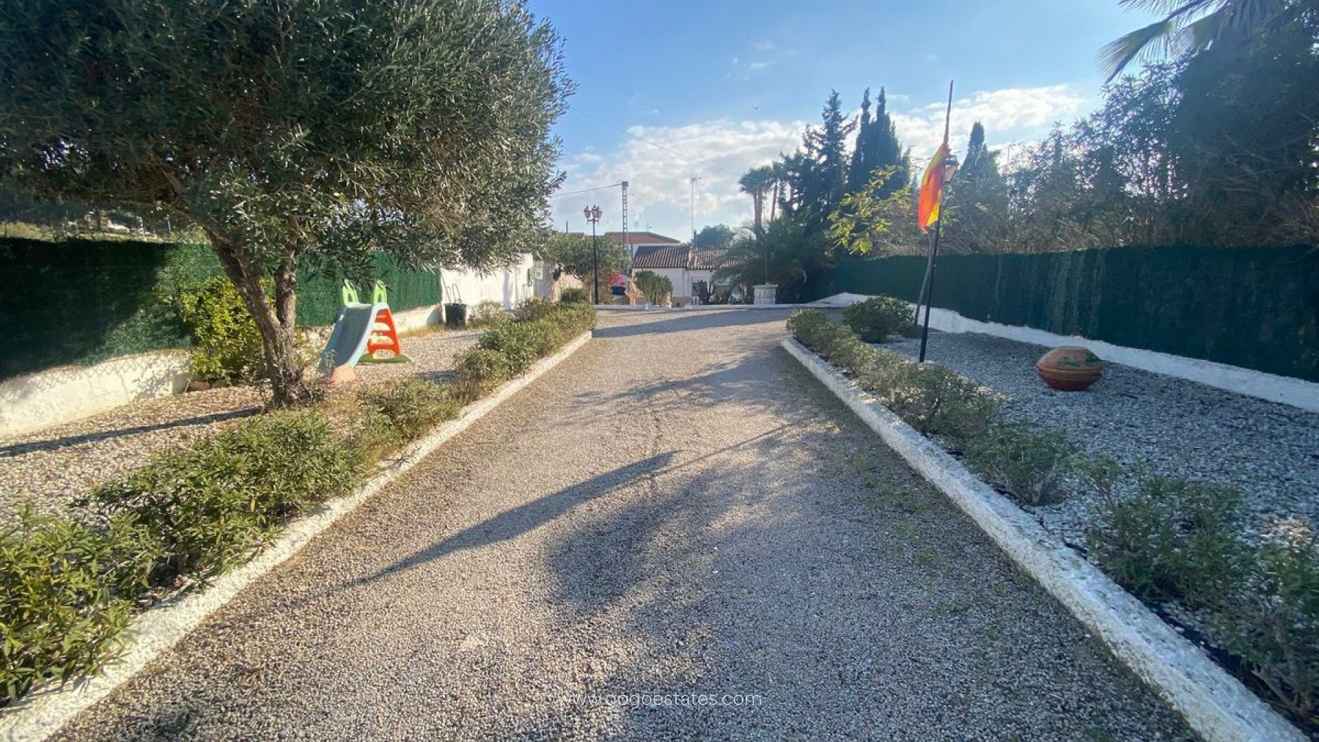 Spacieuse finca en retrait de la route principale à Montemar, Algorfa sur la Costa Blanca Sud. La propriété a été construite en 1989 mais a été entièrement rénovée en 2012, avec une grande extension et se compose désormais de trois chambres doubles, deux d'entre elles avec lits doubles et l'autre avec deux lits simples, toutes avec placards, grand salon spacieux et salle à manger avec cheminée à bois et climatisation, une salle de bain avec douche et une grande cuisine séparée entièrement équipée qui comprend réfrigérateur-congélateur, four, plaque de cuisson à gaz, lave-vaisselle, micro-ondes et grille-pain. La propriété est orientée à l'ouest et dispose d'une longue entrée avec suffisamment de place pour trois voitures, d'un grand patio avant et d'un jardin avec des palmiers, un olivier et un nispero. À l'arrière de la propriété se trouve une autre terrasse privée spacieuse avec une piscine surélevée et également une dépendance séparée de 12 m2 avec cuisine et barbecue, également lave-linge, un autre réfrigérateur-congélateur et rangement. Cette belle finca a été bien entretenue et est vendue meublée à distance de marche du centre commercial de la Finca et à 2 minutes à pied de l'hôtel Algorfa. Algorfa est un joli village espagnol qui possède une grande et impressionnante place d'église. Le fleuve Segura passe à côté d'Algorfa et on y trouve un complexe sportif municipal avec une piscine extérieure moderne, une salle de sport, des courts de tennis et trois terrains de football ainsi que l'impressionnant terrain de golf et le spa de La Finca Resort. Algorfa offre une bonne gamme de restaurants locaux et internationaux, des supermarchés, des pharmacies, des banques, quelques petits magasins pour tous les produits de première nécessité et le grand marché du dimanche matin connu sous le nom de Zoco Market. Algorfa est une municipalité de la Communauté de Valence, en Espagne. Située au sud de la province d'Alicante, dans la région de Vega Baja del Segura. Elle compte 4 537 habitants. Située au pied du Paraje de las Escoteras, elle se trouve sur la route qui, le long de la rive droite du fleuve Segura, mène d'Orihuela et Bigastro à Rojales et Guardamar del Segura. Nous soulignons le château de Montemar comme lieu d'intérêt. Cette demeure seigneuriale a été construite à la fin du XVIIIe siècle et appartient depuis à la famille du comte de Casa Rojas.