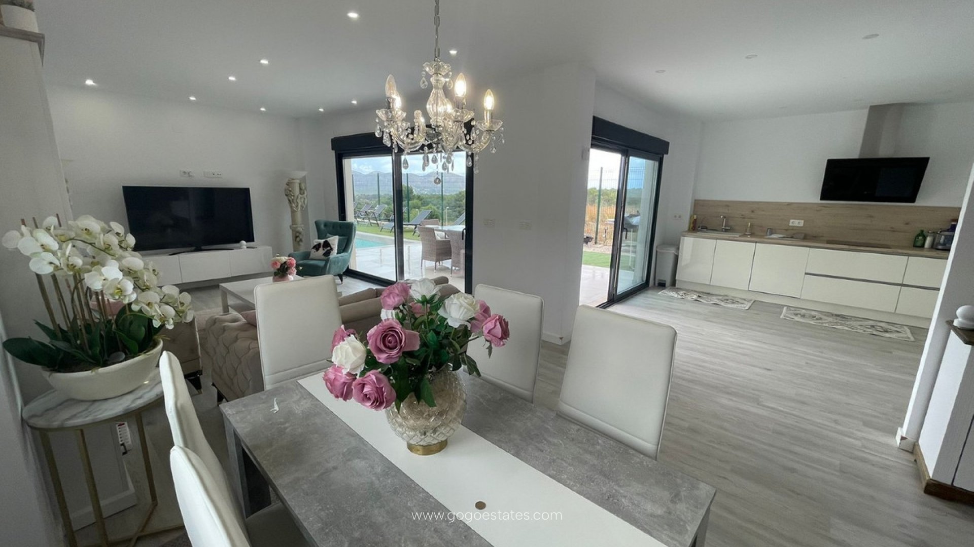 Découvrez cette superbe villa moderne dans un quartier résidentiel paisible d'Alfaz del Pi. Elle comprend 3 chambres lumineuses, 3 salles de bains élégantes, un salon chaleureux avec cheminée et une cuisine entièrement équipée ouverte sur l'extérieur. Profitez de la spacieuse terrasse avec espace détente, de la piscine privée et du jardin avec vue dégagée sur les montagnes. Construite en 2020 et en excellent état, cette maison allie confort, élégance et idéal pour une vie de famille, à quelques minutes d'Altea, de Benidorm et des plages locales.