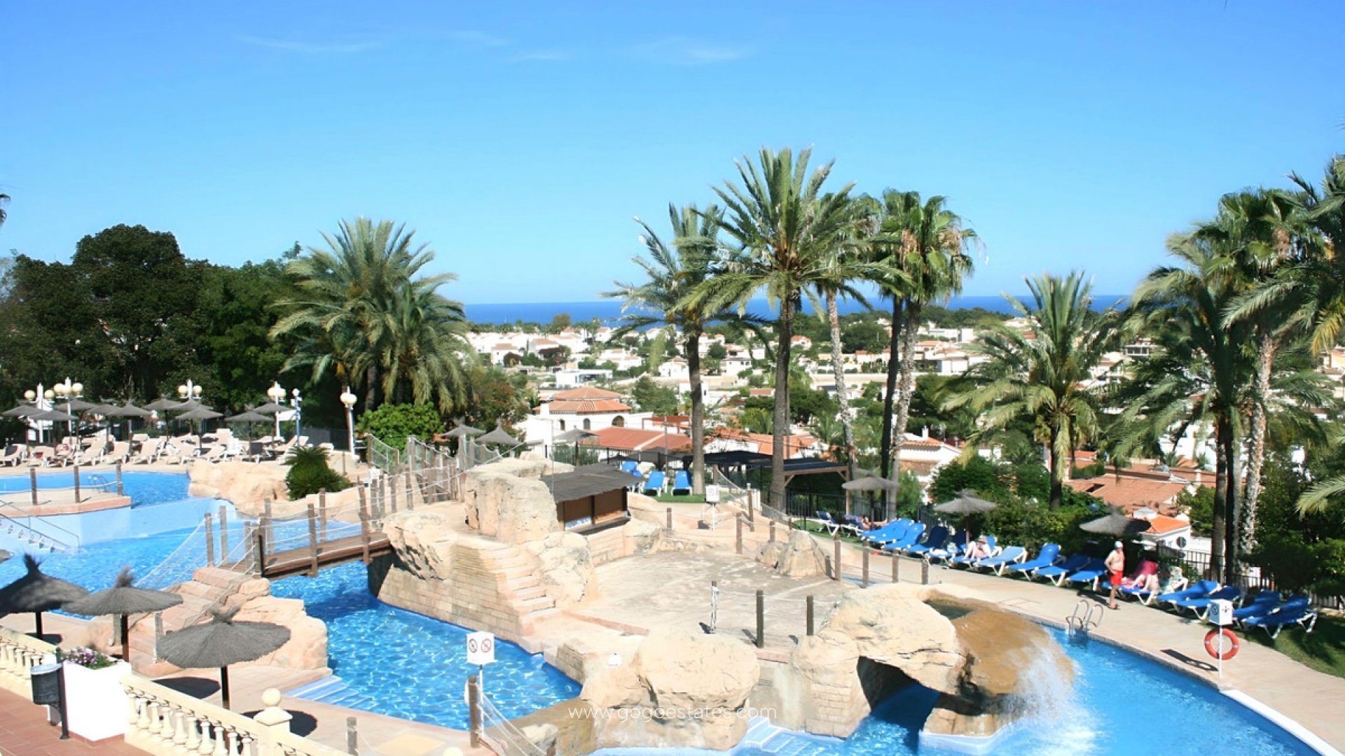 Bon investissement pour les locations (de vacances) Ce parc de vacances, spa et centre de bien-être bien connu avec 4****hotel (uniquement pendant les mois d'été) offre de nombreuses facilités pour des vacances merveilleuses. Et même pour une résidence (semi-)permanente ! La belle piscine commune avec vue sur Calpe, Peñon de Ifach et la mer est le joyau de la couronne. Un total de 12 bungalows sont actuellement proposés à la vente, tous avec une chambre à coucher (surface habitable totale de 55 m² (y compris terrasse ou solarium de 16 m²)). Les prix varient : les bungalows d'une chambre à coucher coûtent à partir de €170.000 avec place de parking incluse et les bungalows de 2 chambres à coucher à partir de 200.000€ avec garage. Toutes les propriétés disposent d'un parking privé. Calpe est une ville côtière d'environ 25 000 habitants, située entre Altea (10 km) et Moraira (10 km). Elle possède deux belles plages de sable : El Arenal-Bol et La Fossa, séparées par l'imposant Peñon de Ifach. La distance jusqu'à l'autoroute est d'environ 12 km, et l'aéroport d'Alicante se trouve à environ 80 km. L'hôtel est situé à proximité de l'aéroport de Moraira, à 10 km de Moraira. .