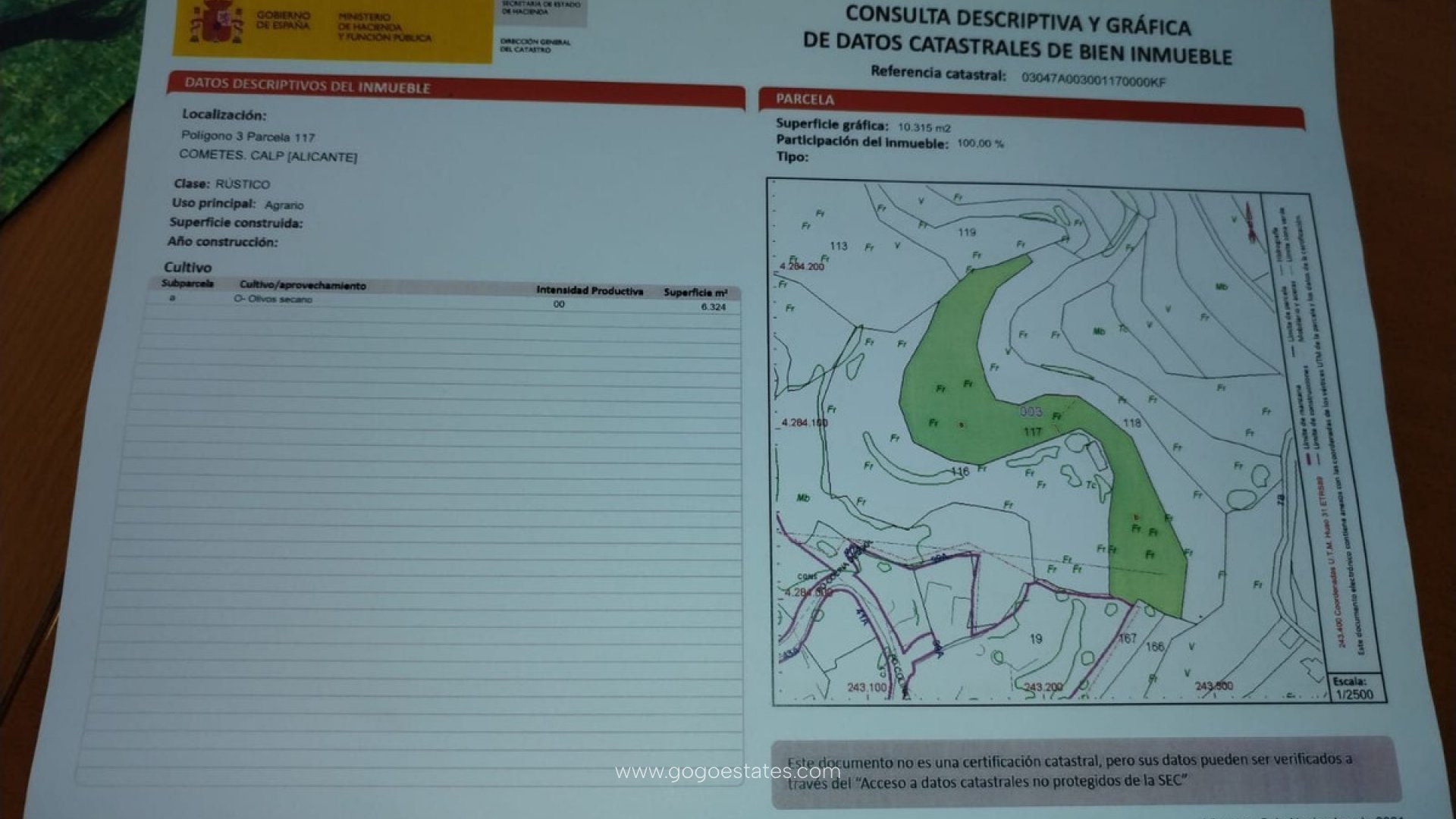 Propriété rustique de 11 000 m² pour la construction d'une maison. Terrain avec vue dégagée sur le Peñon de Ifach.