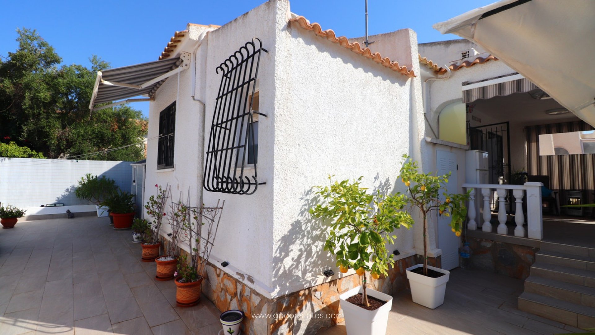 Cette villa individuelle de trois chambres, exposée sud-ouest, est située à La Florida, dans un quartier résidentiel prisé, à seulement 2 minutes à pied du centre commercial et de ses nombreuses commodités. Le célèbre centre de divertissement Emerald Isle, avec son club de pétanque, son restaurant et sa piscine, est à quelques minutes seulement, tandis que La Zenia Boulevard, ses superbes plages et plusieurs parcours de golf sont accessibles en 10 minutes en voiture. Magnifiquement présentée, cette villa de plain-pied offre une superficie de 90 m² sur un terrain carrelé de 210 m² facile d'entretien. Une terrasse couverte mène à un lumineux salon/salle à manger avec un poêle à granulés, une cuisine ouverte équipée avec bar et une buanderie attenante avec accès direct à l'extérieur. La villa comprend trois chambres doubles, dont la principale avec placards intégrés, et deux salles d'eau modernes et élégantes, dont une attenante. L'espace extérieur comprend une pataugeoire privée, idéale pour se rafraîchir, tandis que les résidents ont également accès à deux piscines communes bien entretenues. La climatisation, qui en fait une maison confortable toute l'année, est également disponible. Une résidence idéale à temps plein, une maison de vacances ou une opportunité d'investissement locatif sur la très recherchée Costa Blanca Sud.
