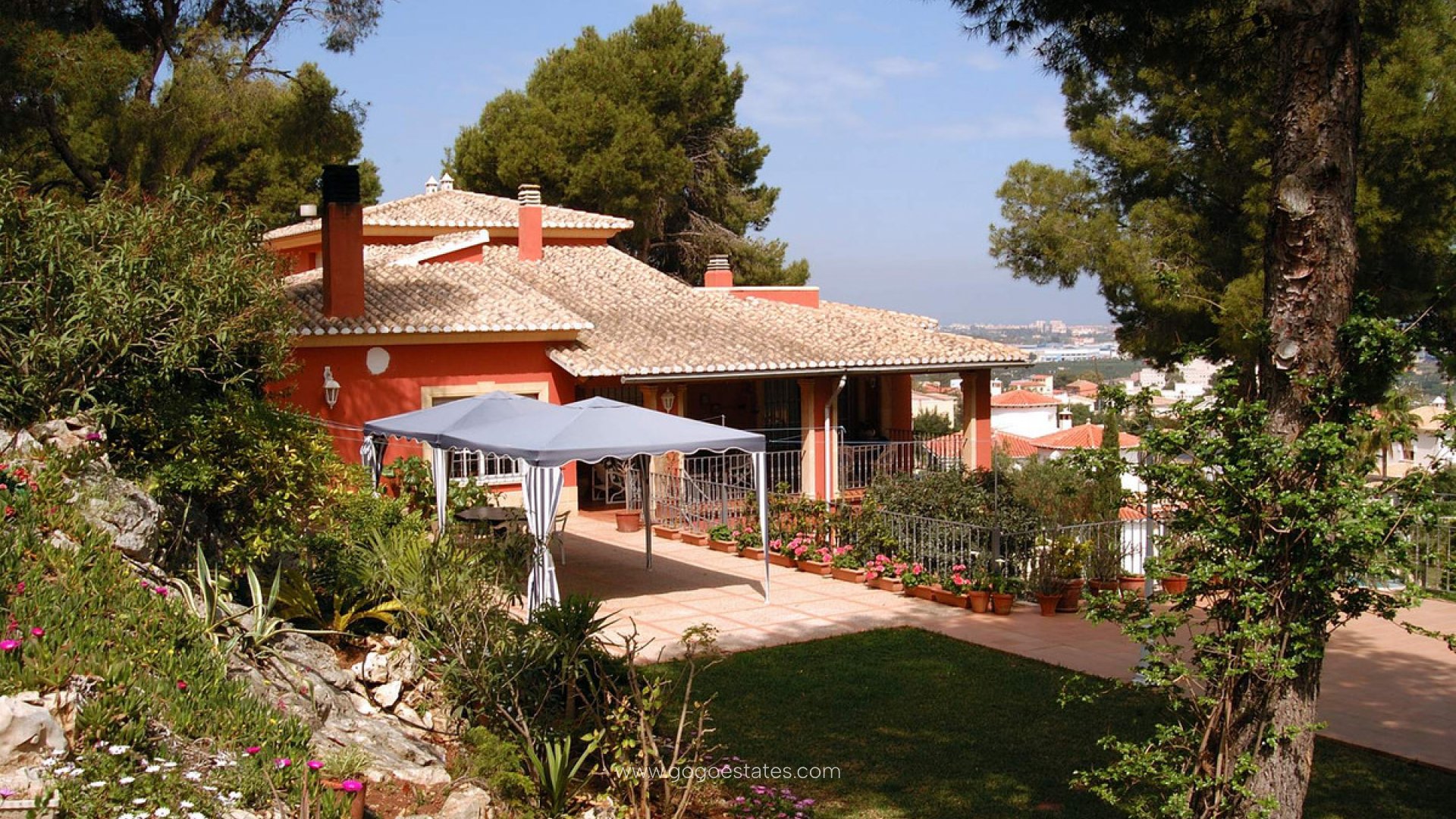 Spectaculaire villa seigneuriale dans le Montgó, avec vue sur Dénia, court de tennis et piscine. La maison est répartie sur trois étages (voir plans) : Le rez-de-chaussée (192 m2) se compose d'un salon de 75 m2 avec cheminée et cuisine avec bar, d'un WC, d'une cave à vin, d'un cellier, d'un double garage, d'un débarras, d'un ascenseur et d'une grande terrasse couverte de 70 m2 et d'une terrasse non couverte attenante de 30 m2. C'est l'entrée principale de la maison. Le premier étage (285 m2) est distribué en une chambre principale avec dressing et salle de bain en-suite, deux grandes chambres doubles, une quatrième chambre avec salle de bain en-suite, un bureau, une salle de bain, des toilettes, une cuisine avec cellier et chambre froide industrielle (4m2), une buanderie, un hall, un salon avec cheminée et une salle à manger avec cheminée. En outre, à cet étage, il y a une terrasse couverte de 30 m2 avec des vues sur Dénia, son château et le Golfe de Valence. L'étage supérieur (50 m2) se compose d'un studio indépendant mansardé avec salle de bain complète, terrasse de 17,5 m2 avec vue imprenable et débarras. La maison se trouve sur un terrain de 4164 m2, dans lequel il y a plusieurs terrasses, un court de tennis avec vestiaires, une piscine, un verger, des jardins, une zone sauvage de végétation méditerranéenne vierge, un barbecue et un paellero, un garage et un puits pour l'eau d'irrigation. La maison est finie avec des matériaux de première qualité : murs et escaliers en pierre naturelle, arcs en tosca naturelle, sol en terre cuite, menuiserie intérieure en chêne massif, toit en tuiles de terre cuite. Chauffage central au fioul. Des armoires encastrées dans toutes les chambres. Tout l'extérieur de la maison a été fraîchement peint. Une propriété exceptionnelle dans un emplacement urbain unique à Dénia, capitale de La Marina Alta sur la Costa Blanca d'Alicante. Demandez-nous des informations complémentaires sans engagement.