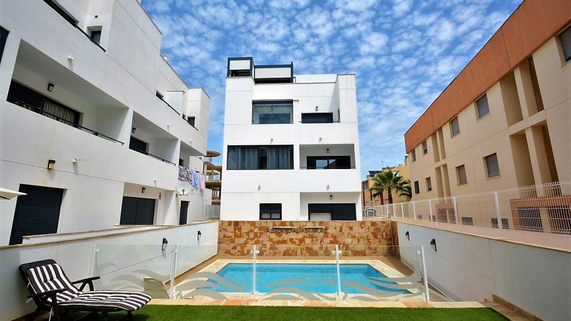Fantastique appartement en duplex situé dans une résidence sécurisée de 16 logements, avec piscine commune et parking souterrain. Ce bien bénéficie de finitions et d'équipements haut de gamme. Son orientation sud exceptionnelle le rend très lumineux et ensoleillé. Vue mer depuis le toit-terrasse ! Un endroit idéal pour profiter du climat méditerranéen en toute tranquillité, tout en étant à quelques pas de toutes les commodités de la charmante ville espagnole de Guardamar del Segura. L'accès à ce bien se fait au premier étage. La surface totale construite est de 91 m², répartie sur deux niveaux. De plus, cet appartement dispose d'une terrasse privée sur le toit (34 m²). Au rez-de-chaussée, vous trouverez des toilettes invités, un spacieux séjour avec cuisine ouverte, un coin repas avec table pliante et un balcon vitré avec vue sur la piscine. La cuisine entièrement équipée offre de nombreux rangements et tous les appareils électroménagers nécessaires : lave-vaisselle, réfrigérateur, lave-linge, cafetière, plaques vitrocéramiques, four, hotte aspirante et chauffe-eau électrique. Au deuxième étage, vous trouverez la suite parentale avec accès à un balcon vitré et une salle de bain privative avec fenêtre, une pièce faisant office de grand dressing, une autre chambre double avec placards intégrés, une deuxième salle de bain avec douche et fenêtre, ainsi qu'une grande armoire dans le couloir entre les chambres. Les deux chambres sont équipées de téléviseurs. Le toit-terrasse est équipé d'un store motorisé ultramoderne et de stores latéraux pour une intimité totale. La terrasse est divisée en deux parties : l'une avec un toit entièrement ouvrant et fermant, l'autre avec un store fixe en aluminium partiellement ouvrant. Tous les stores et stores sont contrôlés par télécommande. Vous trouverez également un grand barbecue à gaz, un petit grill à charbon, un plan de travail avec évier, de nombreux rangements et un petit réfrigérateur. Une douche d'été est installée sur le toit-terrasse pour les chaudes journées d'été. Pré-installation pour téléviseur et installation complète de vidéosurveillance avec caméras et son. Cette propriété dispose de deux climatiseurs très puissants à chaque étage, avec modes refroidissement et chauffage. Des panneaux solaires de haute qualité sont installés sur le toit, alimentant toute la maison en électricité toute l'année. Tous les meubles, appareils électroménagers, téléviseurs et autres installations sont inclus dans le prix. Une place de parking souterrain est également incluse dans le prix. Construite en 2019, elle a été peu utilisée par les propriétaires actuels. Les droits de mutation de 10 % et les autres frais d'acquisition ne sont pas inclus. La résidence est située dans le quartier paisible de Los Secanos, à Guardamar del Segura. Le centre-ville de Guardamar est accessible en quelques minutes en voiture, la plage en 10 minutes à pied et l'aéroport d'Alicante en 35 minutes. N'hésitez pas à nous contacter pour toute question ou pour visiter cette magnifique propriété ! Guardamar del Segura, souvent appelée simplement Guardamar, est une charmante ville côtière située sur la magnifique Costa Blanca, en Espagne. Connue pour ses magnifiques plages Pavillon bleu, ses parcs naturels luxuriants et son riche patrimoine culturel, Guardamar est un joyau caché qui n'attend qu'à être découvert. Avec son climat méditerranéen, ses promenades pittoresques en bord de mer et son atmosphère décontractée, c'est la destination idéale pour les amateurs de détente et de plein air. Explorez des sites historiques, savourez la cuisine locale ou profitez simplement du soleil sur ses plages de sable doré. Guardamar del Segura vous invite à découvrir l'essence même de la vie côtière espagnole.