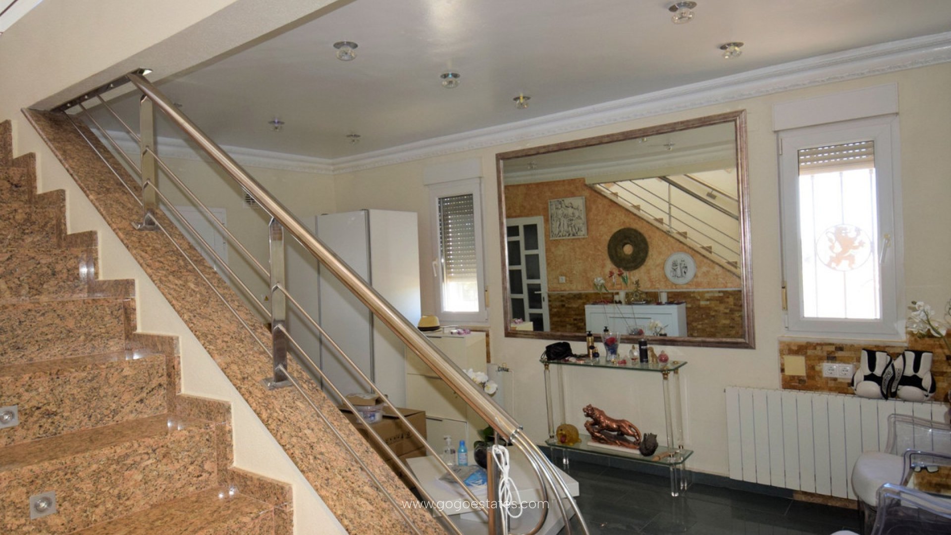 Très belle et luxueuse villa avec un terrain de 4 000 m² et une maison de 450 m². Elle comprend 6 chambres, 5 salles de bains, une cuisine séparée, un agréable salon-salle à manger donnant sur une grande terrasse vitrée. Elle dispose de plusieurs grandes terrasses offrant une belle vue sur Guardamar. À l'extérieur, elle dispose d'un parking pour 6 voitures, d'une piscine privée, d'une cuisine d'été et d'une salle de bains avec douche. La maison est équipée du chauffage central et de panneaux solaires. Elle est vendue entièrement meublée.