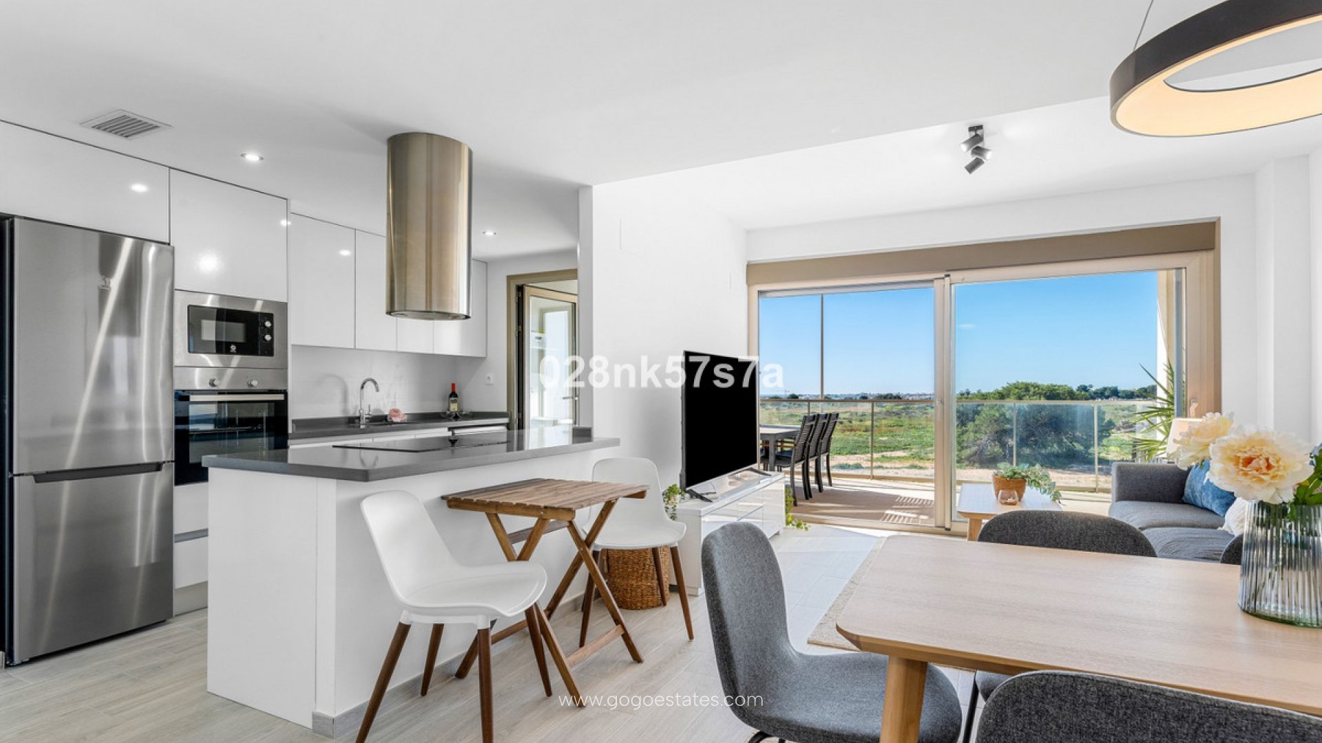 Appartement moderne exposé plein sud avec 2 chambres et 2 salles de bain - Grande terrasse - Parking et cave ! Cet appartement moderne et soigné est situé au 2e étage. Il comprend 2 chambres, 2 salles de bain raffinées, un spacieux séjour avec cuisine ouverte et une grande terrasse. Bien équipé, il est vendu meublé. Orienté plein sud, il bénéficie d'un ensoleillement optimal. L'immeuble dispose d'un ascenseur et d'un garage souterrain avec place de parking et cave privée. Vous êtes à quelques pas de nombreux restaurants, cafés et du centre commercial de La Zenia. La plage est accessible en vélo en 15 minutes environ. À noter également la proximité de trois golfs 18 trous. Le complexe comprend 3 piscines (dont une intérieure chauffée) et de grands espaces verts propices à la détente. Bienvenue aux Jardins de Villamartin !