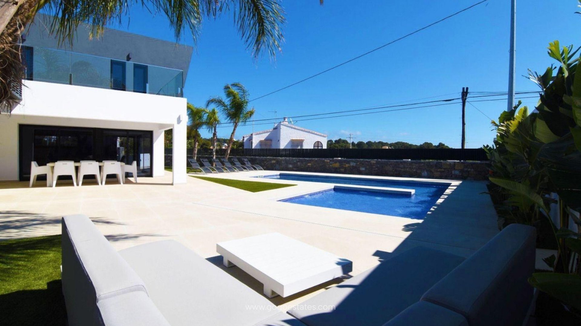 Bienvenue dans votre nouveau paradis ! Cette spectaculaire villa moderne, répartie sur deux étages, est le rêve devenu réalité que vous avez toujours recherché. Avec six chambres spacieuses et quatre salles de bains attenantes (plus une salle de bains familiale), il y a suffisamment d'espace pour toute la famille ou vos amis les plus proches. La cuisine ouverte est parfaitement reliée à un salon lumineux où les rires ne manqueront jamais. A l'étage supérieur, trois chambres ont un accès direct à une impressionnante terrasse de 41 m², parfaite pour profiter du lever du soleil en sirotant son café!~~~L'extérieur vous captivera : détendez-vous au bord d'une piscine privée de rêve ou organisez des barbecues sous les arbres dans de beaux jardins équipés d'un système d'irrigation automatique. Avec des volets électriques et une installation complète de chauffage/refroidissement par climatisation centralisée... le confort est garanti tout au long de l'année ! Sans oublier son emplacement incroyablement pratique à proximité de la plage de La Fustera (1 km seulement) et de la plage de La Fossa (1,9 km). Cette maison combine le luxe moderne sans sacrifier le style ou le confort ; venez profiter du meilleur de la Méditerranée !