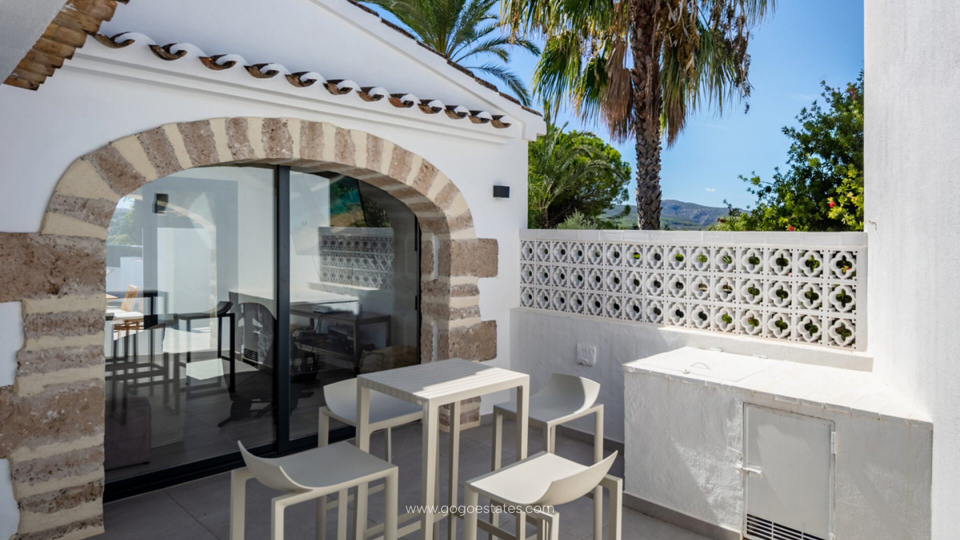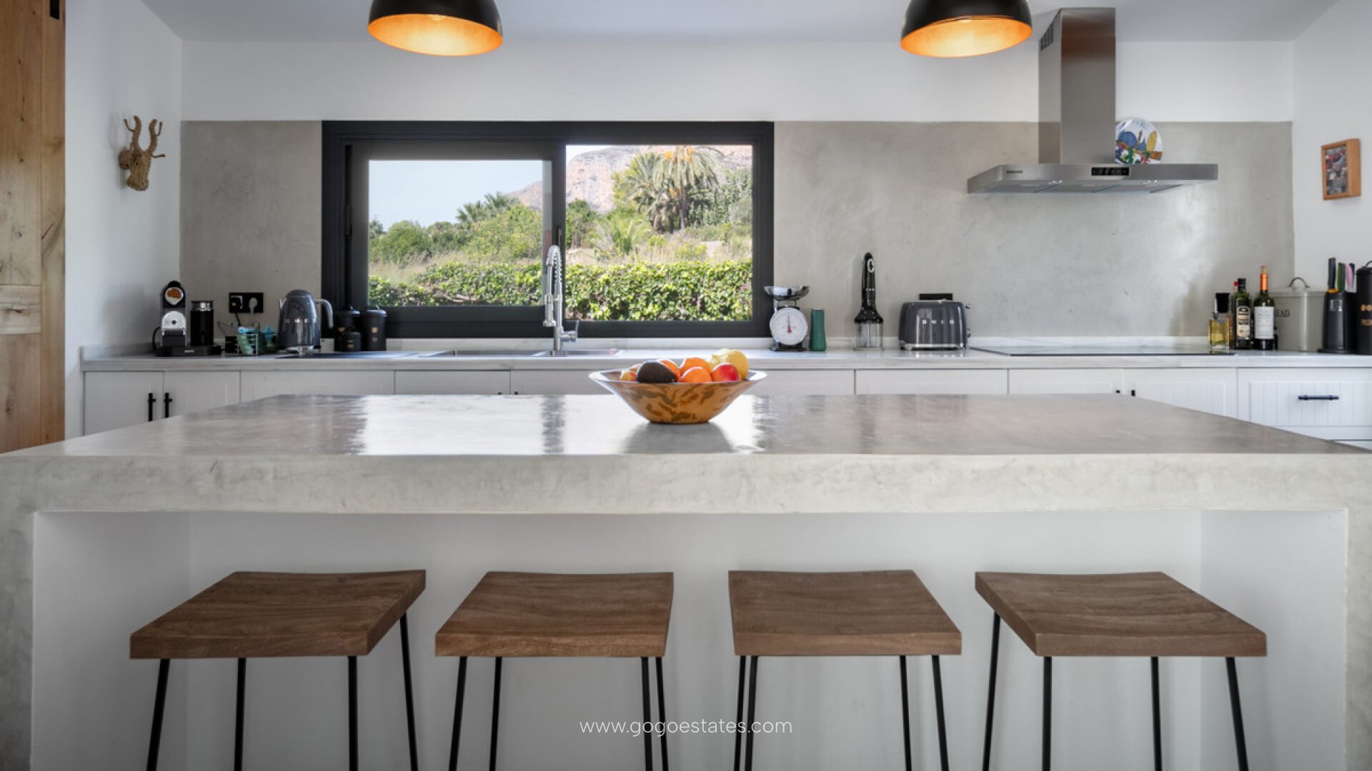 Cette villa récemment rénovée a tout pour plaire : une maison neuve alliant l'ancien au nouveau, alliant des éléments d'origine tels que les arches de Tosca à des matériaux durables, créant une grande quantité de lumière naturelle et une tranquillité absolue, ainsi que des vues spectaculaires sur la vallée. Cette propriété récemment rénovée est située à quelques pas de la vieille ville de Javea et de toutes ses commodités, bars et restaurants, ce qui est très rare sur le marché actuel. La villa bénéficie d'une vue sur la magnifique montagne Montgó où vous serez fasciné par le coucher de soleil, avec les lumières et les couleurs époustouflantes affichées pendant que vous profitez de chaque petit coin de la villa, dans ce cas depuis le balcon du premier étage. La villa dispose de 4 chambres doubles, 3 salles de bains, un grand salon, un coin bureau, un deuxième salon, une salle à manger, une salle de petit-déjeuner, une grande cuisine et une buanderie, ainsi qu'un joli dressing et un balcon dans la chambre principale. La villa a été entièrement rénovée sans laisser de traces : électricité, plomberie, climatisation, chauffage et radiateurs, parquets neufs, portes et placards en chêne faits main. D'importantes sommes ont été investies dans ce projet, sans aucun souci financier, pour créer cette magnifique maison familiale. Le jardin et la piscine créent une oasis de tranquillité absolue, avec ses palmiers, son grand jardin gazonné et sa piscine contemporaine, agrémentée d'un superbe mobilier de jardin et de stores électriques, pour une finition parfaite. La villa dispose d'un parking avec une pergola à double toit à l'avant, d'un portail électrique pour plus de sécurité, d'une alarme et de caméras de surveillance sur votre téléphone.