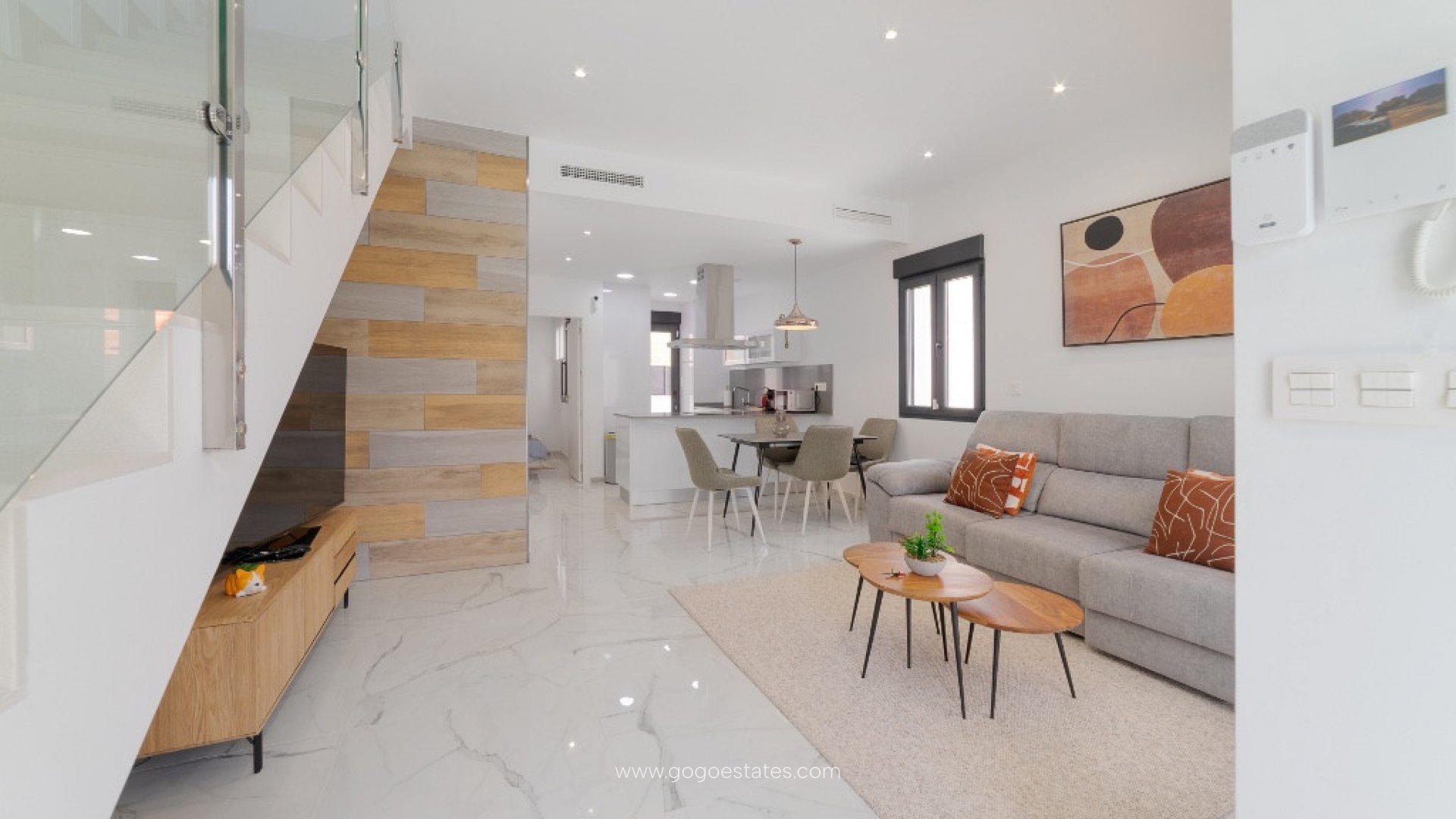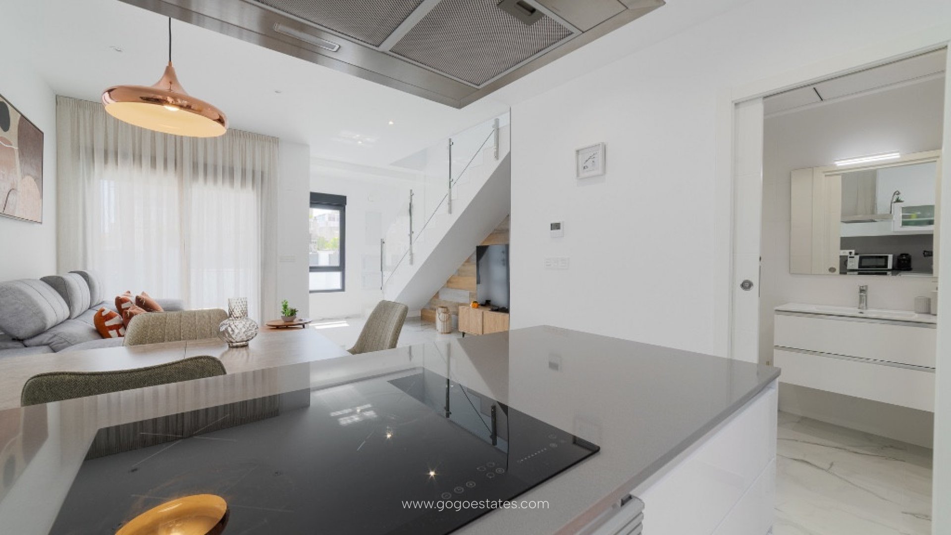 Villa neuve à vendre à Torrevieja. Elle comprend 3 chambres, 3 salles de bains, un spacieux séjour/salle à manger, une cuisine intégrée avec plaques électriques, four et hotte aspirante, ainsi qu'une grande terrasse sur le toit avec vue sur les environs et le lac rose. À l'extérieur, vous disposerez d'une piscine privée, d'un agréable espace détente et d'un parking hors voirie avec pré-installation pour portail motorisé. La villa est construite avec des matériaux de haute qualité et bénéficie d'équipements haut de gamme. Le complexe « El Hondo » est situé à environ 4 km des plages de sable et à quelques pas des commodités environnantes : restaurants, bars, centres commerciaux, supermarchés, banques et bien plus encore. Les aéroports d'Alicante et de San Javier (Costa Blanca) sont à 45 minutes en voiture.