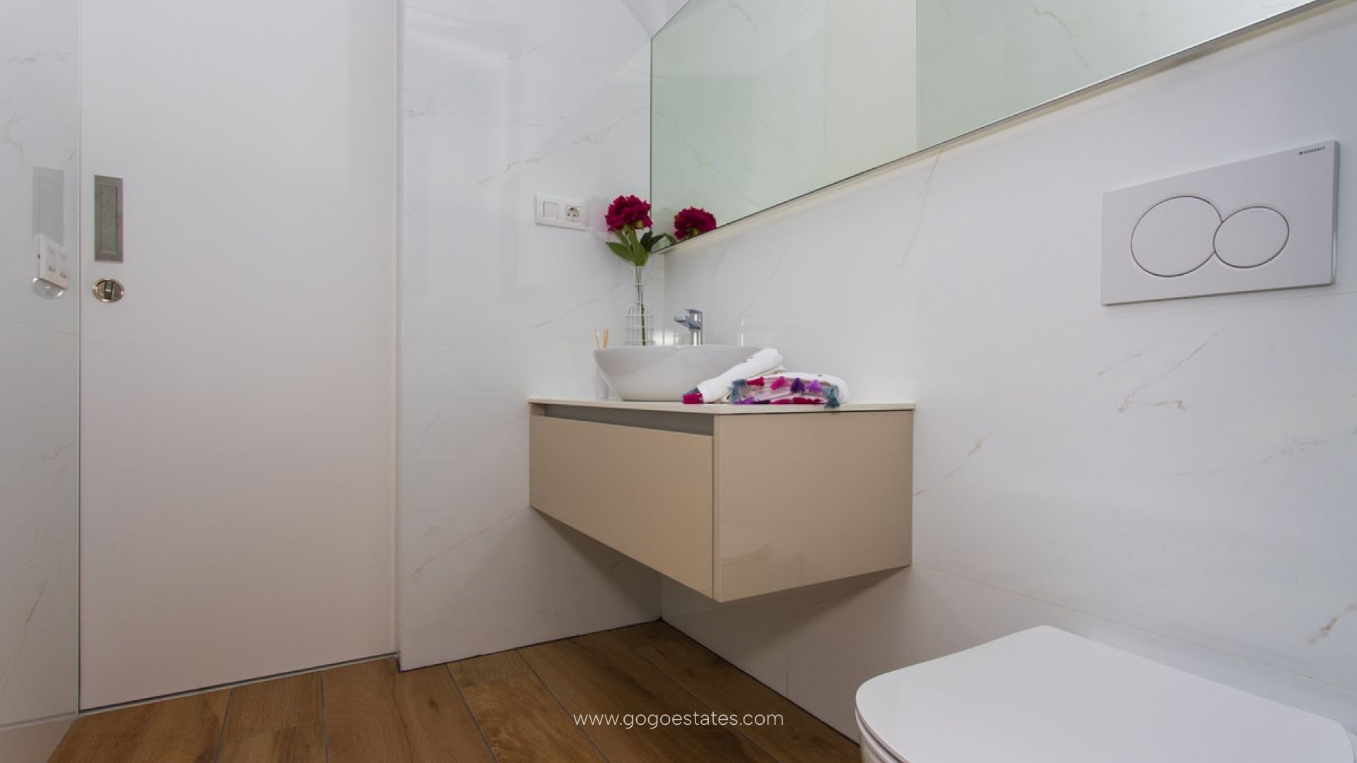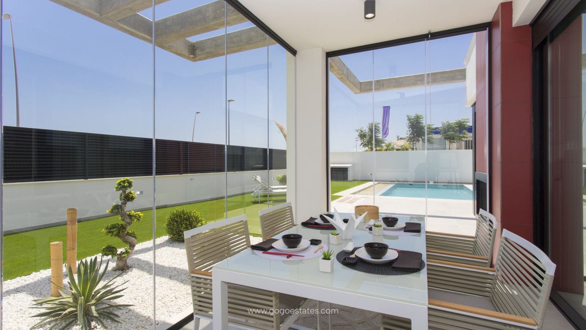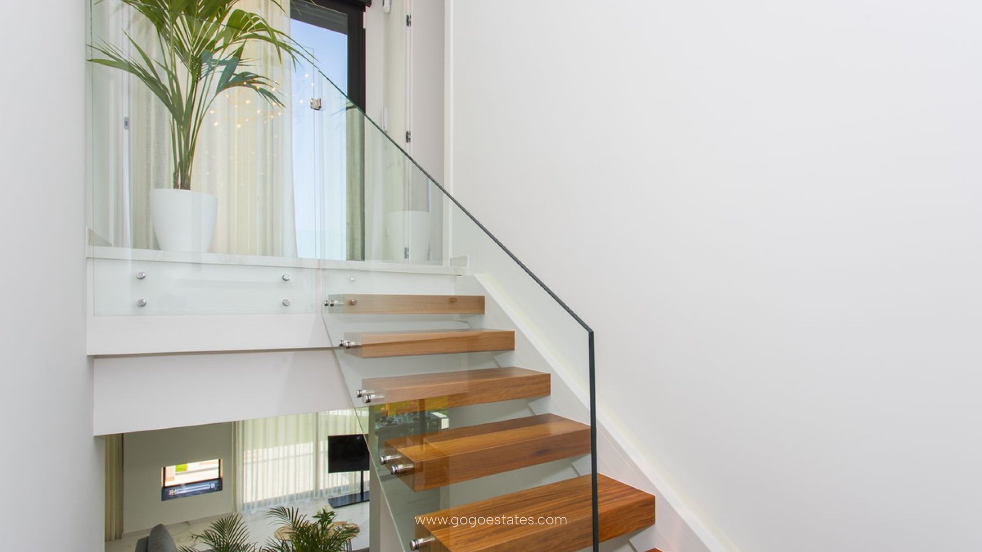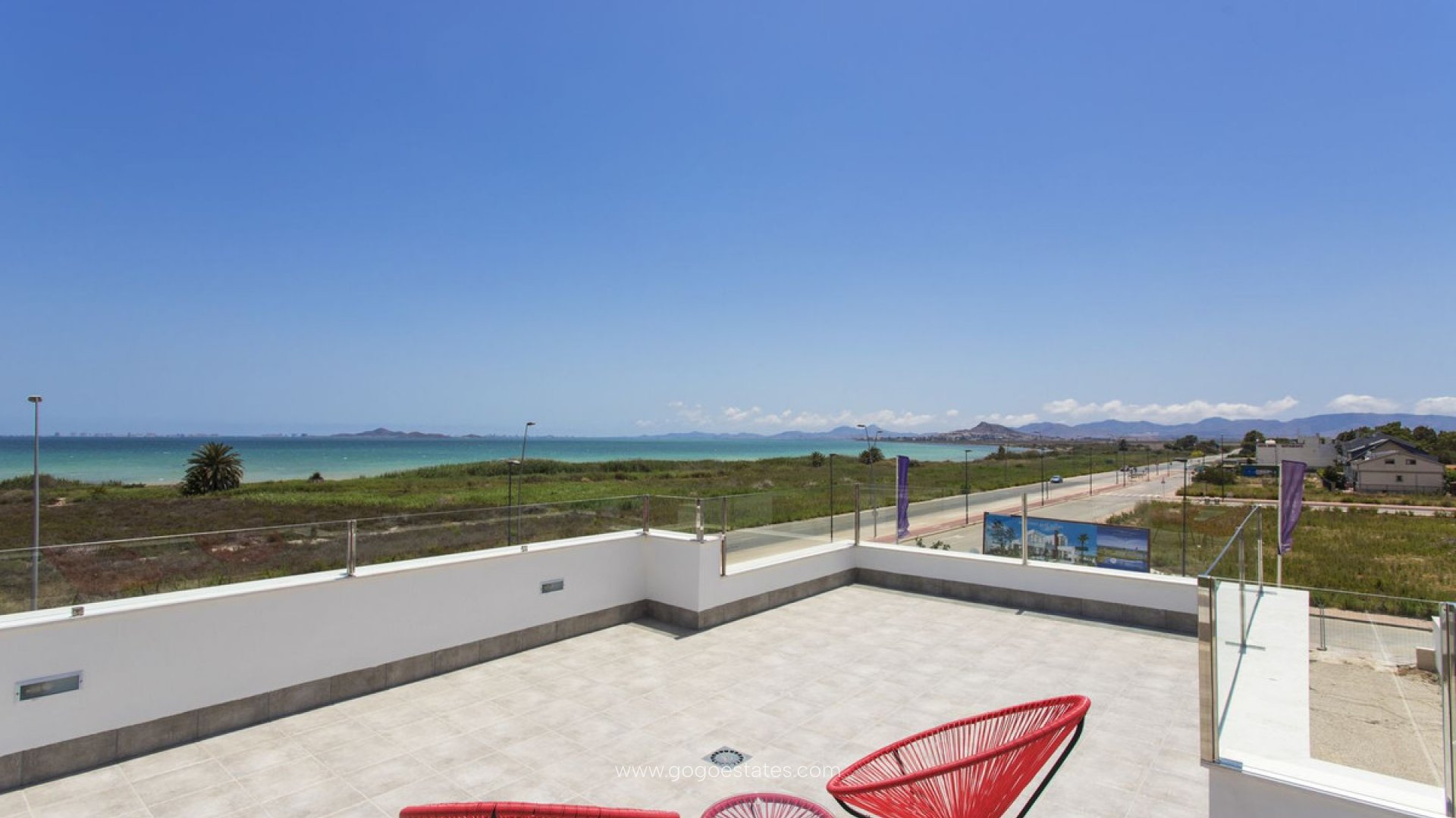Nous sommes ravis de vous présenter cette magnifique villa individuelle à Los Alcazares. Construite en 2018 avec des matériaux de qualité supérieure, cette superbe propriété offre un charme captivant et bénéficie d'un terrain privé de 500 m² sur deux niveaux. Le rez-de-chaussée comprend un spacieux séjour lumineux avec cuisine ouverte, une chambre d'amis avec accès à la piscine et à la terrasse, une terrasse vitrée idéale pour les mois d'hiver, une salle de bain avec douche et un garage avec buanderie. Au premier étage, la chambre principale dispose d'une salle de bain attenante et d'une vue imprenable sur la mer. Une deuxième chambre double, également avec vue sur la mer, s'ouvre sur une grande terrasse. Une salle de bain supplémentaire avec douche se trouve également à ce niveau. La chambre principale bénéficie également d'un accès à un spacieux solarium offrant une vue panoramique imprenable sur la Mar Menor. À l'extérieur, un jardin facile d'entretien avec une superbe piscine et une douche extérieure. La villa est équipée de tout le confort moderne, notamment de volets électriques, d'un système domotique, du chauffage au sol dans les trois salles de bain et d'un portail de garage électrique.