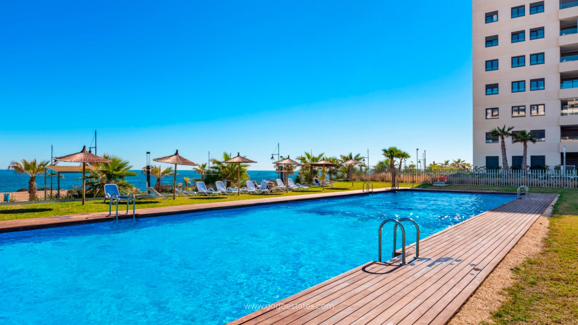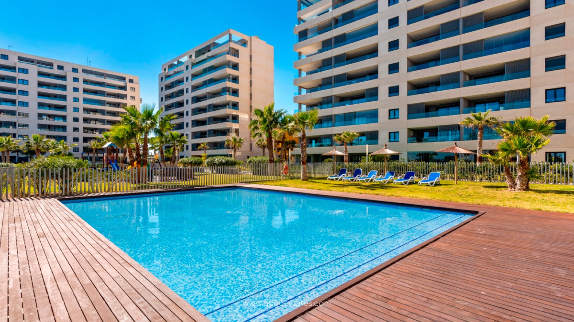 Bienvenue dans cet appartement spacieux et bien conçu de deux chambres et deux salles de bains, situé dans le très recherché Residential Panorama Park, construit en 2020. Offrant un mélange parfait de confort, de style et de commodité, cette maison est idéale pour ceux qui recherchent une retraite côtière moderne. En entrant, vous êtes accueilli par un salon et une salle à manger à aire ouverte, idéaux pour se détendre et se divertir. De grandes portes coulissantes mènent à un vaste balcon orienté au nord, apportant beaucoup de lumière naturelle et offrant une vue imprenable sur la mer. La cuisine est conçue de manière efficace avec des appareils modernes, un grand plan de travail et un accès pratique à la salle à manger, ce qui facilite la préparation et l'accueil des repas. De plus, un deuxième balcon orienté au sud est accessible depuis la cuisine, assurant une atmosphère lumineuse et aérée dans tout l'appartement. La chambre principale sert de retraite privée, avec une salle de bain attenante et un accès direct au grand balcon, parfait pour profiter du café du matin ou des couchers de soleil en soirée. Une deuxième chambre de bonne taille est située à l'extrémité opposée de l'unité, offrant intimité et flexibilité aux invités, aux membres de la famille ou à un bureau à domicile. À côté, une autre salle de bain complète assure commodité et confort. Cette propriété comprend un parking souterrain et un local de rangement privé, ajoutant une praticité supplémentaire à votre expérience de vie. Le complexe Panorama Park dispose de trois piscines, dont une chauffée, offrant un plaisir toute l'année.