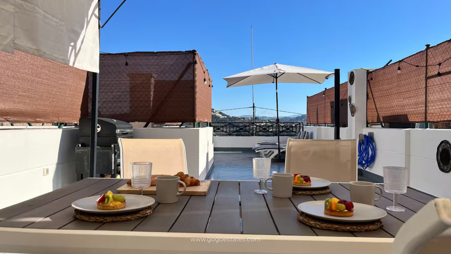 Découvrez ce magnifique penthouse de 71 m², situé dans un emplacement privilégié à Calpe. À seulement quelques minutes de la plage, du vieux centre-ville et à proximité de toutes commodités, cette propriété offre la combinaison parfaite de confort, de style et de vue. Disposition et points forts : Deux chambres avec placards intégrésSalle de bain moderne avec doucheCuisine ouverte qui s'ouvre sur un salon-salle à manger convivialCharmante terrasse idéale pour des moments de détente ou des repas en extérieurAccédez au solarium par un escalier en colimaçon, où vous pourrez profiter du soleil et de l'environnement spectaculaireÉquipements de la résidence : Piscine communautaire, l'endroit parfait pour se détendre et profiter du climat méditerranéenPlace de parking et cellier privés, pour plus de commodité et beaucoup d'espace de rangementLes meubles sont discutables. Vous souhaitez un penthouse avec un très grand solarium, 2 chambres dans un emplacement de choix ? Contactez-nous dès aujourd'hui pour plus d'informations ou pour planifier une visite !