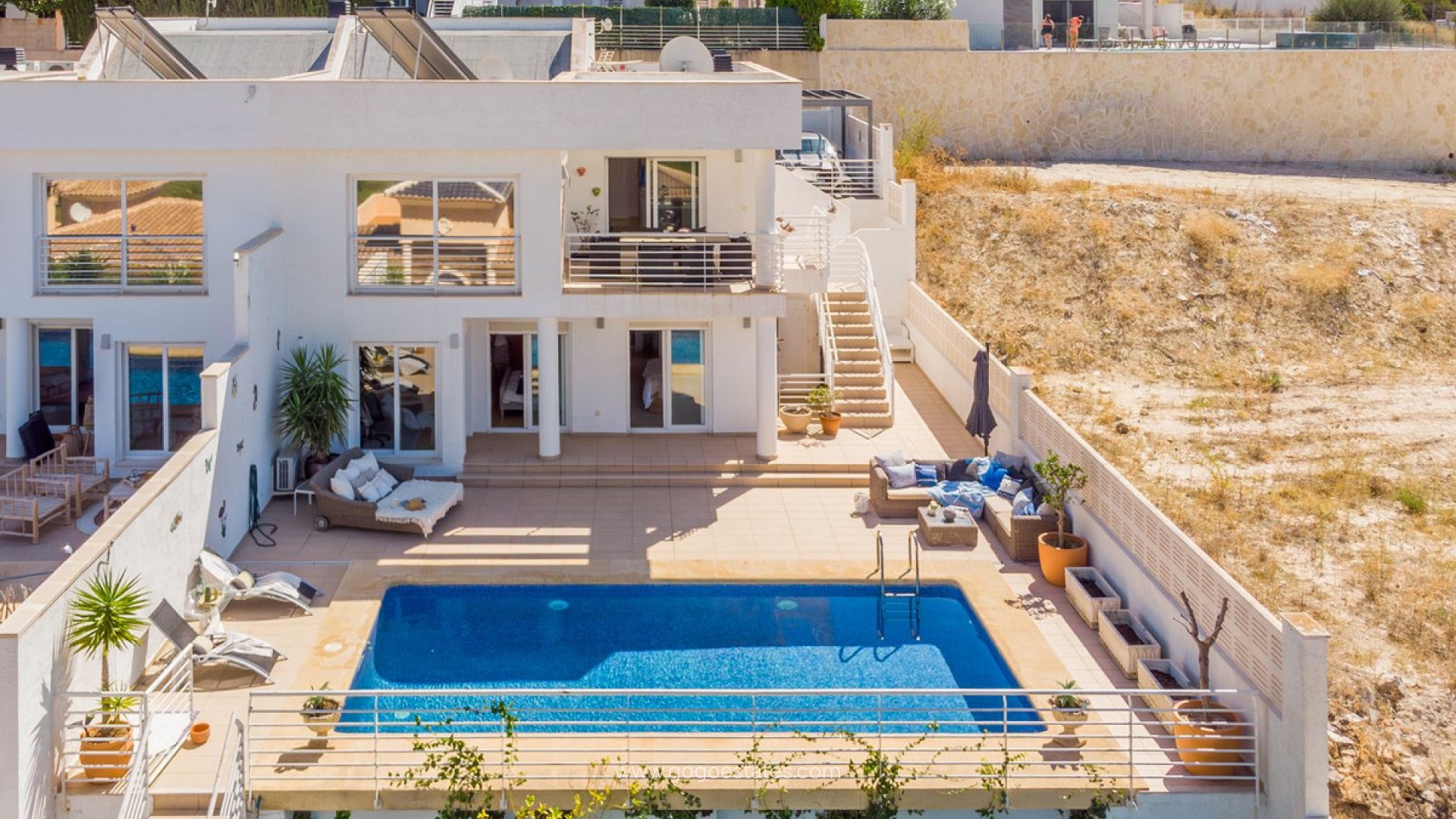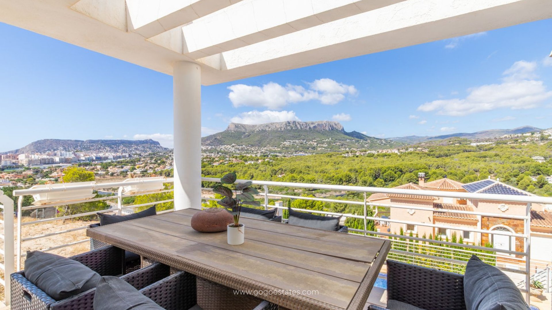 Cette spectaculaire maison mitoyenne moderne à vendre se situe dans la convoitée urbanisation Casanova, l'une des zones résidentielles les plus tranquilles et bien situées de Calpe, au cœur de la Costa Blanca. Avec une superficie construite de 205 m² sur un généreux terrain de 810 m², ce bien offre un équilibre parfait entre design contemporain, confort et emplacement privilégié, idéal tant comme résidence principale que comme seconde maison pour profiter du style de vie méditerranéen. La distribution de la propriété est conçue pour maximiser les vues et la confidentialité. Au rez-de-chaussée, se trouve la lumineuse zone de jour, composée d'un vaste salon-salle à manger avec de grandes fenêtres qui s'ouvrent sur une terrasse couverte avec vues dégagées sur la mer, les montagnes et la skyline de Calpe. La cuisine, indépendante et entièrement équipée, se distingue par sa superficie et sa fonctionnalité, idéale pour les amateurs de cuisine ou ceux qui aiment recevoir des invités. Également à ce niveau, il y a un WC de courtoisie et un carport extérieur avec espace pour deux véhicules, apportant confort et facilité d'accès. Le sous-sol abrite la zone nuit, avec trois chambres extérieures et deux salles de bains complètes, offrant une ambiance plus intime et relaxante. De là, l'accès à la zone extérieure de la maison est direct, où la piscine privée, le jardin, les terrasses ouvertes et les coins chill-out invitent à se détendre au soleil ou à vivre des moments inoubliables en famille ou entre amis. La maison est équipée de la climatisation réversible, de fenêtres à double vitrage, d'une porte de sécurité, d'un débarras et de finitions excellentes. Sa classification énergétique type D et ses émissions C reflètent un engagement envers l'efficacité et le confort. Située à quelques minutes des plages, supermarchés, écoles, restaurants et de tous les services de Calpe, cette propriété réunit toutes les caractéristiques recherchées par ceux qui souhaitent acheter une maison avec piscine et vues sur la Costa Blanca, dans une zone sûre, bien desservie et avec une qualité de vie.