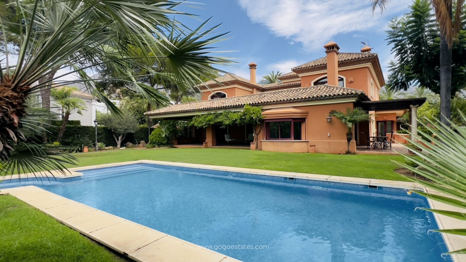 Découvrez cette magnifique villa de style andalou, orientée sud-ouest, située dans le prestigieux complexe résidentiel sécurisé d'Altos Reales, sur le Golden Mile de Marbella. Avec un service de gardiennage 24h/24 et 7j/7 et des caméras de surveillance, ce quartier sécurisé et très recherché se trouve à seulement 1,5 km du cœur de Marbella et à quelques minutes en voiture de certains des plus beaux parcours de golf de la région.~~Conçue et construite avec le plus grand soin par ses propriétaires actuels il y a 24 ans, cette propriété impeccable a été entretenue avec soin et offre un mélange unique de charme traditionnel et de confort moderne.~~Dès l'entrée, vous serez accueilli par un hall d'entrée majestueux avec une belle hauteur sous plafond, menant directement à un salon spacieux et lumineux doté d'une cheminée chaleureuse. Le salon s'ouvre harmonieusement sur une terrasse donnant sur un jardin magnifiquement entretenu et une piscine privée, idéale pour se détendre et recevoir.~~À côté du salon, vous trouverez une salle à manger formelle reliée à un salon TV et une cuisine entièrement équipée. La cuisine est neuve, équipée d'électroménagers intégrés, d'un plan de travail en granit, d'un cellier, d'un coin repas et d'une buanderie. Elle donne directement sur une véranda arrière avec barbecue intégré et coin repas extérieur. L'aile droite du hall d'entrée comprend des toilettes invités, un bureau avec coffre-fort, ainsi qu'une luxueuse suite parentale avec parquet, dressing et salle de bain ornée d'un vitrail.~~L'étage, accessible par un élégant escalier en marbre, comprend une bibliothèque paisible et quatre chambres supplémentaires. Trois d'entre elles disposent de salles de douche attenantes, de placards intégrés et de terrasses privées offrant une vue imprenable sur les montagnes de La Concha. La quatrième chambre dispose d'un dressing et d'une luxueuse salle de bain équipée d'un jacuzzi et d'une cabine de douche, avec accès à une terrasse commune exposée sud avec vue sur la mer de Marbella, qui communique avec la bibliothèque.~~La propriété dispose également d'un spacieux demi-sous-sol offrant de nombreux rangements et espaces de divertissement. Elle comprend une pièce chaleureuse avec cheminée, un bar et une cave à vin, un vestiaire, une salle de sport, une salle des machines et un espace de rangement supplémentaire, pouvant être aménagé en logement indépendant ou en logement pour le personnel.~~Cette villa est dotée d'équipements haut de gamme tels que le chauffage au sol avec réglage individuel, des menuiseries extérieures en aluminium à double vitrage, des menuiseries intérieures en chêne, la climatisation avec pompe à chaleur, un sol en marbre, des stores électriques, un système d'alarme intérieur et extérieur, un réservoir d'eau de 40 000 litres, un adoucisseur d'eau, un garage double, un abri pour deux voitures supplémentaires et un jardin soigneusement entretenu et bien arboré avec une grande piscine.~~Cette villa à Altos Reales est un parfait exemple du style de vie luxueux qu'offre Marbella. Contactez-nous dès aujourd'hui pour planifier une visite et découvrir cette magnifique demeure.~