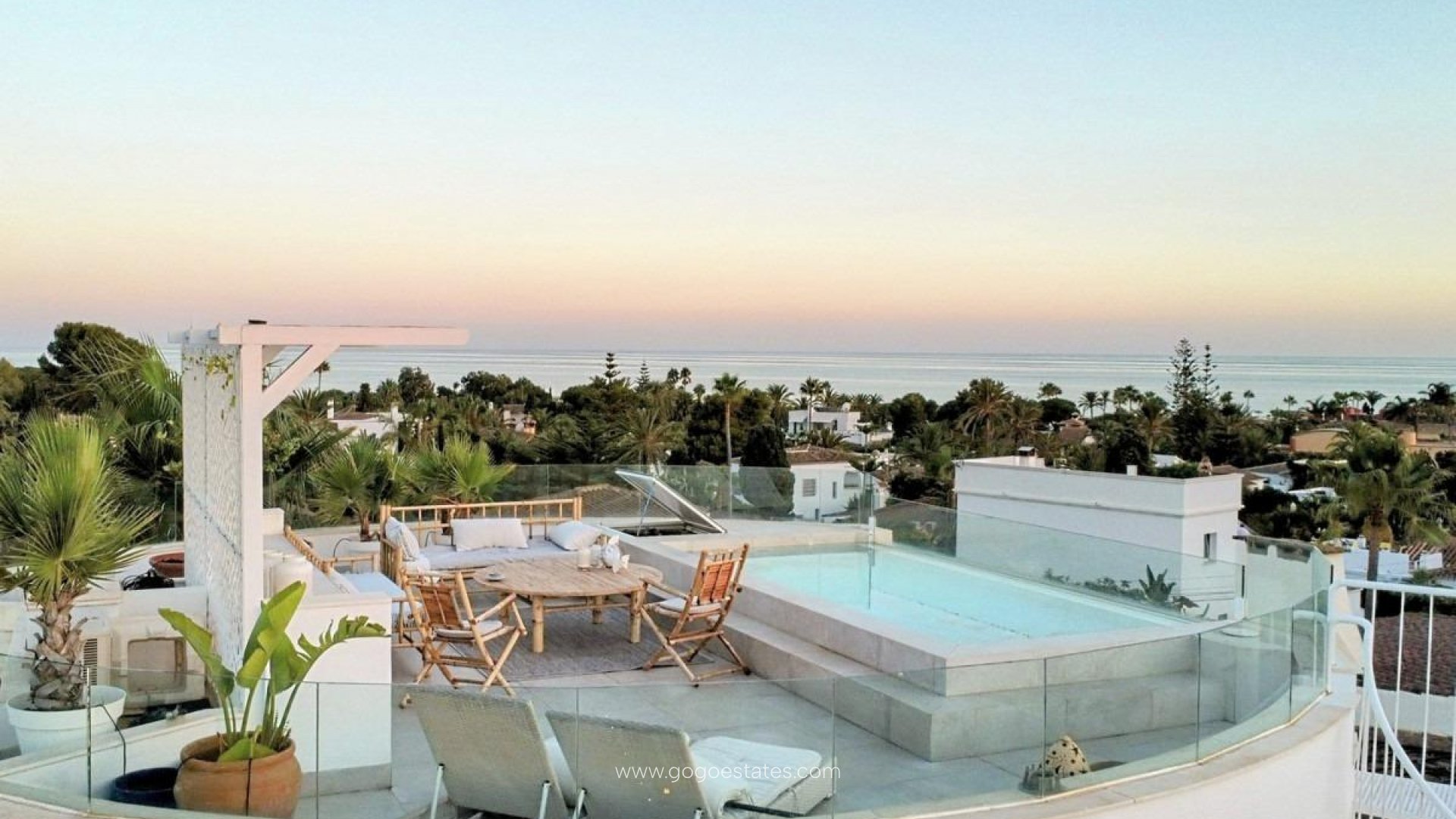 Située dans l’urbanisation prestigieuse et paisible de Marbesa, cette villa contemporaine exceptionnelle combine à la perfection luxe, confort et style de vie côtier. À seulement 400 mètres des plages dorées de la Méditerranée, la propriété bénéficie d’un emplacement idéal à proximité des dunes protégées de Cabopino et des célèbres complexes Marriott, Don Carlos et Nikki Beach.~~Construite récemment selon les normes les plus élevées, la villa comprend 3 grandes chambres et 2 salles de bains modernes. Le salon spacieux avec cuisine ouverte offre une vue panoramique sur la mer. De grandes baies vitrées inondent l’espace de lumière naturelle et assurent une transition fluide entre l’intérieur et l’extérieur.~~Le joyau de la propriété est la terrasse sur le toit avec piscine privée chauffée, offrant une vue dégagée sur la côte, Gibraltar et l’Afrique. Un lieu idéal pour se détendre ou recevoir. Le rez-de-chaussée s’ouvre sur un jardin paysager avec piscine à débordement chauffée, avec deux chambres et deux salles de bains à ce niveau.~~La troisième chambre se trouve au sous-sol, ainsi qu’un garage sécurisé avec porte automatique. Toutes les chambres disposent de volets électriques, climatisation, chauffage et installations électriques modernes pour un confort optimal toute l’année.~~Sur un terrain de 400 m², la villa offre une surface construite totale de 309 m², dont 167 m² habitables, 109 m² de terrasses et 33 m² de piscines. Conçue pour être facile à entretenir, la propriété garantit un mode de vie sans souci.~~Que ce soit pour une résidence familiale ou un investissement locatif, cette villa dispose d’une licence touristique et d’un excellent historique de location saisonnière, ce qui en fait une opportunité rare sur la côte de Marbella.~