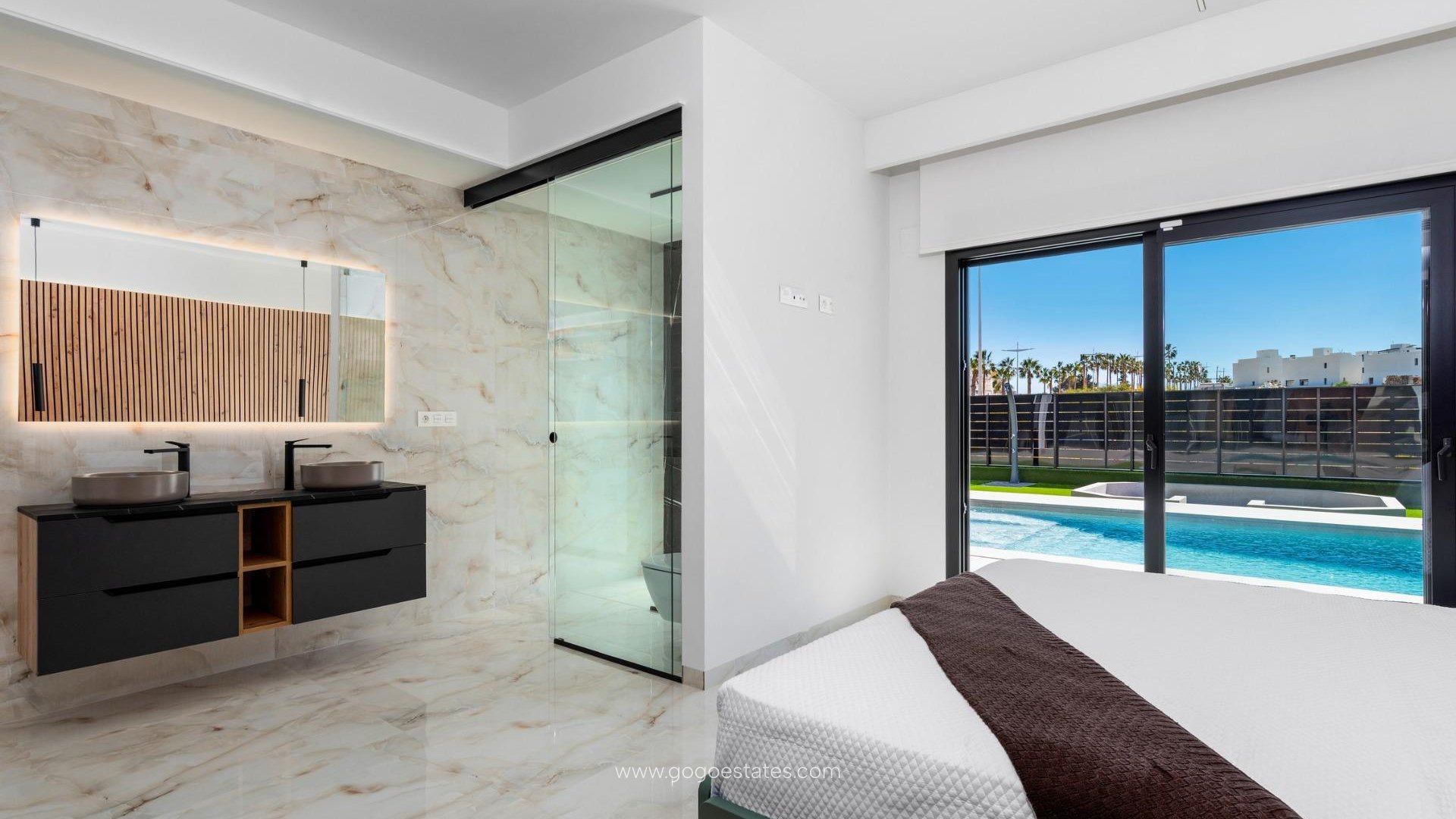 Villas de luxe neuves à La Finca Golf, Algorfa Villas exclusives de plain-pied à côté du Golf La Finca, sur la Costa Blanca Sud Découvrez ce projet résidentiel exclusif de 11 villas indépendantes situées dans le prestigieux complexe La Finca Golf Resort à Algorfa, l'une des zones les plus prisées de la Vega Baja, sur la Costa Blanca Sud. Entouré de paysages verdoyants, de vergers d'agrumes et de fairways vallonnés, cet emplacement offre tranquillité, intimité et un style de vie méditerranéen de grande qualité, tout en restant proche de tous les services essentiels et des attractions côtières. Villas modernes de plain-pied avec piscine privée et solarium Chaque villa est soigneusement conçue sur un seul niveau, offrant confort et fonctionnalité dans toutes les pièces. Les propriétés comprennent 3 chambres spacieuses et 2 salles de bains modernes, une cuisine américaine ouverte et un salon/salle à manger lumineux avec de grandes fenêtres qui s'ouvrent directement sur la terrasse et le jardin privé. À l'extérieur, chaque villa dispose d'une piscine privée, d'une place de parking dans la propriété et d'un impressionnant solarium privé de 150 m², idéal pour profiter du soleil toute l'année. Pour les acheteurs qui souhaitent disposer de plus d'espace, il est possible d'ajouter un sous-sol ou une quatrième chambre à l'étage supérieur, moyennant un coût supplémentaire, ce qui vous permet d'adapter la maison à vos besoins personnels. Spécifications de haute qualité et finitions élégantes Ces villas sont construites avec des matériaux et des finitions haut de gamme pour garantir confort, efficacité et style moderne. Elles comprennent notamment une porte d'entrée renforcée, des volets motorisés, des cuisines entièrement équipées avec des appareils électroménagers et des salles de bains complètes avec meubles, miroirs et parois de douche. Le solarium sur le toit est livré avec une cuisine d'été et une pergola, créant ainsi le cadre idéal pour les repas en plein air et la détente. Un ensemble d'éclairage LED intérieur et extérieur est également inclus, améliorant à la fois le design et l'ambiance. Emplacement privilégié dans le complexe La Finca Golf Resort La Finca Golf Resort est réputé pour son parcours de golf de championnat, son hôtel de luxe, ses installations de spa, ses restaurants et ses zones sportives, le tout dans un environnement sécurisé et bien entretenu. Algorfa est un charmant village espagnol offrant une atmosphère détendue, des magasins locaux et des restaurants traditionnels, tandis que les villes voisines offrent un éventail plus large de services. Distances clés Club de golf La Finca : sur place Plages de Guardamar del Segura : 15 km Centres commerciaux de Torrevieja et Orihuela Costa : 15 km Almoradi, Benijofar et Ciudad Quesada : 5 à 10 km Aéroport international d'Alicante : 35 km Mode de vie méditerranéen et investissement intelligent Avec plus de 300 jours de soleil par an, d'excellentes liaisons routières et la proximité des plages, des terrains de golf et des zones commerciales, ces villas sont idéales comme résidence permanente, maison de vacances ou opportunité d'investissement sur la Costa Blanca. Réservez dès aujourd'hui votre nouvelle villa à La Finca Golf Ne manquez pas l'occasion de devenir propriétaire d'une villa moderne dans l'un des complexes de golf les plus exclusifs d'Algorfa. Contactez-nous dès aujourd'hui pour obtenir plus d'informations ou organiser une visite privée.
