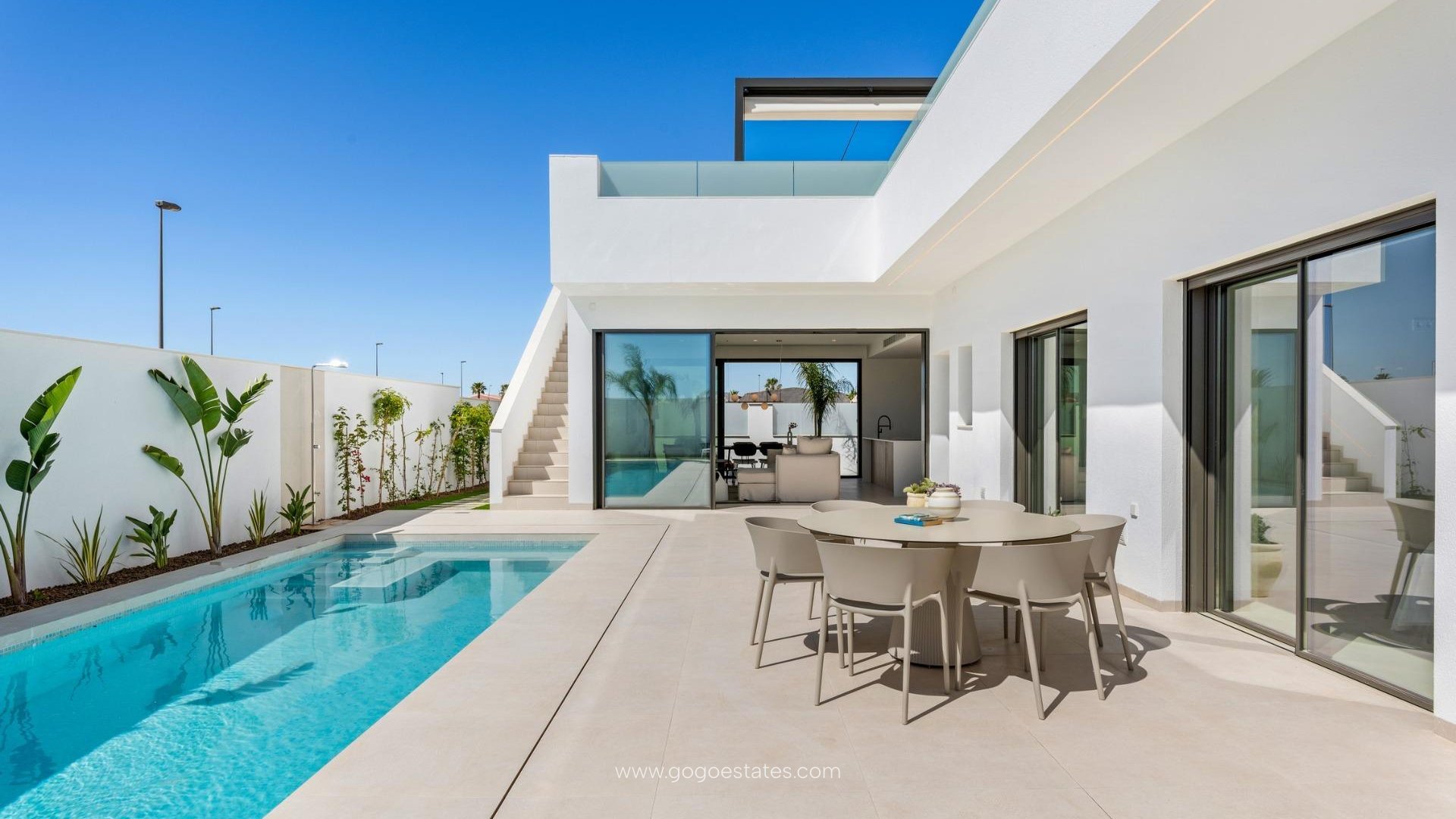 VILLAS NEUVES À SAN JAVIER Résidence neuve de villas à San Javier, à 2,5 km de la plage. Villas construites sur un seul étage et composées de 3 chambres, 2 salles de bains et 1 WC, cuisine américaine, salon avec vue dégagée sur la terrasse, jardin privé avec piscine et solarium. Cuisine entièrement équipée en blanc brillant ou en bois, comprenant une plaque à induction avec hotte intégrée, un four, un micro-ondes, un lave-linge, un réfrigérateur intégré et un lave-vaisselle intégré. Installation complète de climatisation par conduits. La piscine est pré-équipée pour une pompe à chaleur. San Javier est proche de toutes les commodités et offre un accès facile à la plage, aux sports nautiques, aux commerces et au réseau de transport. Vous pourrez profiter de toutes les installations que San Javier a à offrir, telles que les magasins locaux, les bars et les restaurants, tout en étant à proximité des centres commerciaux, de l'aéroport de Murcie et de tous les beaux endroits qui se trouvent le long de la Mar Menor. L'aéroport de Corvera/Murcie est à 30 minutes et l'aéroport d'Alicante à 45 minutes.