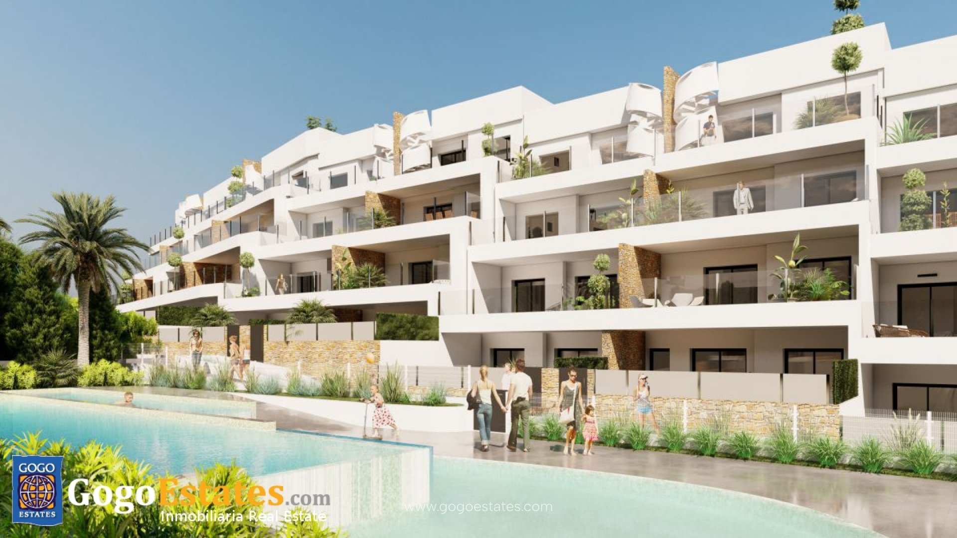 Le complexe est fermé et se compose de 62 maisons, chacune avec 2 chambres et 2 salles de bains. Les espaces communs comprennent un parc de jeux pour enfants et une piscine avec jacuzzi. Les rez-de-chaussée ont des jardins tandis que les propriétés des 1er et 2ème étages ont de grandes terrasses et les penthouses de grands solariums privés face au soleil de midi.En quelques minutes à pied, nous pouvons trouver toutes sortes de services tels que bars, restaurants et toutes sortes de magasins. Ce complexe résidentiel situé à proximité d'Orihuela Costa, plus précisément dans la zone autour de Villamartin, une zone privilégiée entourée de trois magnifiques terrains de golf (Villamartin, Las Ramblas et Campoamor), un environnement extraordinaire pour profiter du soleil et de la vie en Espagne et à seulement cinq minutes des meilleures plages d'Orihuela Costas. Les propriétés ont été construites selon les normes de qualité les plus élevées, avec la climatisation intégrée, le chauffage au sol et des écrans dans les salles de bains. Toutes les maisons ont des places de parking et une salle de stockage. Les espaces communs disposent d'un espace piscine pour adultes et enfants, et d'un jacuzzi. De vastes jardins avec des palmiers et une grande variété de plantes font de ce complexe résidentiel un excellent environnement à la fois comme résidence permanente et pour les vacances. 965641095 - info@gogoestates.com