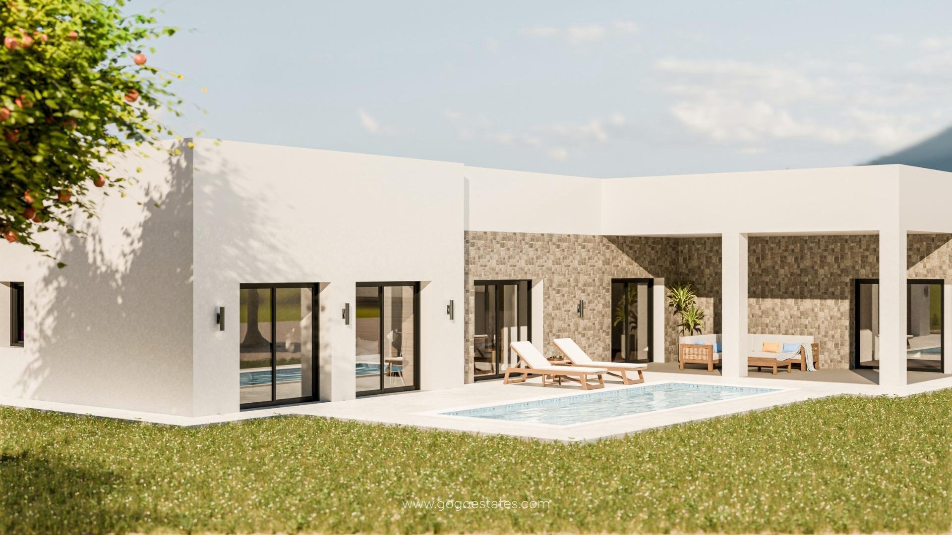 VILLAS NEUVES A PINOSO Nouvelle construction Villas indépendantes et modernes qui peuvent être construites sur des terrains rustiques ou urbains, nous avons une large gamme disponible dans la région de Pinoso : - 3 chambres, 2 salles de bains, 2 toilettes pour les invités - Piscine privée - Installation complète de l'air conditionné - Cuisine entièrement équipée - Grand choix de matériaux de qualité - Electricité et eau courante - 4 panneaux solaires inclus - Label énergétique AA - Terrain de 15.658 m² à Pinoso - Terrain clôturé de 3.000 m² pour un entretien facile - Portail coulissant motorisé Sur les parcelles rustiques, environ 3.000 m2 du terrain total seront clôturés et les maisons seront livrées avec environ 1.000 m2 de gravier autour de la maison. La maison dispose d'une piscine privée et de panneaux solaires photovoltaïques pour l'alimentation en électricité. Il y a plusieurs terrains rustiques à choisir dans différents endroits, chacun avec un prix différent (dans les prix publiés dans cette annonce, un terrain d'une valeur de 40.000 eur a été considéré, si l'acheteur choisit un autre terrain, le prix final sera recalculé en conséquence). Le délai de livraison est de 8 mois à compter de l'octroi du permis de construire. Il est acquis sous le régime de l'autopromotion : l'acheteur verse des acomptes sur le prix au fur et à mesure de l'exécution des travaux par le constructeur.