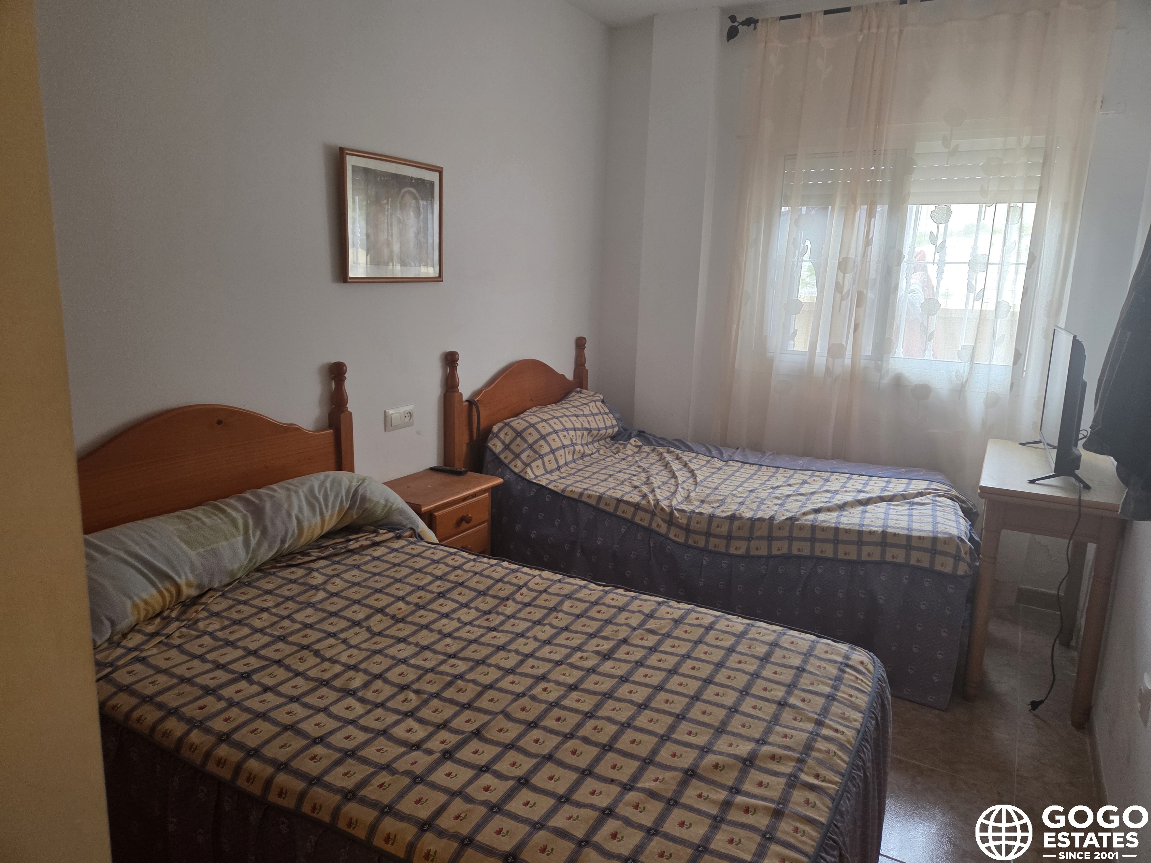 Cet appartement charmant au rez-de-chaussée est situé à seulement 30 mètres de la plage paisible de Pozo del Esparto, une zone protégée saisonnièrement. Il comprend deux chambres, une salle de bain, une buanderie, un cellier et un espace de vie ouvert avec cuisine. De plus, il dispose d'une terrasse, d'un balcon et d'un petit jardin, ce qui le rend parfait pour les vacances comme pour la vie quotidienne.