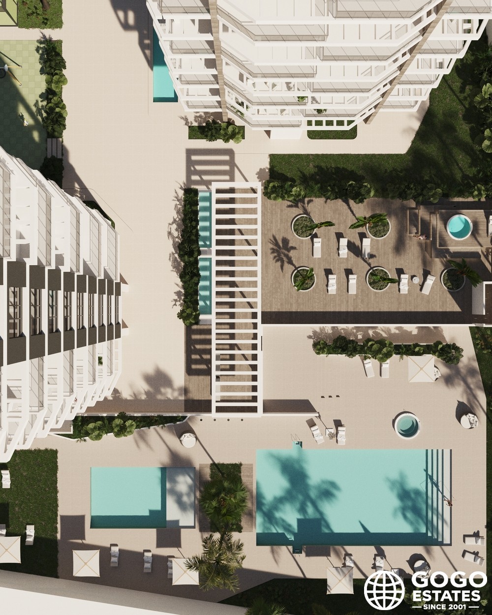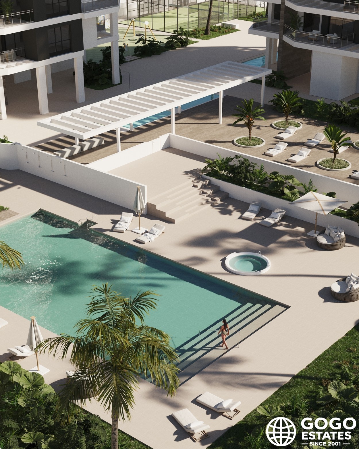 Les résidences sont conçues pour offrir un maximum de confort et de fonctionnalité. Les appartements disposent de 2 chambres et de 2 salles de bains. Les intérieurs sont équipés de placards intégrés, de sols en grès cérame et d'un système de domotique qui facilite le contrôle de diverses fonctions domestiques.