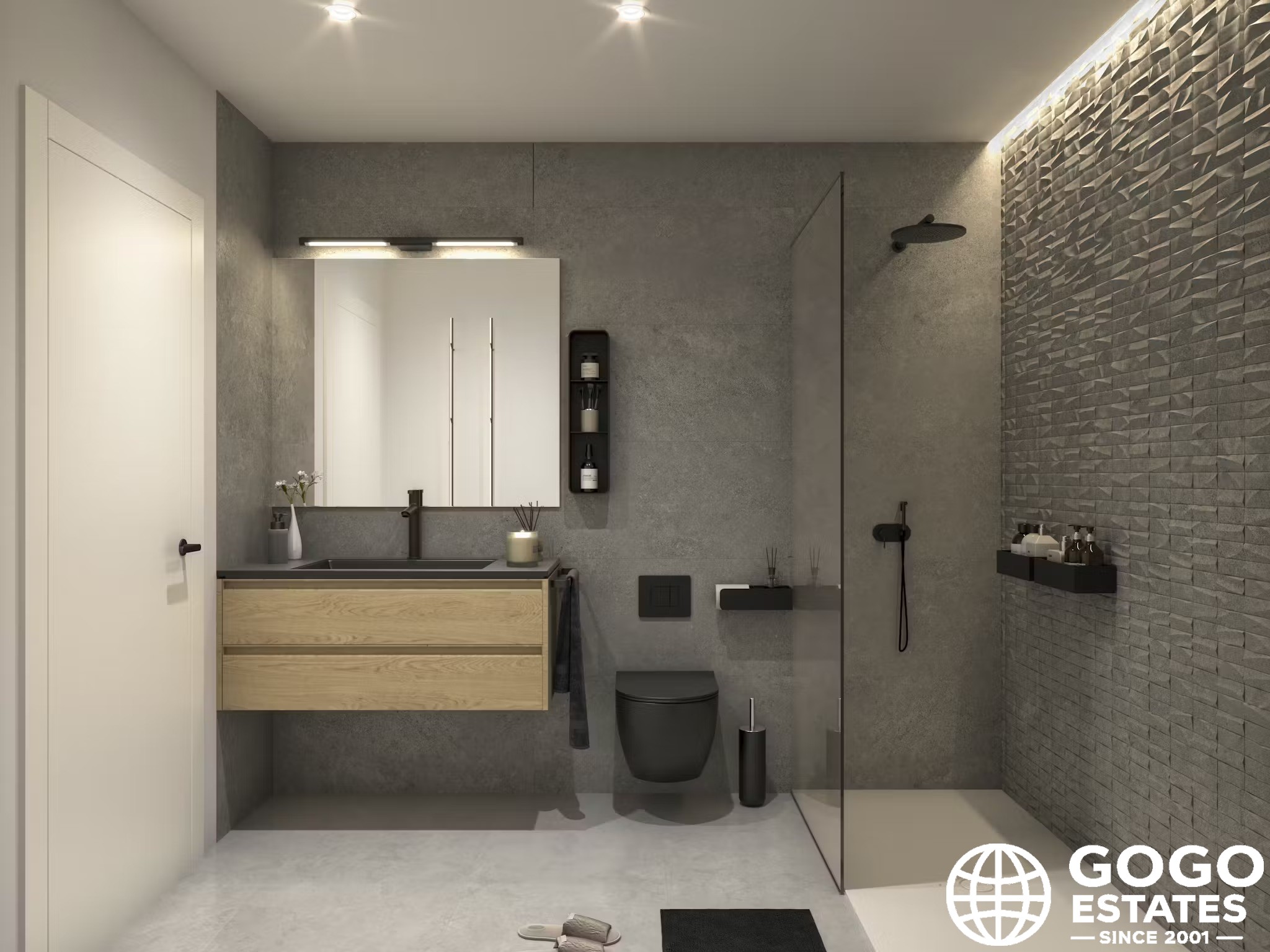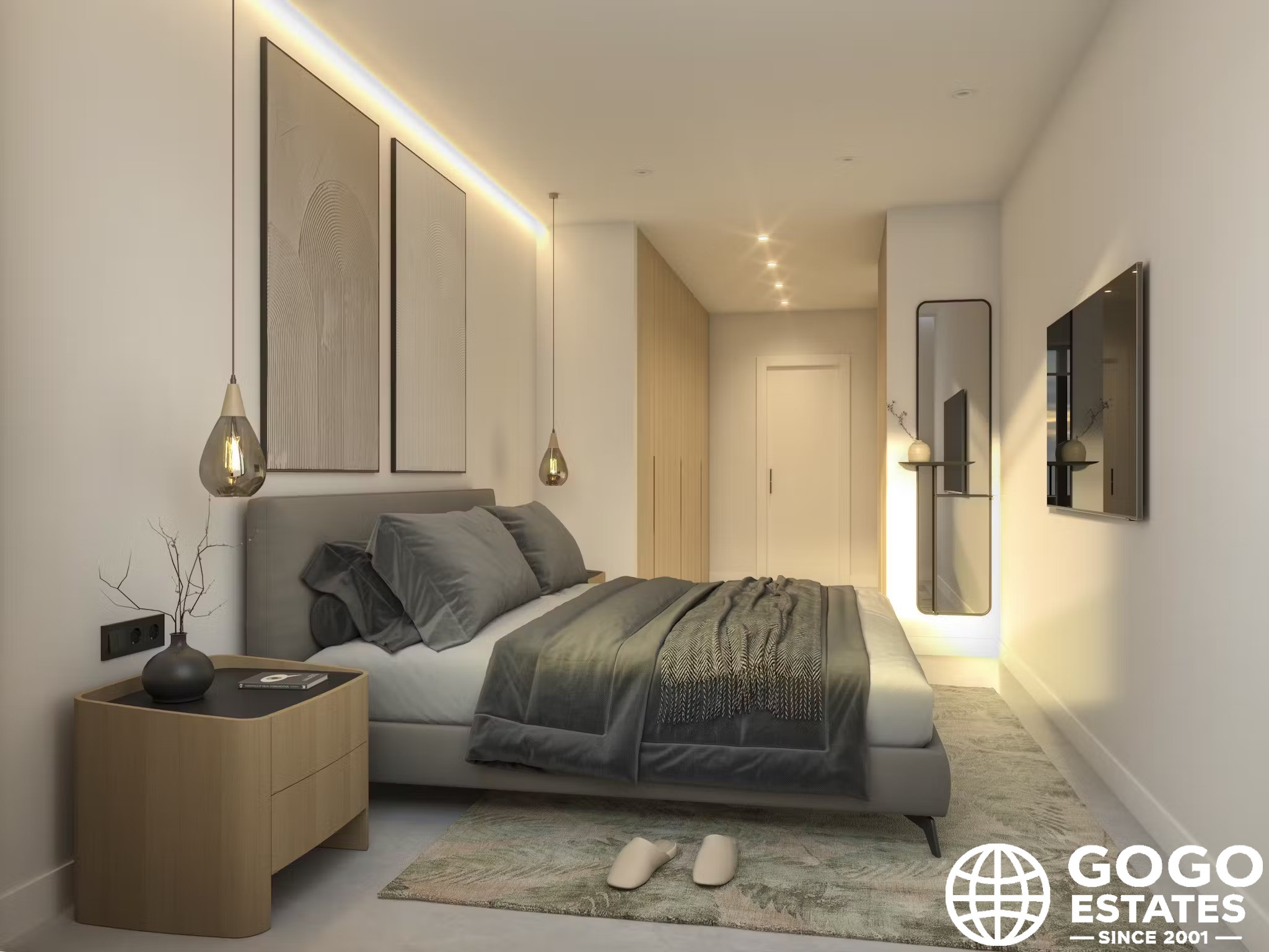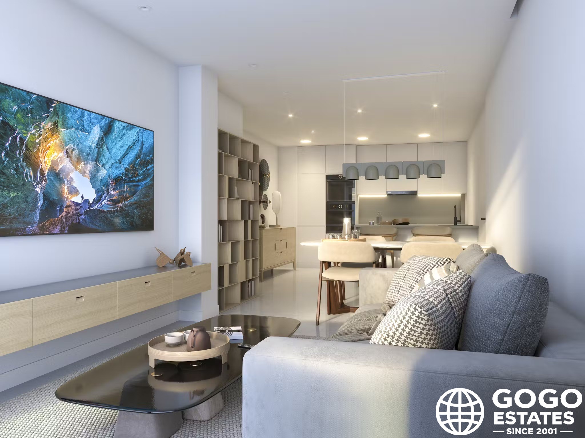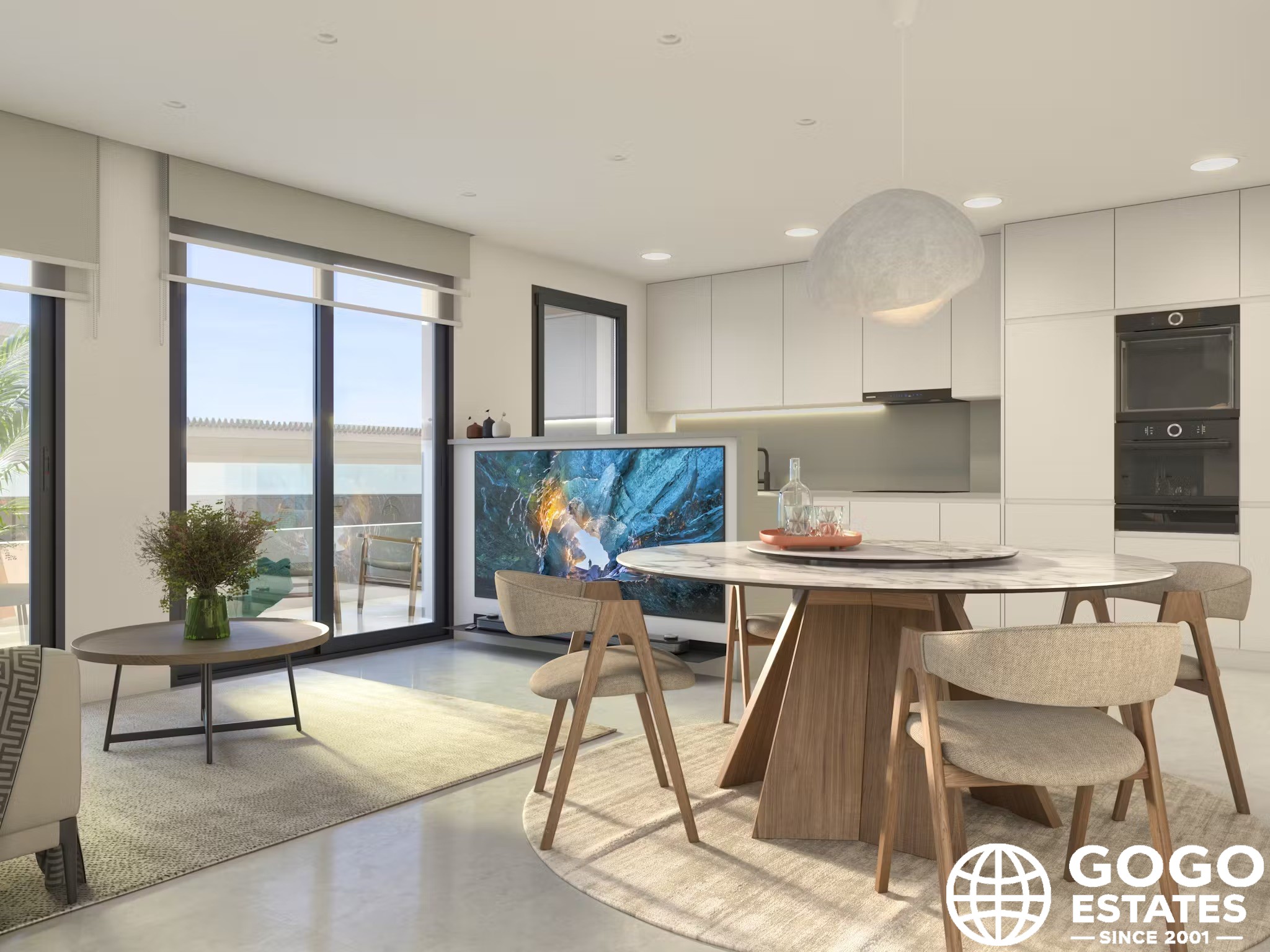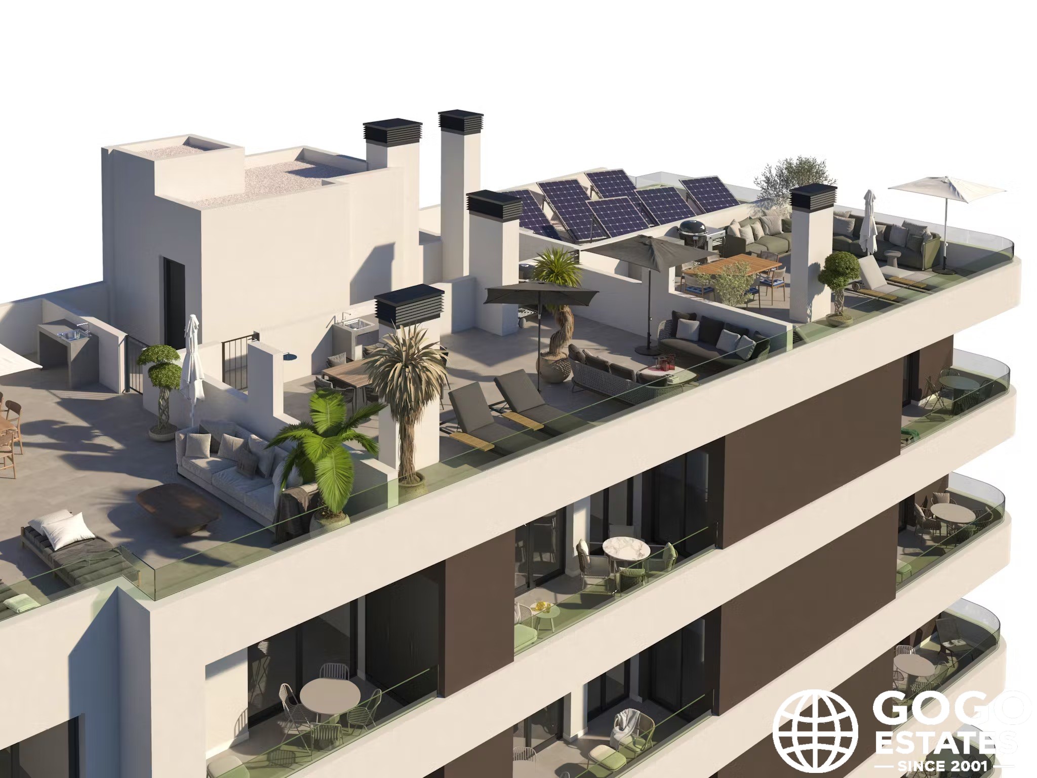 Les propriétés, comprenant des appartements et des penthouses, sont conçues avec un accent sur la qualité et le confort. Chaque unité dispose de sols en carrelage en porcelaine, offrant durabilité et une finition élégante. L'agencement comprend deux chambres et deux salles de bains, offrant un espace adéquat pour les familles ou les couples. Les cuisines sont équipées d'appareils modernes, et la pré-installation de la climatisation garantit un environnement confortable tout au long de l'année. De plus, les terrasses privées sont un espace idéal pour profiter de moments tranquilles en plein air.