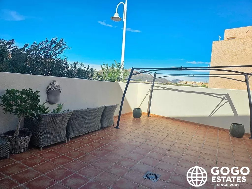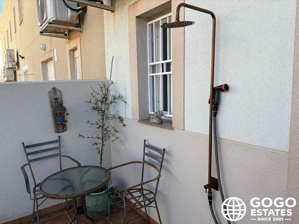 Découvrez votre maison de rêve au cœur de Pozo del Esparto avec cet impressionnant appartement moderne en rez-de-chaussée, à quelques pas de la plage. Cette résidence accueillante dispose de trois chambres spacieuses, dont une luxueuse suite parentale, ainsi qu'une salle de bain supplémentaire bien aménagée pour les invités. La propriété bénéficie d'une charmante terrasse avant, idéale pour déguster un café matinal, et d'une généreuse terrasse arrière équipée d'une douche extérieure, parfaite pour se rincer après une journée à la plage. La cuisine contemporaine de l'appartement est conçue pour allier fonctionnalité et style, agrémentée d'une multitude de fenêtres qui inondent l'espace de lumière naturelle. Située à quelques mètres des plages de sable, cette propriété offre le mode de vie côtier ultime. Pour ceux qui apprécient les promenades tranquilles, la pittoresque plage de San Juan de los Terreros est accessible à pied, offrant un cadre parfait pour vos aventures quotidiennes. Avec une variété de commodités à proximité, y compris des restaurants et des boutiques, et les charmantes villes de Vera et Águilas à quelques minutes en voiture, vous aurez tout ce dont vous avez besoin à portée de main. Cet appartement moderne à Pozo del Esparto n'est pas seulement une maison ; c'est un choix de style de vie qui embrasse la beauté de la vie côtière. Si vous êtes prêt à découvrir cette merveilleuse propriété par vous-même, n'hésitez pas à nous contacter chez GoGo Estates. Ronald Goosen et notre équipe dévouée sont là pour vous accompagner à chaque étape. Contactez-nous dès aujourd'hui pour organiser une visite et faire le premier pas vers votre nouvelle vie dans la magnifique Costa Cálida. Vous pouvez nous joindre au +34 615 28 21 51 ou par email à ronald@gogoestates.es. Nous avons hâte d'avoir de vos nouvelles !