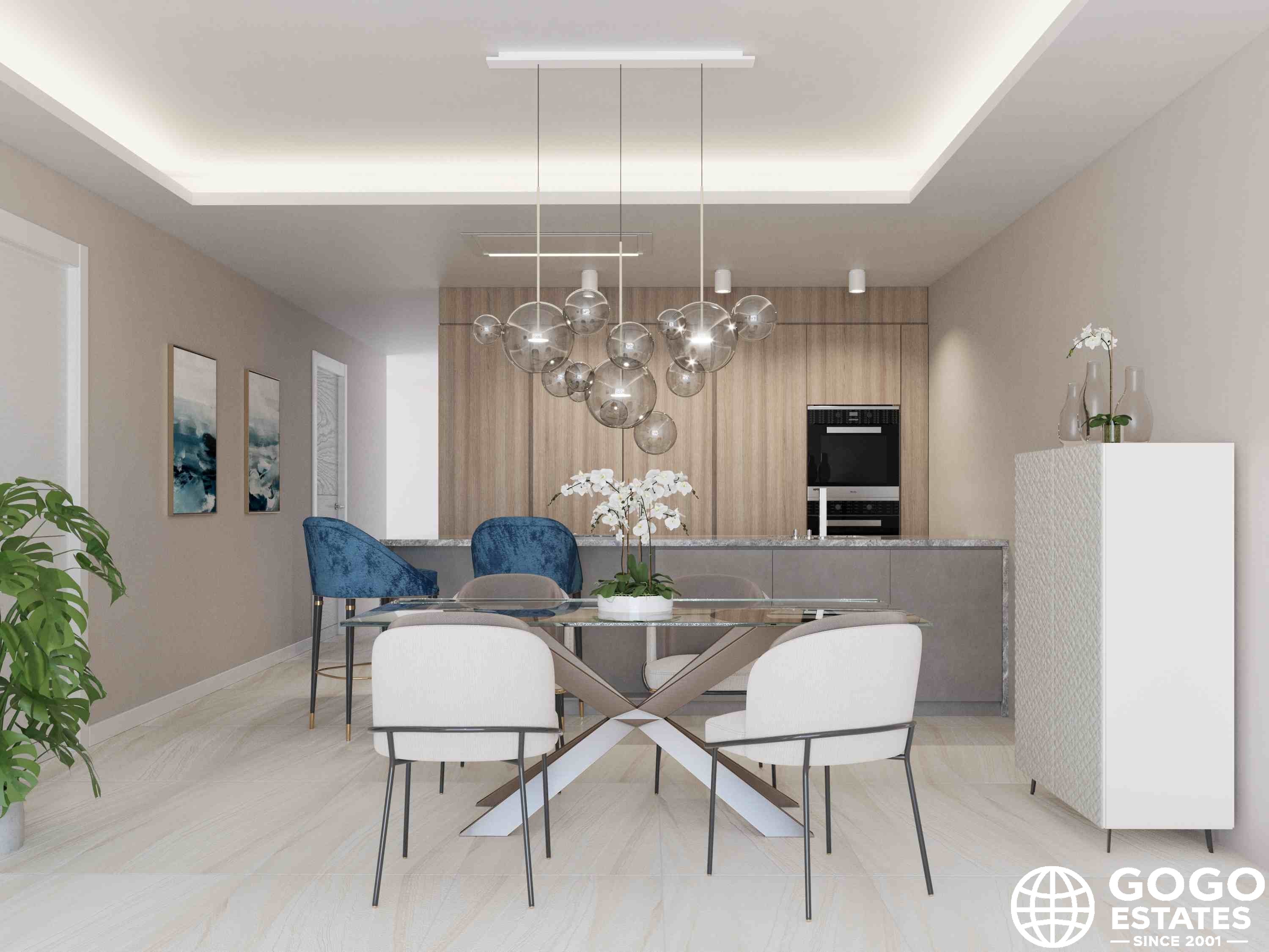 L'appartement dispose de trois chambres et de deux salles de bains, ce qui le rend idéal pour les familles ou ceux qui recherchent un espace supplémentaire. Les sols en carrelage en porcelaine ajoutent une touche moderne, et il comprend des appareils électroménagers et un chauffage par le sol. Les placards intégrés offrent un rangement efficace, et la pré-installation de la climatisation garantit le confort.