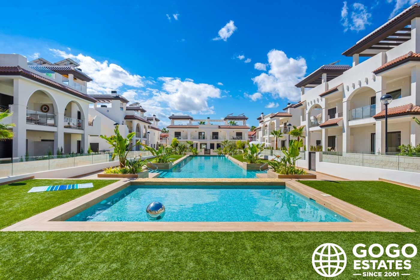 Les espaces communs comprennent des jardins bien entretenus et une piscine commune, parfaits pour socialiser et profiter du climat chaud.