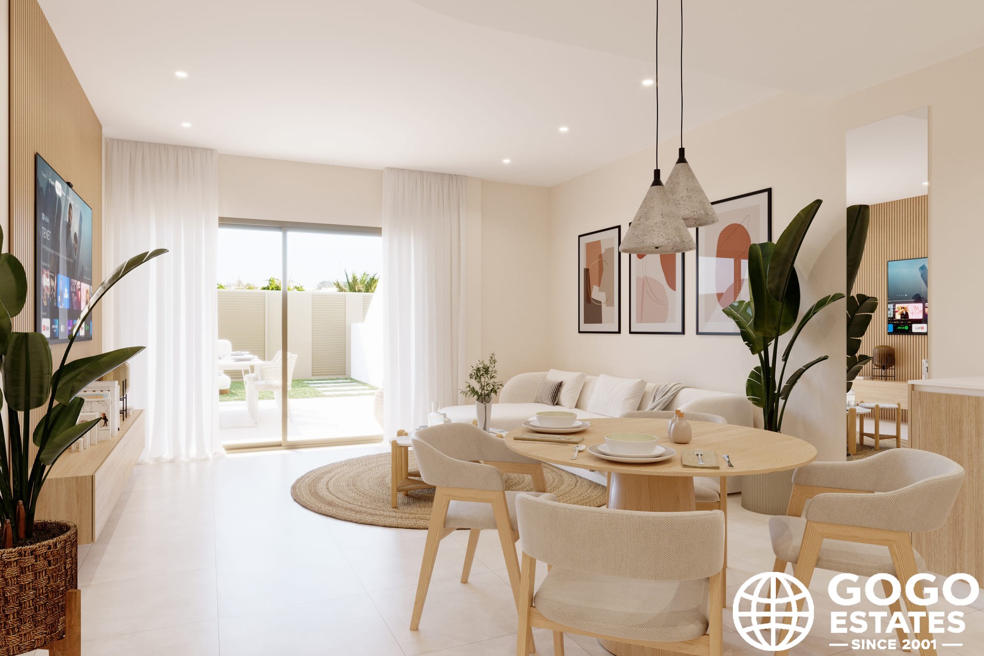 L'intérieur des bungalows est soigneusement conçu pour offrir confort et fonctionnalité. Avec 3 chambres et 2 salles de bains, chaque espace est optimisé pour un usage quotidien. Les sols en carrelage en porcelaine ajoutent une touche moderne et sont faciles à entretenir. Le confort est garanti grâce à l'installation de la climatisation et des volets électriques. Les placards intégrés offrent un espace de rangement généreux, tandis que les appareils inclus facilitent la vie quotidienne.