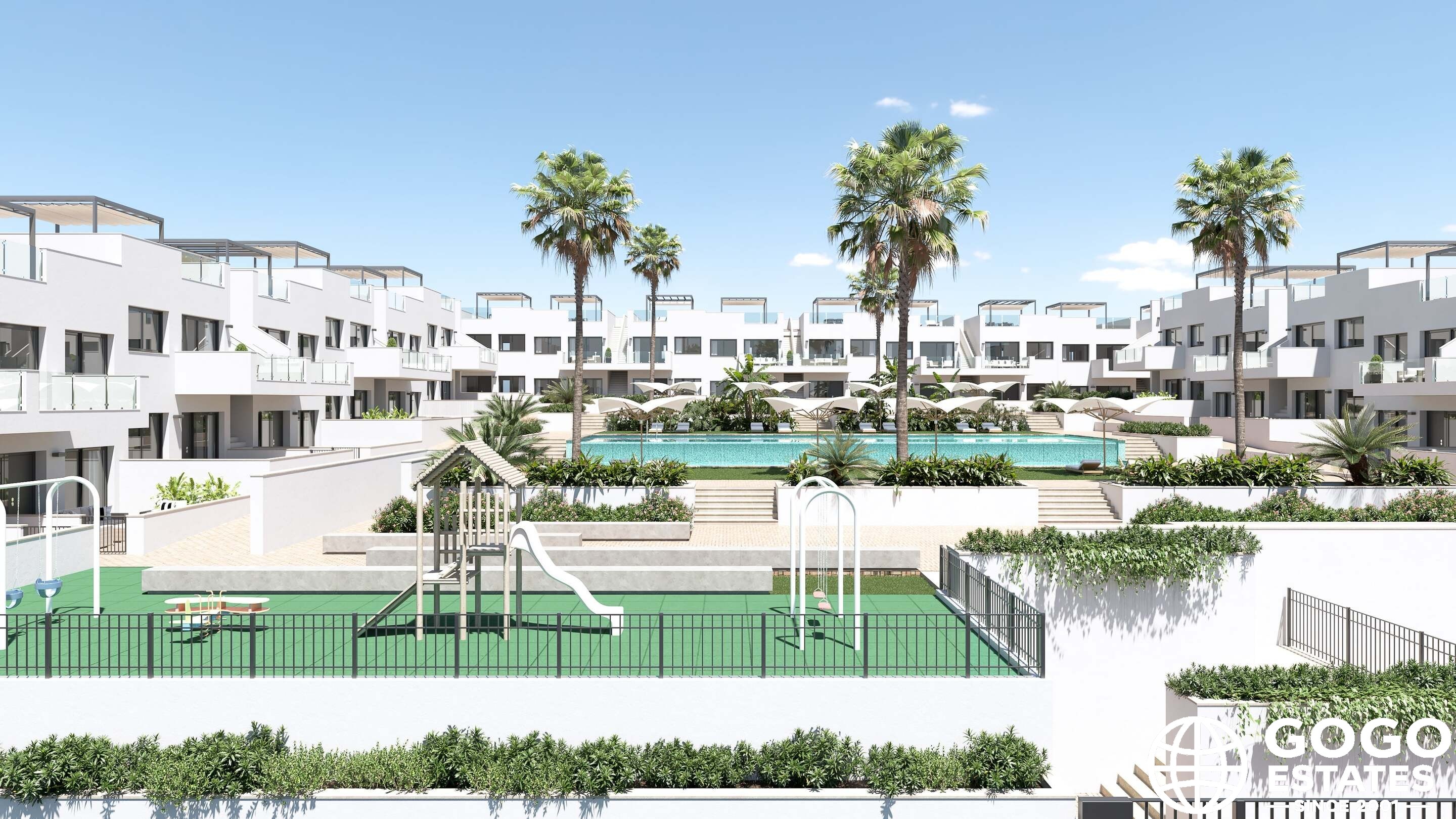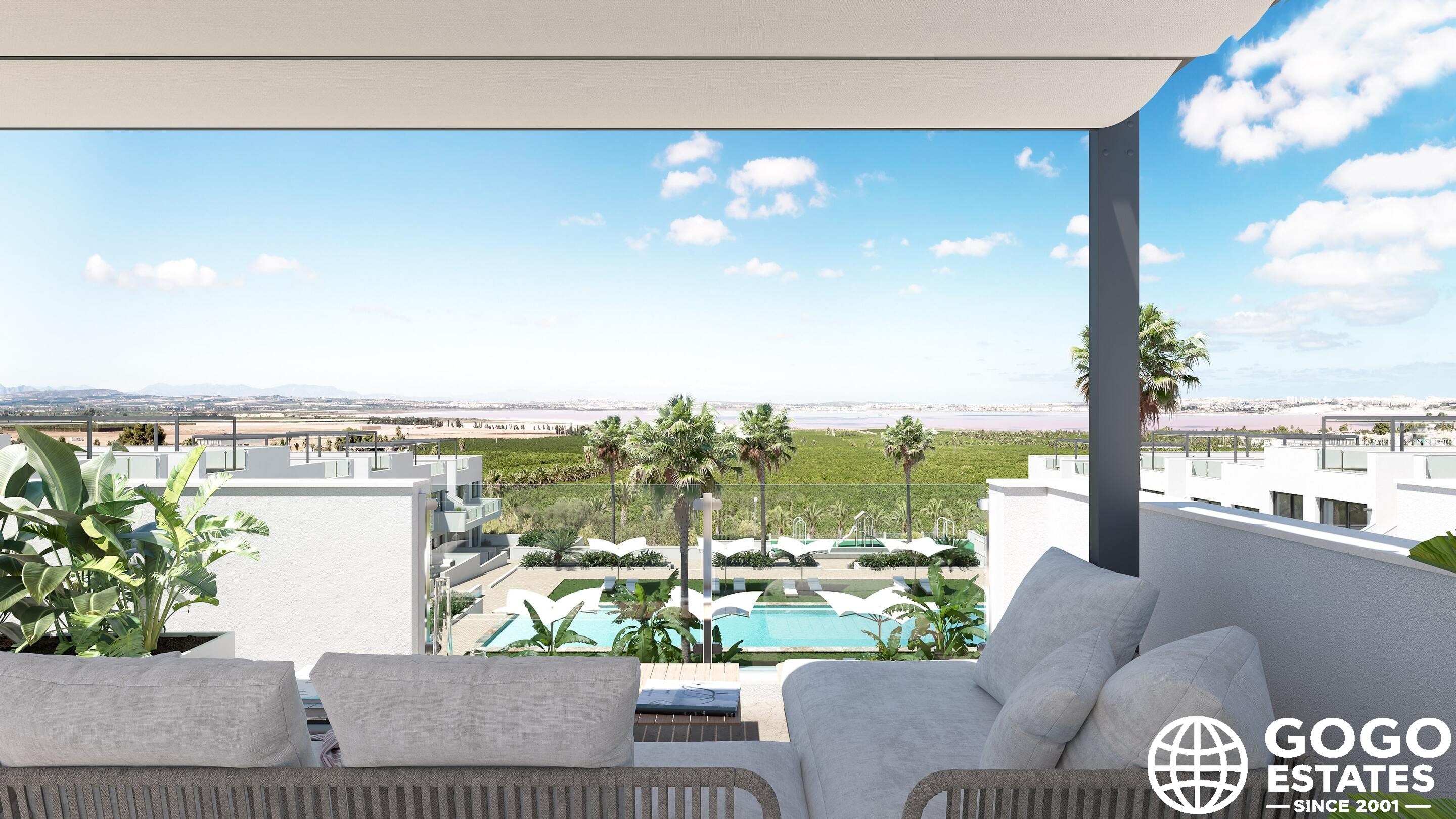 Les espaces extérieurs de ces maisons sont conçus pour maximiser le plaisir du climat méditerranéen. Chaque propriété dispose d'une terrasse privée, idéale pour se détendre en plein air ou dîner en plein air. De plus, les maisons de bungalow haut disposent d'un solarium, offrant un espace supplémentaire pour bronzer ou profiter de la vue.