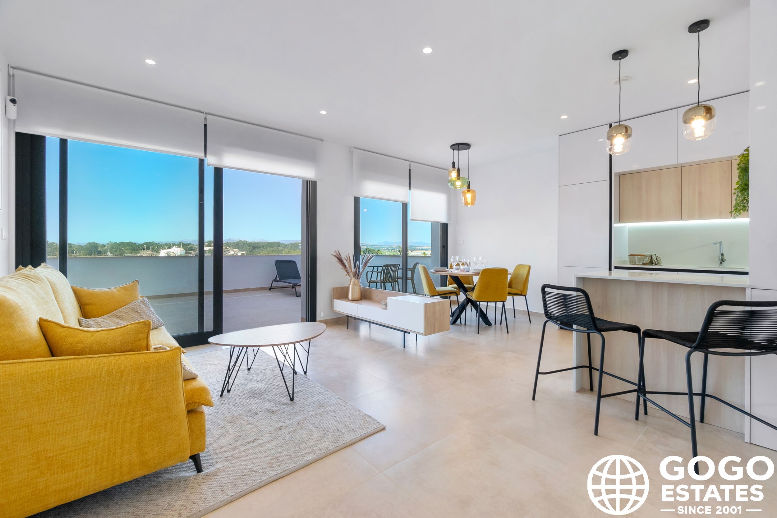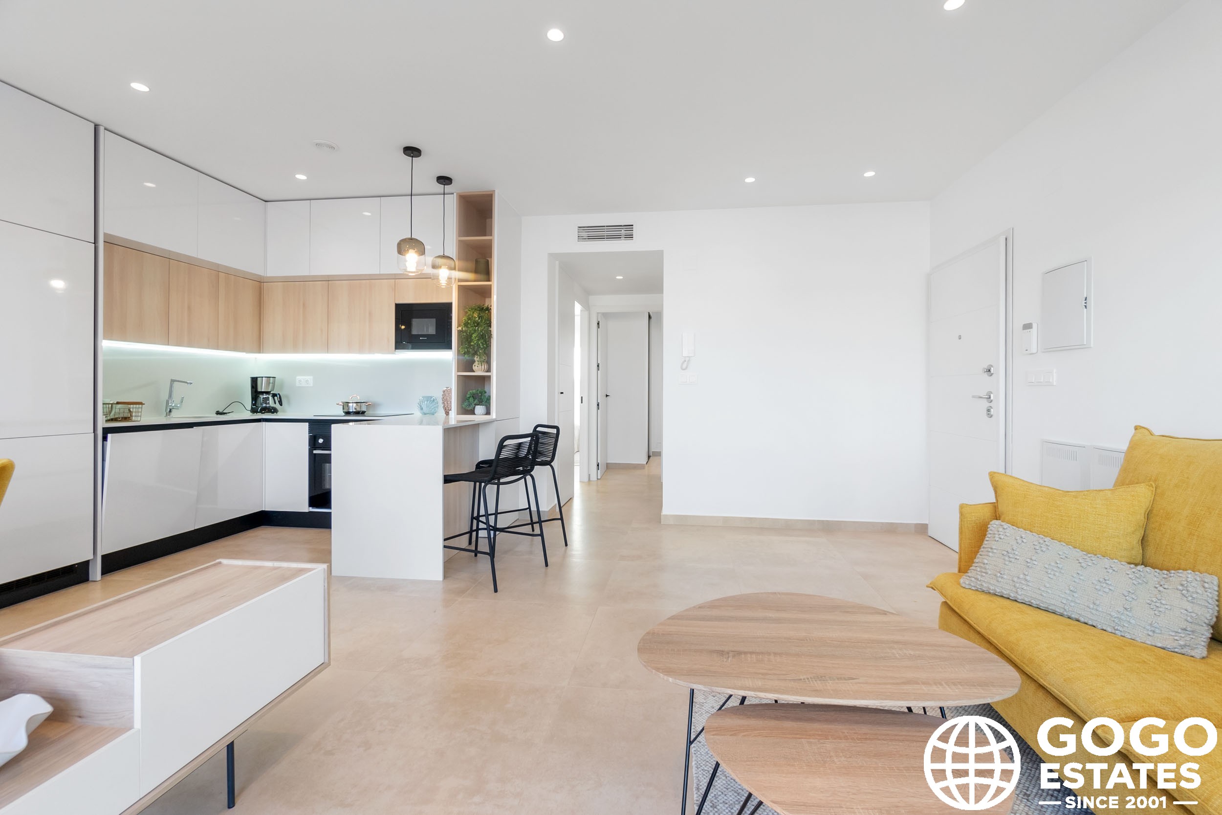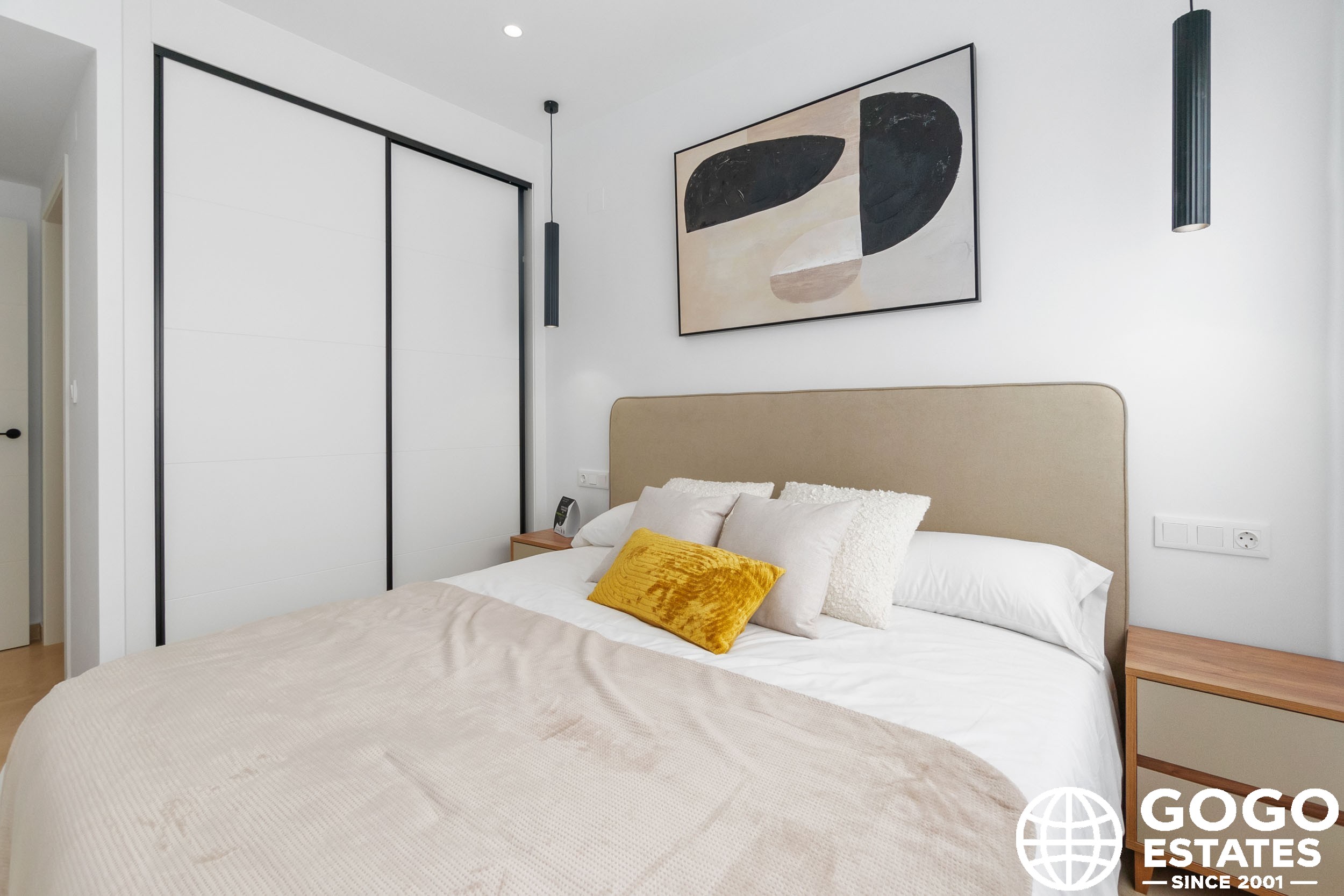 Les intérieurs de ces maisons sont conçus pour offrir confort et fonctionnalité. Les sols en céramique apportent une touche moderne et sont faciles à entretenir. Les volets électriques et les appareils électroménagers inclus facilitent la vie quotidienne, tandis que les placards intégrés offrent un rangement efficace. La pré-installation de la climatisation garantit que le climat intérieur est toujours agréable.