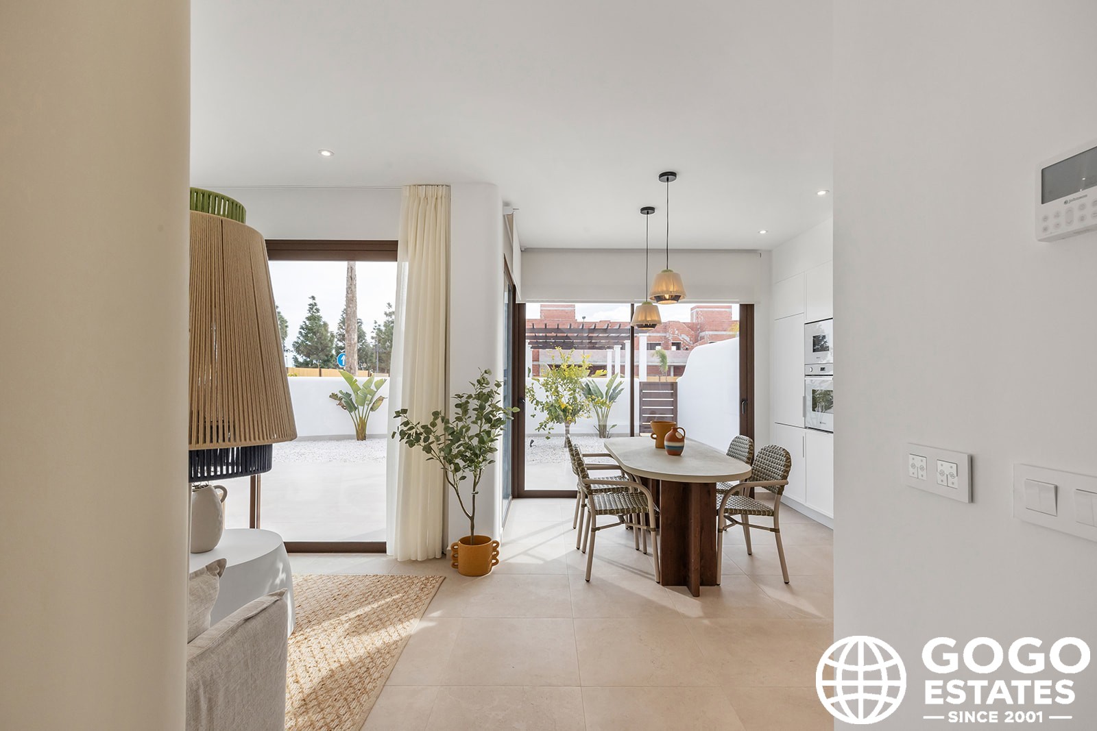 L'intérieur du chalet est équipé de sols en grès cérame, alliant durabilité et style. La disposition comprend trois chambres et deux salles de bains, offrant un espace spacieux et confortable pour la vie quotidienne. Les placards intégrés offrent un rangement efficace, tandis que la pré-installation de la climatisation garantit que la maison reste confortable tout au long de l'année.