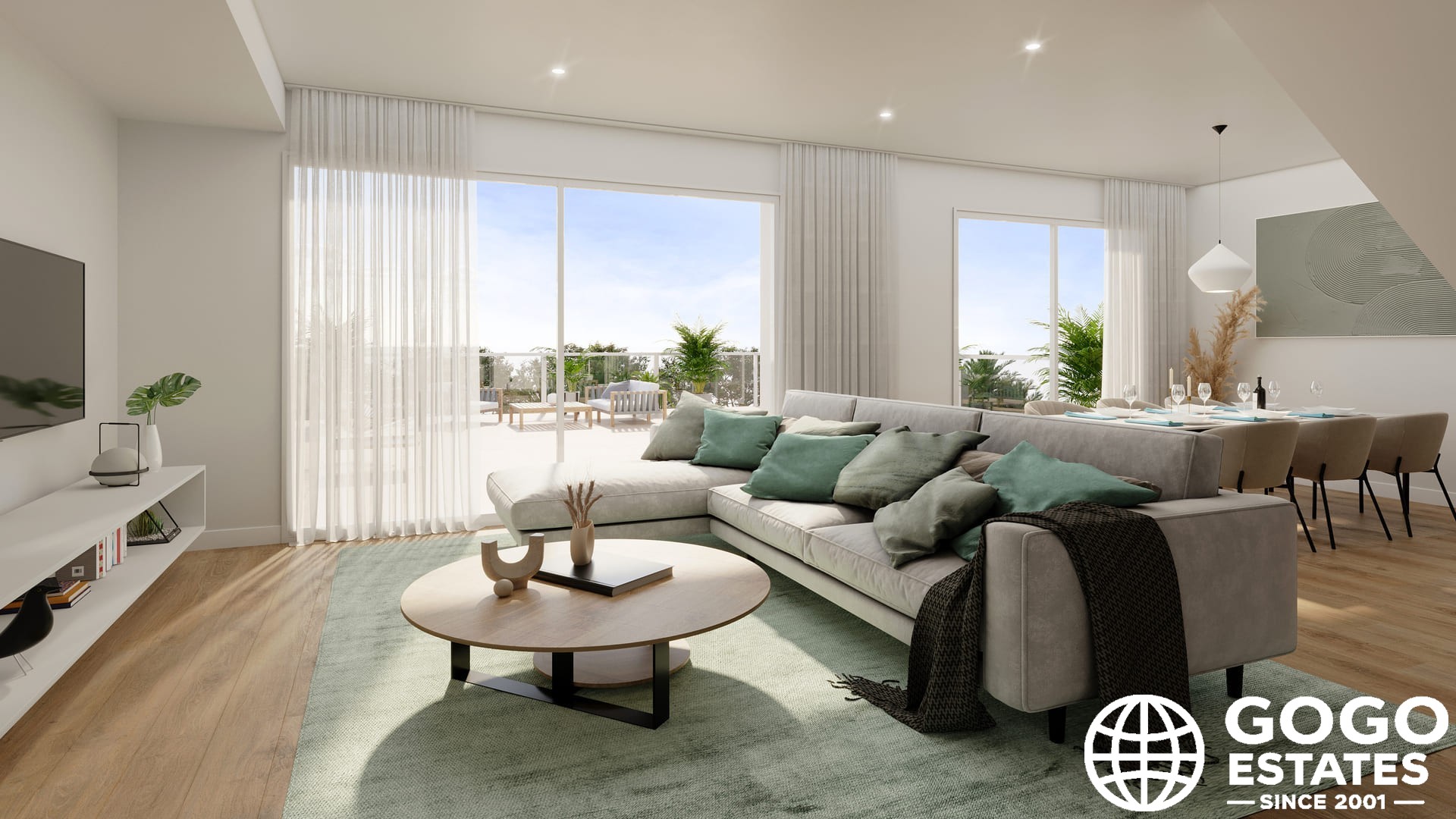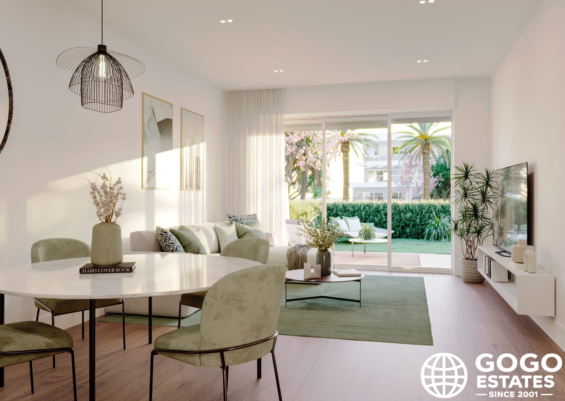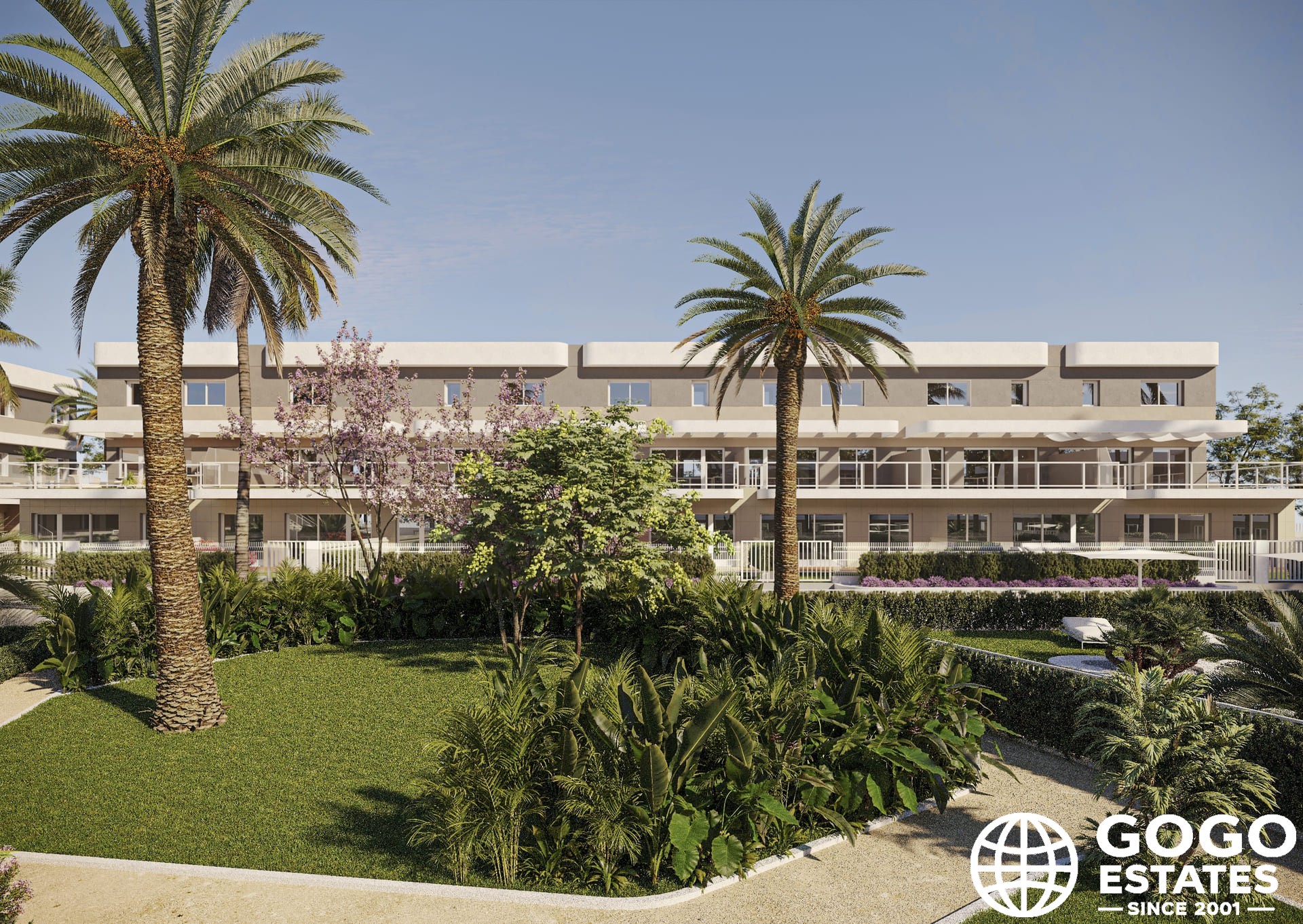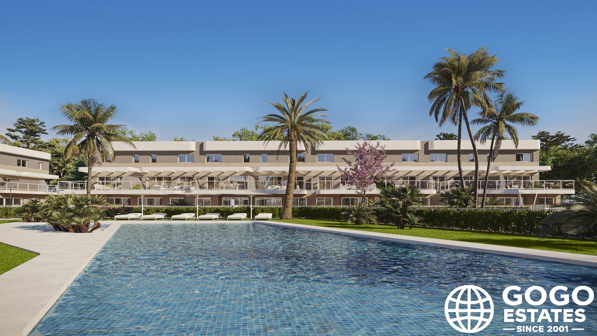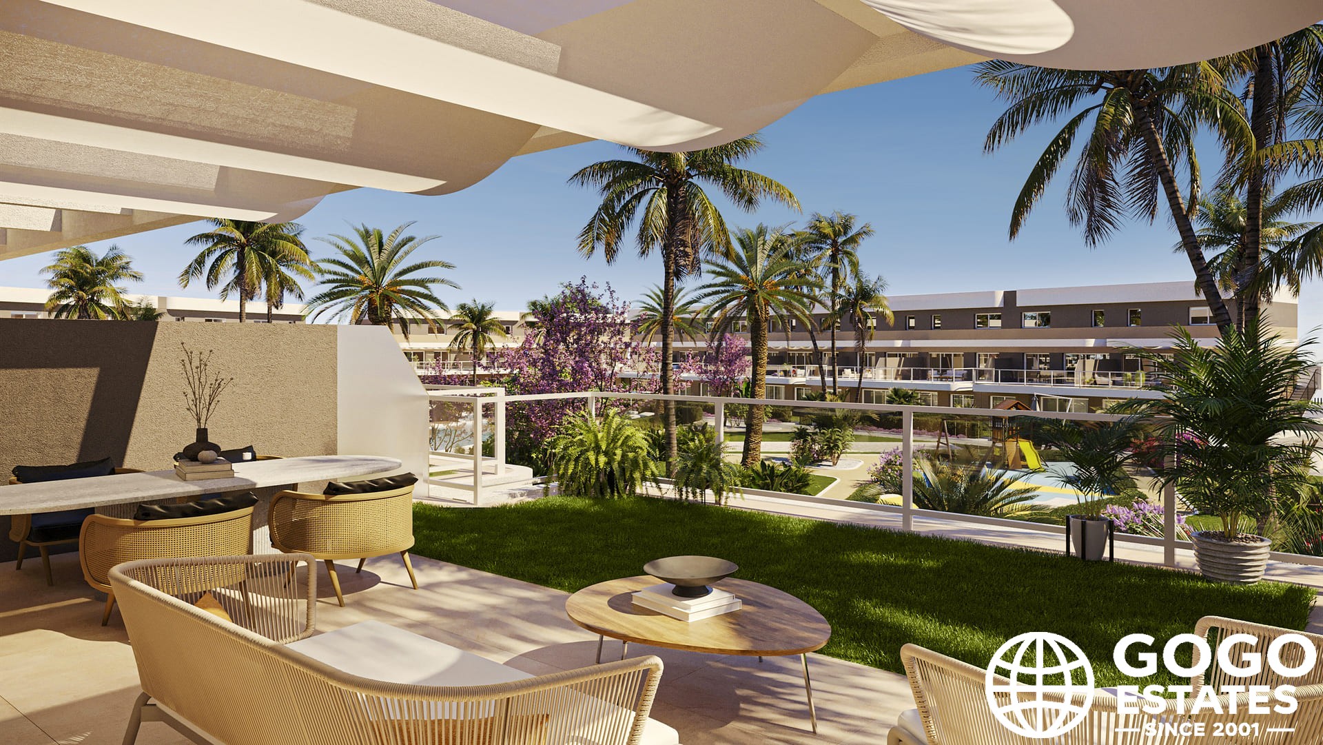 Les espaces extérieurs comprennent un jardin et une terrasse privés, offrant un cadre parfait pour la détente. Les résidents peuvent profiter d'un solarium commun et se trouvent à seulement 0,5 km du parcours de golf.